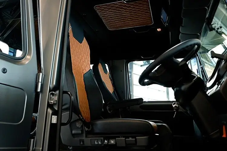 The powerful grey Mercedes-Benz Unimog makes an impressive appearance on the road. With its unique design and rugged exterior, this is not just an ordinary off-road vehicle but a symbol of durability and superior capability. The Unimog series from Mercedes-Benz Special Trucks is renowned for its ultimate off-road prowess, ready to conquer any challenge from the roughest paths to the most extreme terrains. Its blend of advanced technology and a powerful engine delivers an exhilarating driving experience, showcasing the distinct class of this exceptionally unique vehicle. This model appeals not only to off-road enthusiasts but also to those seeking unparalleled uniqueness and limitless operational performance.