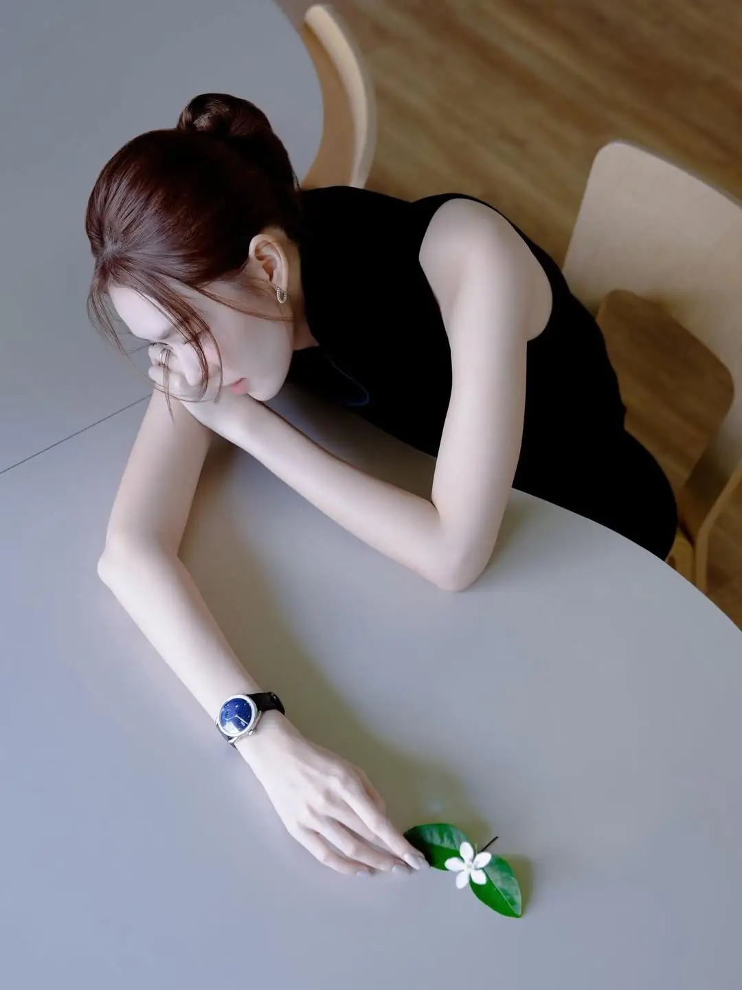 Runner-up Nguyen Tuong San continues to captivate fans with her natural beauty and alluring minimalist style. In this photo Tuong San exudes an elegant aura and rare grace. She leans against a simple wooden chair yet creates an artistic and compelling image. Her radiant complexion requiring no elaborate makeup combined with a sophisticated pristine dark outfit further highlights her refined elegance. The dreamy gaze and gentle expression of Runner-up Nguyen Tuong San evoke a sense of serenity and depth. This is not merely a fashion moment but a testament to authentic beauty untouched by fleeting trends. Tuong San consistently knows how to shine most genuinely touching the hearts of her audience.