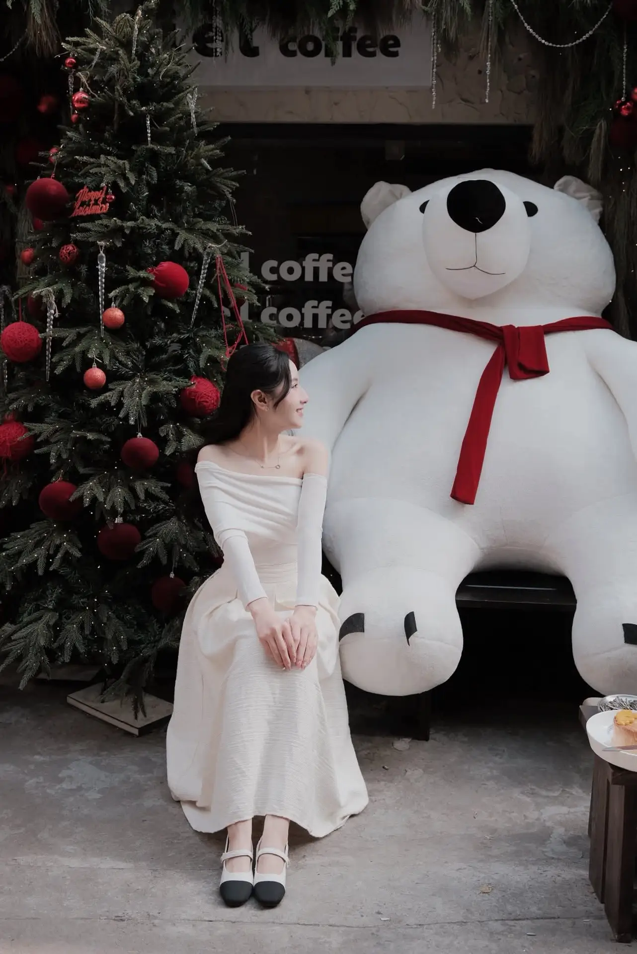 #GracefulWhiteDress #WarmChristmas #HolidayFashion #ElegantGirl #ChristmasStyle
