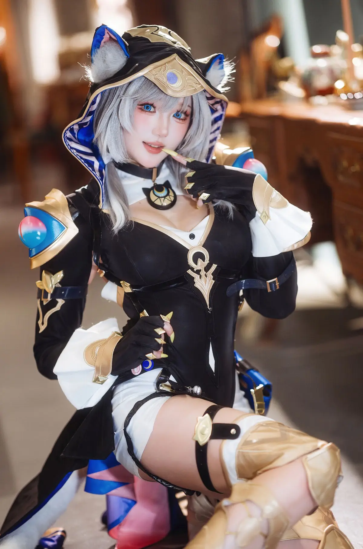 Coser Guaxi Jiang delivers a truly impressive transformation into the captivating universe of Honkai Star Rail. Adorned in a magnificent black and gold ensemble, elegantly complemented by striking blue accents, she masterfully brings to life a beloved character from this acclaimed game. Her platinum blonde hair and adorable cat ears create an aesthetic that is both mysterious and alluring. Every gesture and gaze from Guaxi Jiang exudes confidence and captivating charisma, showcasing meticulous attention to detail in her cosplay. This photo set is sure to mesmerize fans, inviting them to explore the unique beauty and charm of the Honkai Star Rail universe through an artistic lens.#Honkai #StarRail #Cosplay #GuaxiJiangCosplay #AstaCosplay #GameCosplay #CosplayGirl