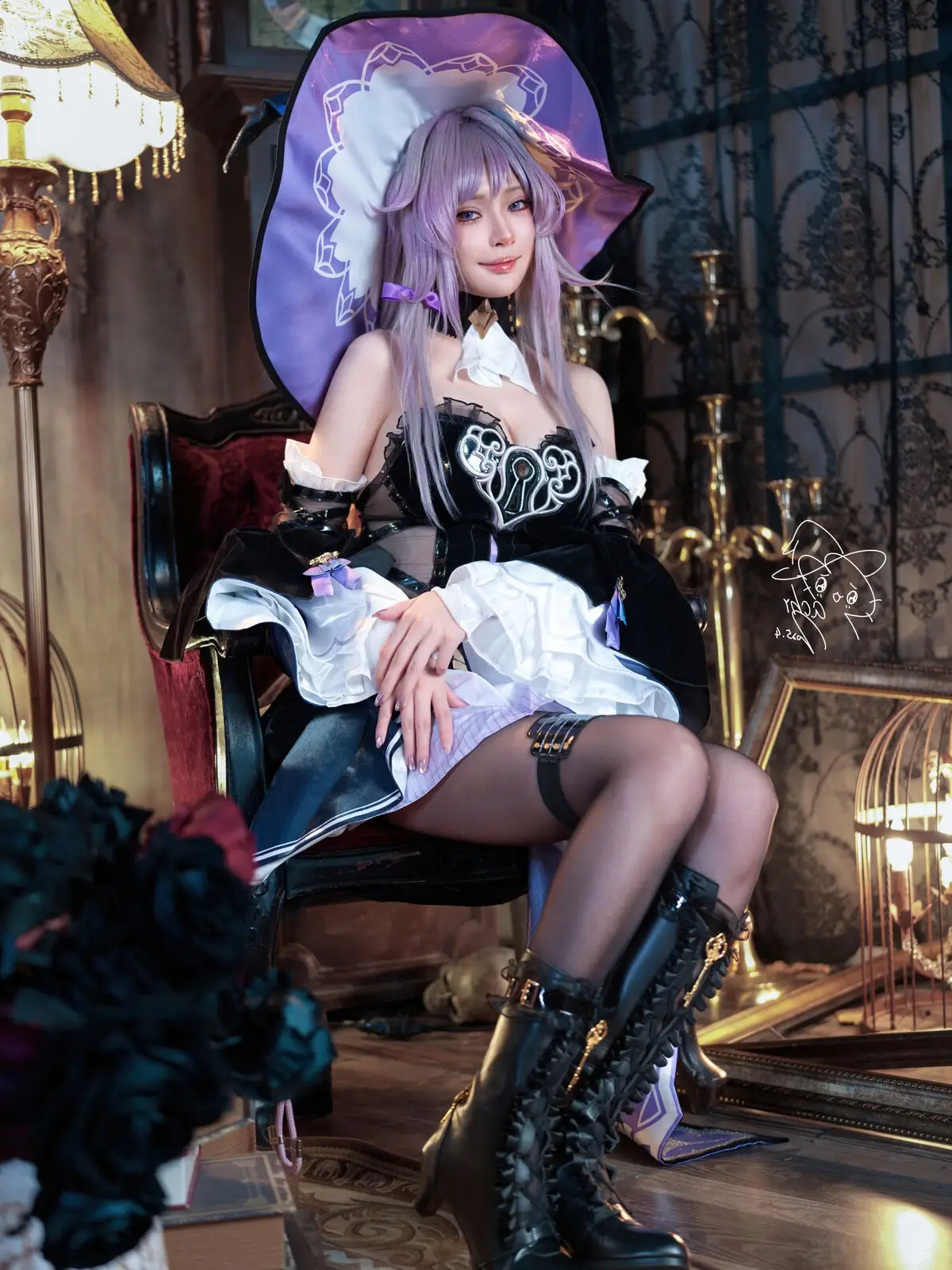 Immerse yourself in the world of Honkai Star Rail with this captivating cosplay series featuring Coser Machi馬吉 as the beloved character Herta. Machi馬吉 masterfully recreates Herta's unique beauty and enigmatic aura through every intricate detail of the costume. The iconic wide purple hat, adorned with elaborate patterns, is an undeniable focal point, complemented by the elegant black and purple dress, showcasing meticulous craftsmanship. Her engaging gaze and gentle smile create a vibrant portrait that draws every eye. This is more than just a regular cosplay photoshoot; it’s a perfect blend of costume artistry and photography, offering a superb visual experience for Honkai Star Rail fans and the global cosplay community.#Coser #Machi #HertaCosplay #HonkaiStarRail #CosplayPhotography #GameCosplay