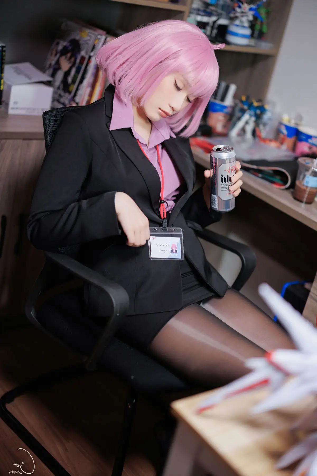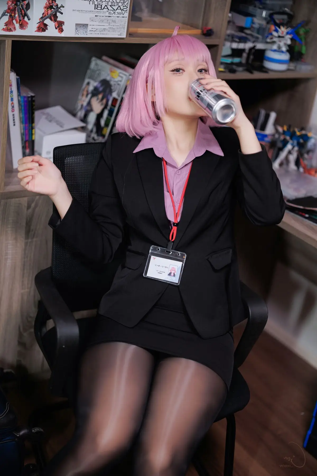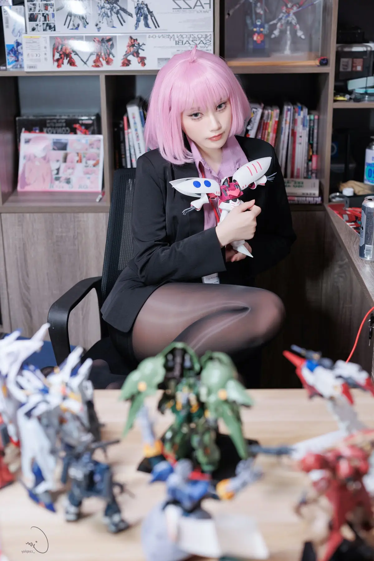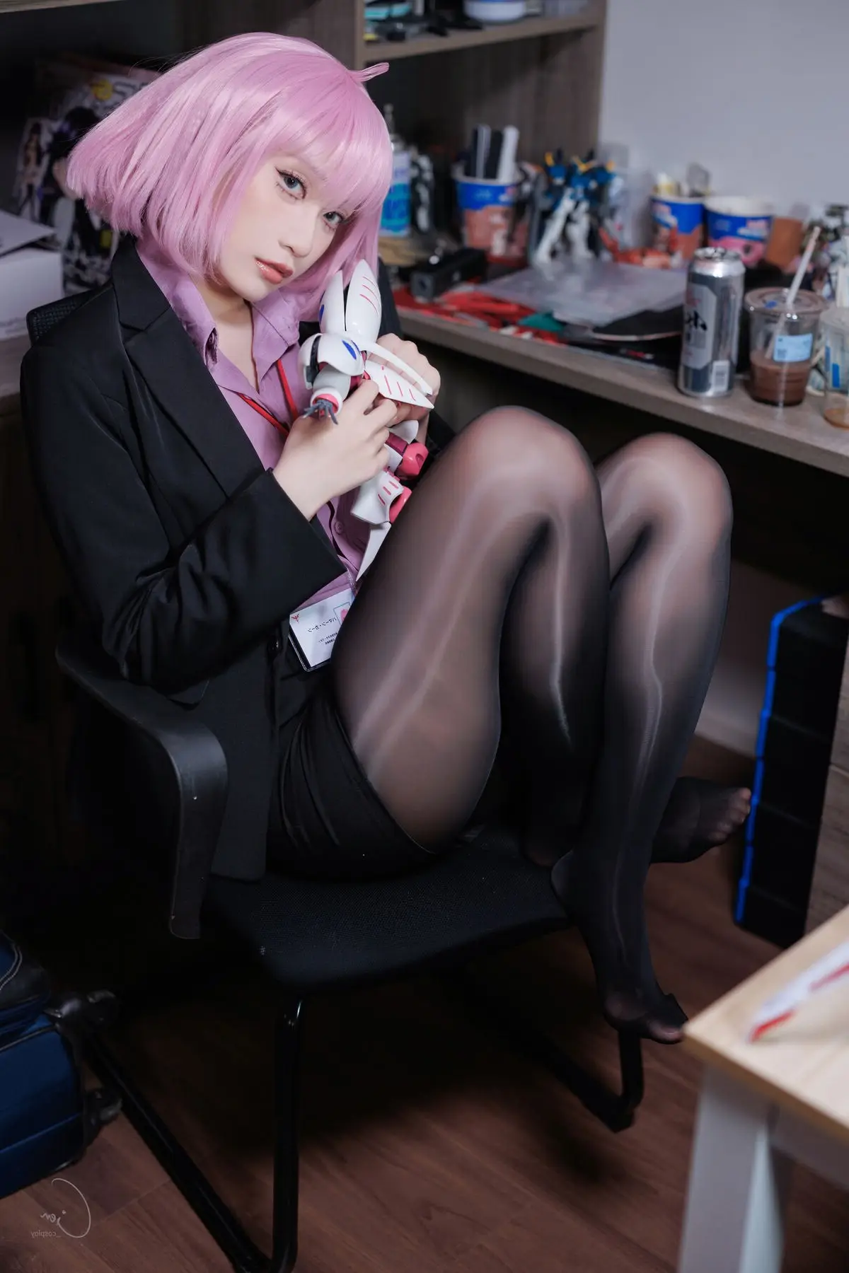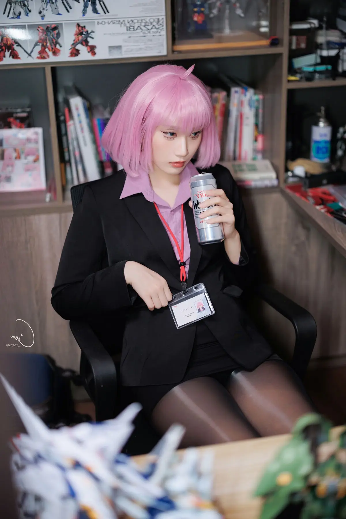 Coser Cien恩恩 delivers a truly captivating portrayal of her HamanOL character, blending professional elegance with a distinctive charm. Her striking pink hair provides a unique focal point, beautifully complementing the sleek black suit jacket and skirt. The sheer black pantyhose and sharp high heels further accentuate her sophisticated silhouette and long, graceful legs. Posing gracefully by the water's edge, Cien恩恩 masterfully showcases her soft curves and engaging gaze directed towards the viewer. The blurred background, adorned with shimmering city lights reflecting on the water, creates a romantic and ethereal ambiance that perfectly enhances her allure. This HamanOL collection is sure to enchant fans of modern office fashion combined with a touch of unique cosplay artistry.#Coser #CienEnEn #HamanOLCosplay #PinkHairCosplay #OfficeLadyFashion #CosplayPhotography