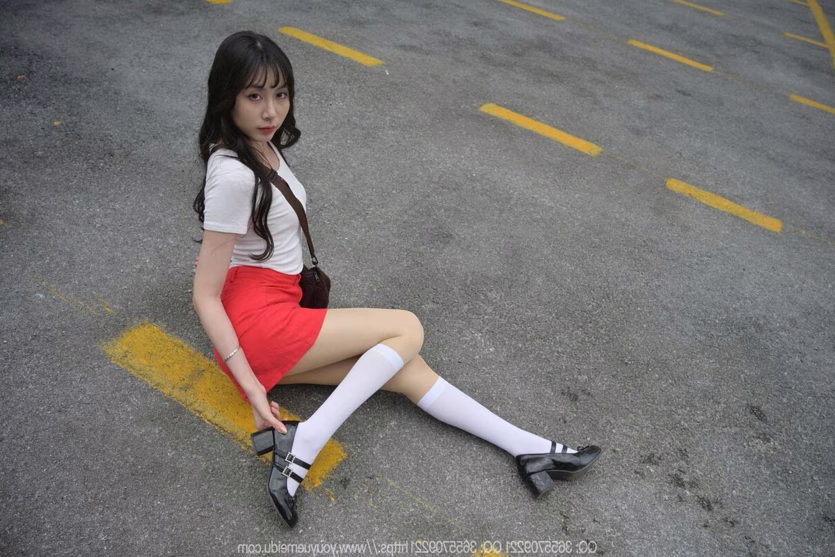 Discover the IESS SXJ No.2055 collection featuring model Tuan Tuan, who shines with natural beauty and captivating presence. The young woman sports a simple white t-shirt paired with a vibrant red mini skirt, creating an energetic and lively image. Tuan Tuan's gentle pose and contemplative gaze convey grace and a hint of mystery. The minimalist urban backdrop further accentuates her elegant features and refined fashion sense. This moment beautifully captures the harmonious blend of East Asian allure and contemporary style, showcasing her unique youthful charm.