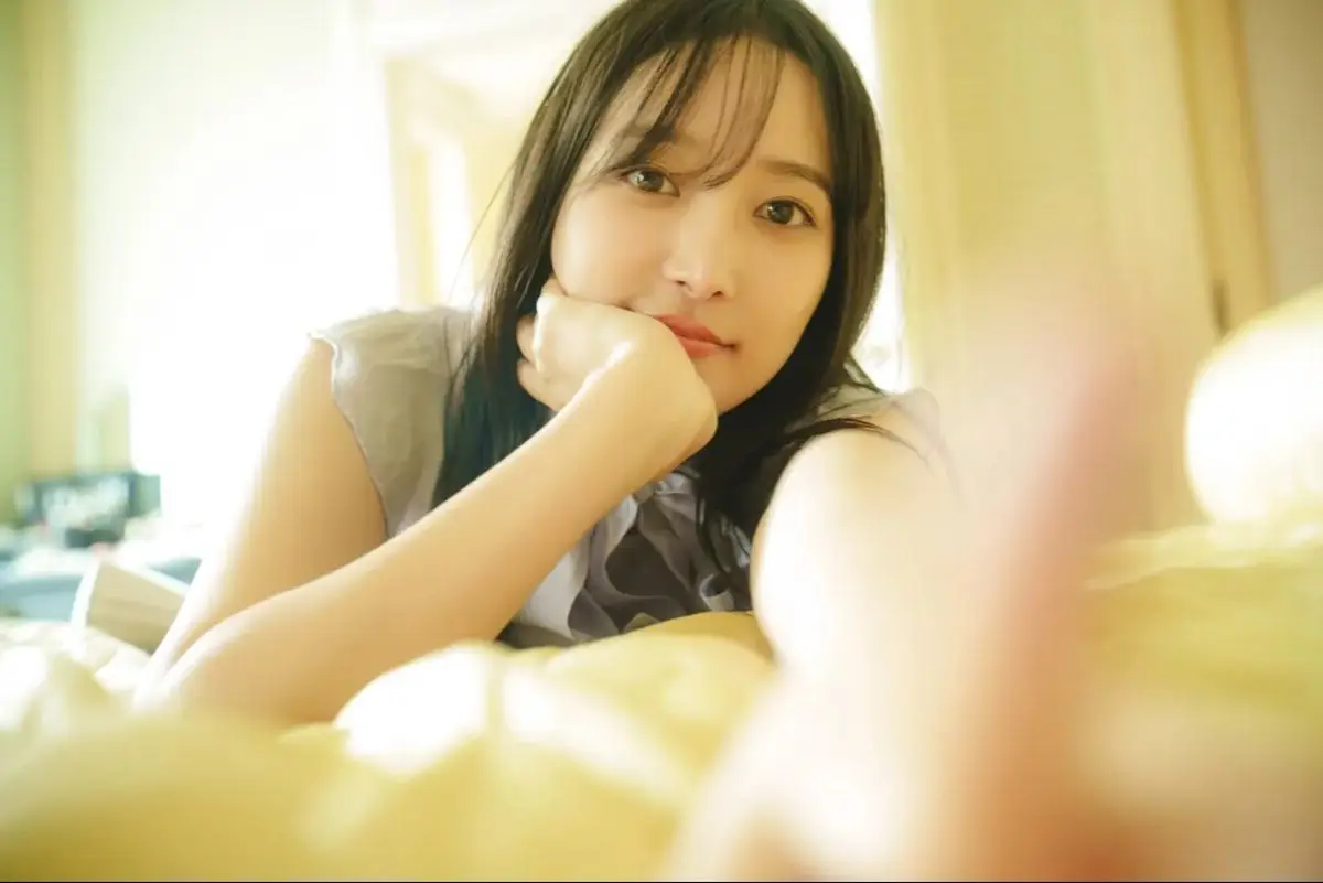 Immerse yourself in the dreamy world of JP Miru featured in the special FRIDAY Digital Photo Book, みるいろ. This captivating image captures Miru gently kneeling on a bed, adorned in delicate light pink floral lingerie, radiating an ethereal and sweet charm. Soft, natural light bathes the scene, highlighting her smooth skin and clear, innocent gaze. The blend of subtle innocence and understated allure creates an irresistible fascination, inviting viewers to delve deeper into "Miru's colors" through each page of this exquisite collection. A truly emotional visual journey awaits.#JPMiru #FRIDAYDigital #JapaneseGirl #MiruIro #LingerieModel