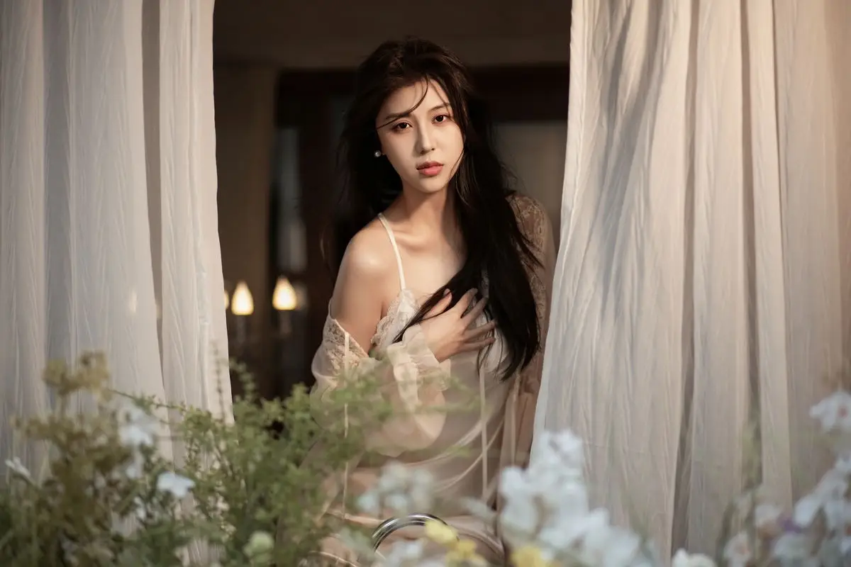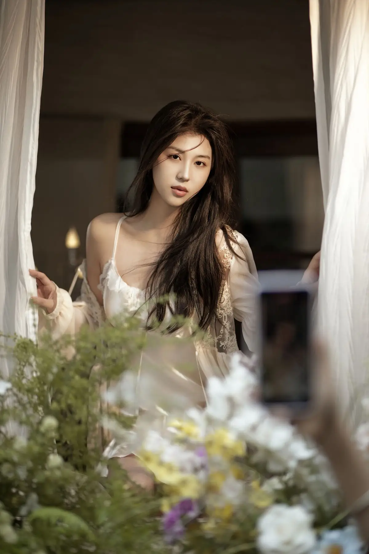 This image captures a truly striking moment of model Bai Xiao Die from XiuRen No.10709. She embodies sophisticated and sensual beauty, adorned in alluring black lace lingerie that gracefully highlights her soft curves and slender physique. Bai Xiao Die's captivating gaze and confident demeanor create an irresistible appeal, inviting viewers to explore a deeper emotional connection. The softly lit room, complemented by the pristine white flowers in the foreground, enhances the elegant and refined atmosphere, crafting a private and romantic setting. This is an artful and evocative photoshoot where Bai Xiao Die's beauty is displayed with utmost subtlety and charm, sure to enchant every gaze.#BaiXiaoDie #XiuRen #AsianModel #SensualLingerie #Photoshoot