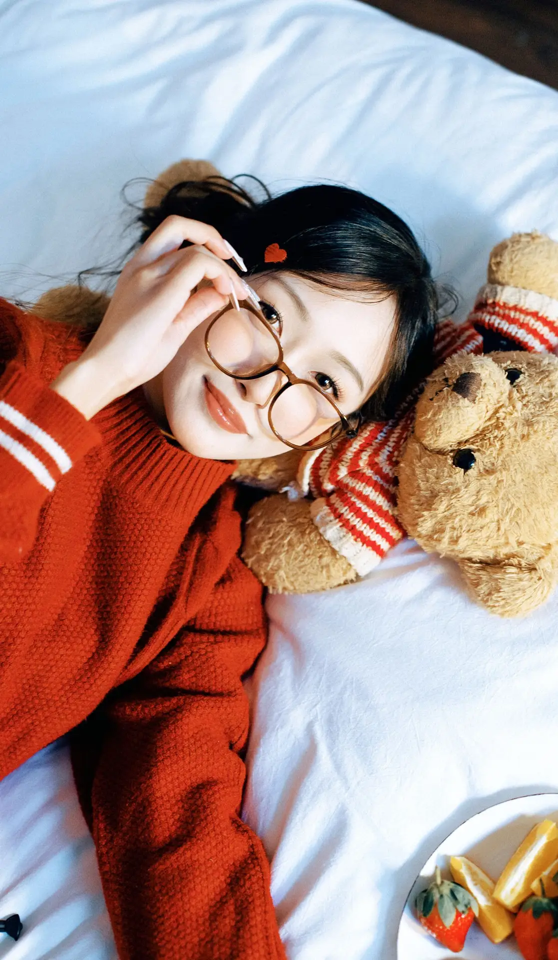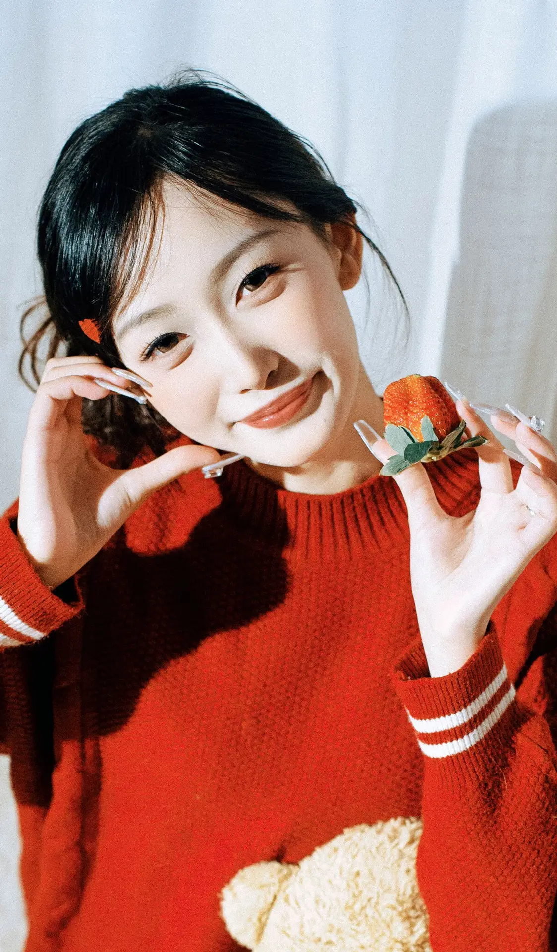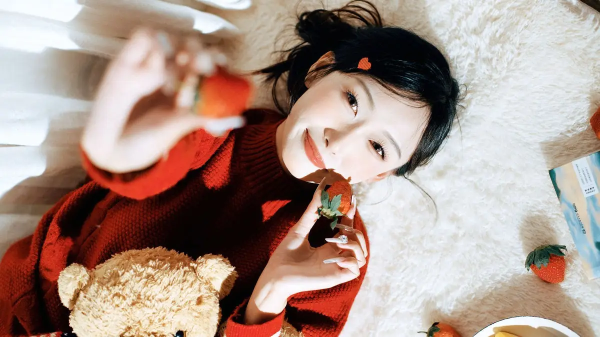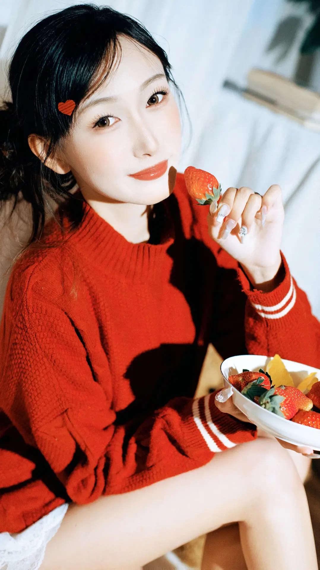 In the cozy and softly lit ambiance of YiTuYu Vol.8573 zzzzzzz a young woman emerges with an elegant and natural beauty. Sitting comfortably on the rustic wooden floor she gently holds a colorful bowl of fruits seemingly savoring her own peaceful moment. Her striking red sweater and white socks convey a sense of warmth and approachability. Beside her a charming little teddy bear adds a touch of cuteness and innocence to the scene. This image is ideal for those who appreciate a gentle lifestyle and heartfelt everyday moments. The photograph not only captures relaxation but also evokes a pure sweetness that draws every gaze. Discover this pristine beauty.#YiTuYu #RelaxedGirl #SweetMoment #CozyVibes #NaturalBeauty