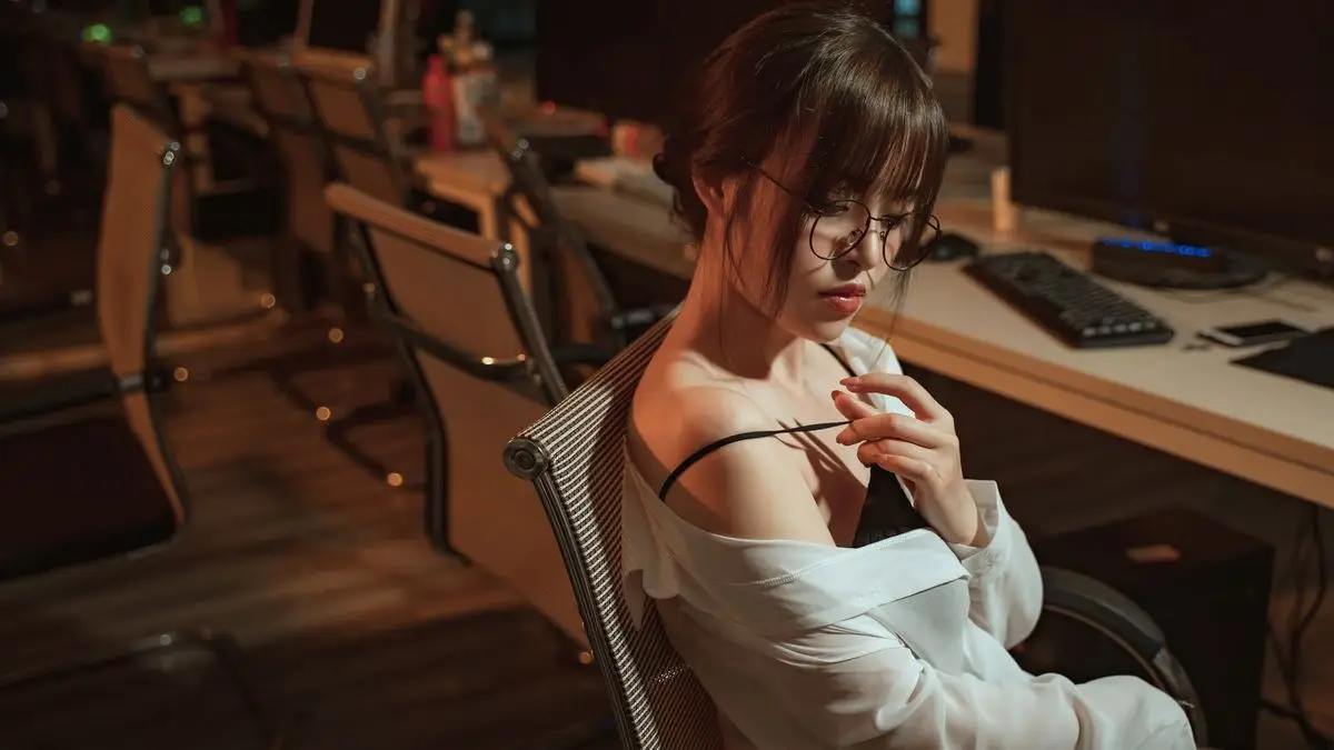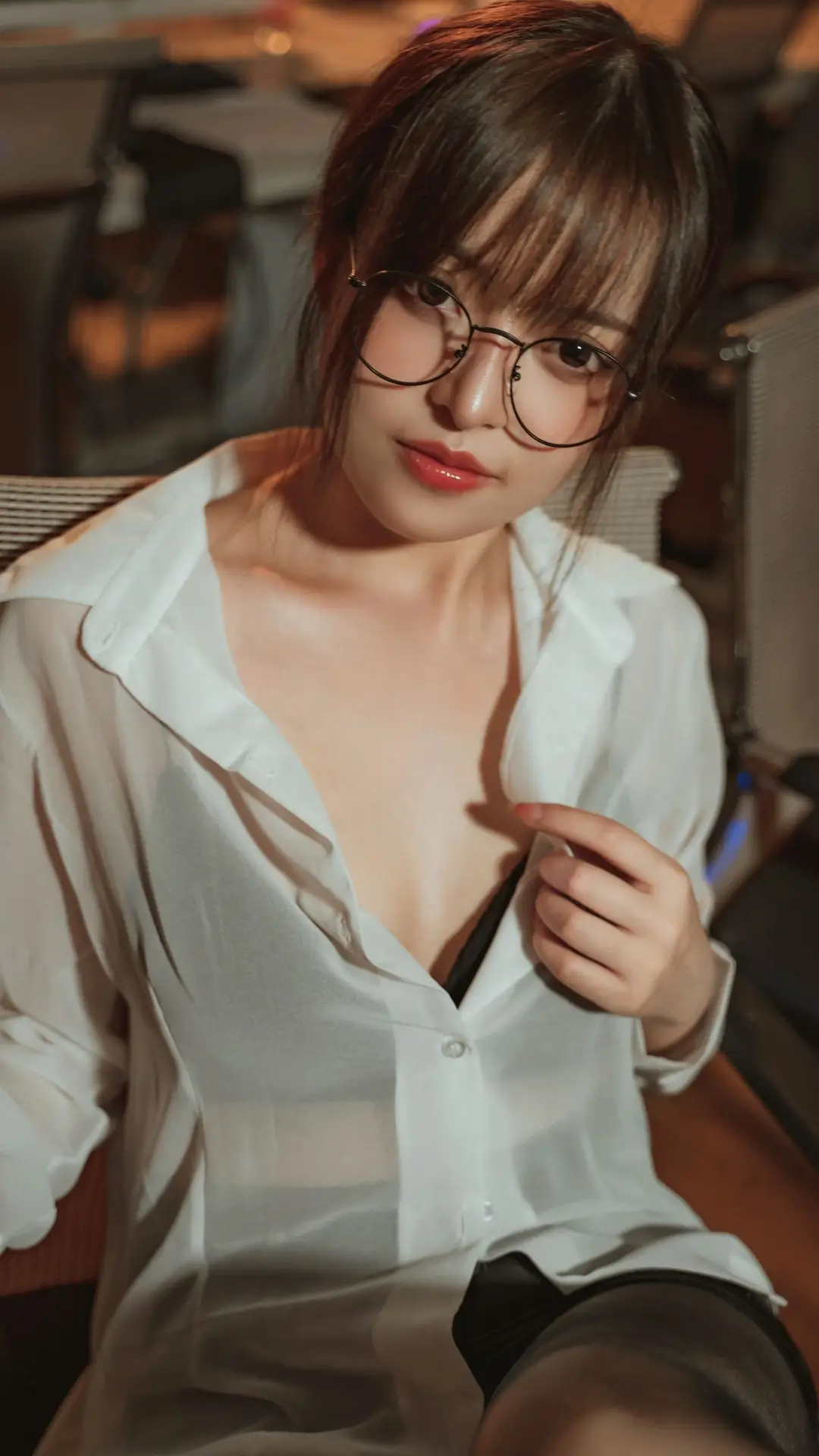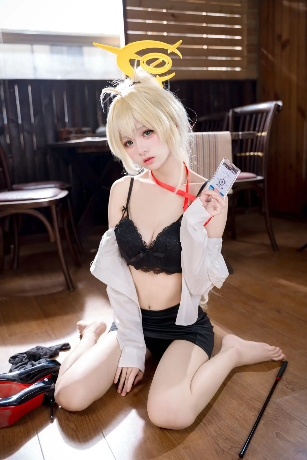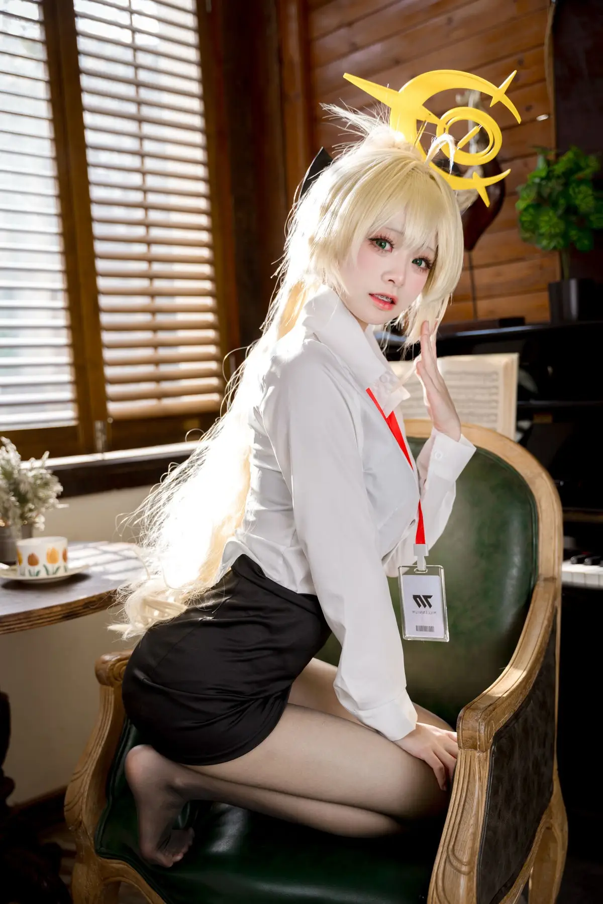 Immerse yourself in the world of Coser@StrawberryFlavorNanaRabbit in this impressive 'Office Teacher' photo collection. She transforms into a captivating office teacher, showcasing a beauty that is both elegant and alluring. Within the familiar office setting, Coser@StrawberryFlavorNanaRabbit skillfully displays a confident and charming demeanor. Her delicate sheer white shirt paired with a short skirt and black stockings further highlights her figure. The alluring gaze and relaxed yet provocative pose create a perfect picture. This photo set not only celebrates the beauty of Coser@StrawberryFlavorNanaRabbit but also portrays an office teacher image full of allure and unconventional style.