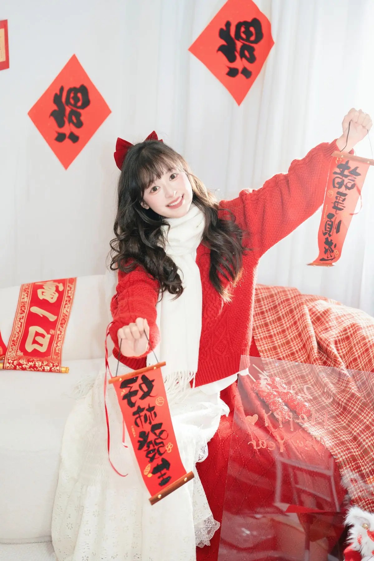 YiTuYu Vol.8524: Xia Yu Xiao Nian Embraces Lunar New Year in Radiant Red Sweater Style