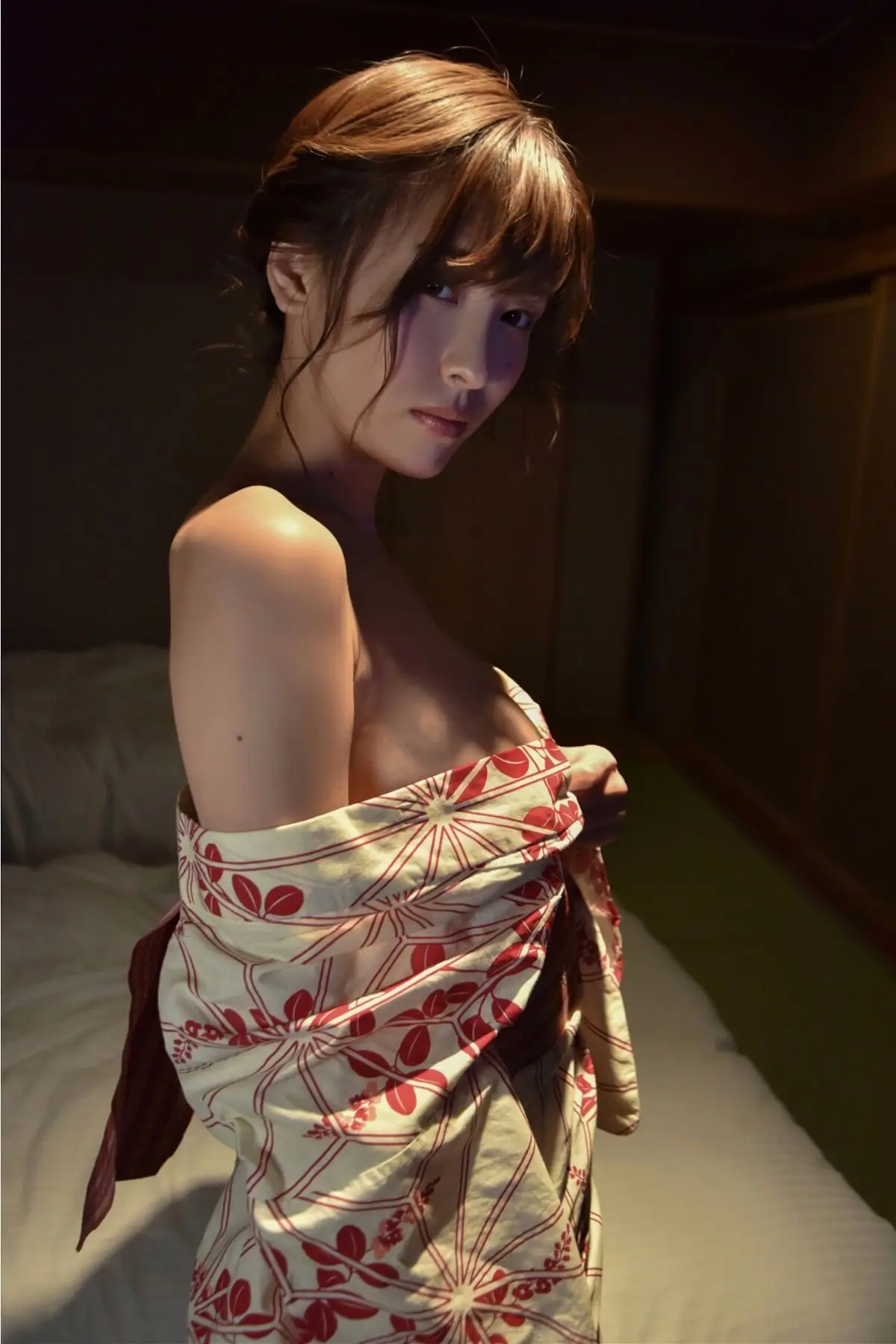 This captivating image features Sena Natsuki 奈月セナ, exuding radiant beauty and charm. Seated intimately on a bed, she reveals her bare shoulders and offers a gentle, alluring gaze, creating a moment rich with emotion. This photo is an exclusive part of the FLASH Digital Photo Book titled "初めての一泊二日温泉旅行" (First Overnight Hot Spring Trip). The scene evokes a sense of relaxation and allure, inviting viewers to delve deeper into Sena Natsuki's memorable journey. Her natural grace and ethereal beauty truly shine through, promising an enchanting collection. Immerse yourself in the cozy ambiance and appreciate Sena Natsuki's elegance during this special trip.#SenaNatsuki #NatsukiSena #FLASHPhotobook #DigitalPhotobook #HotSpringTrip