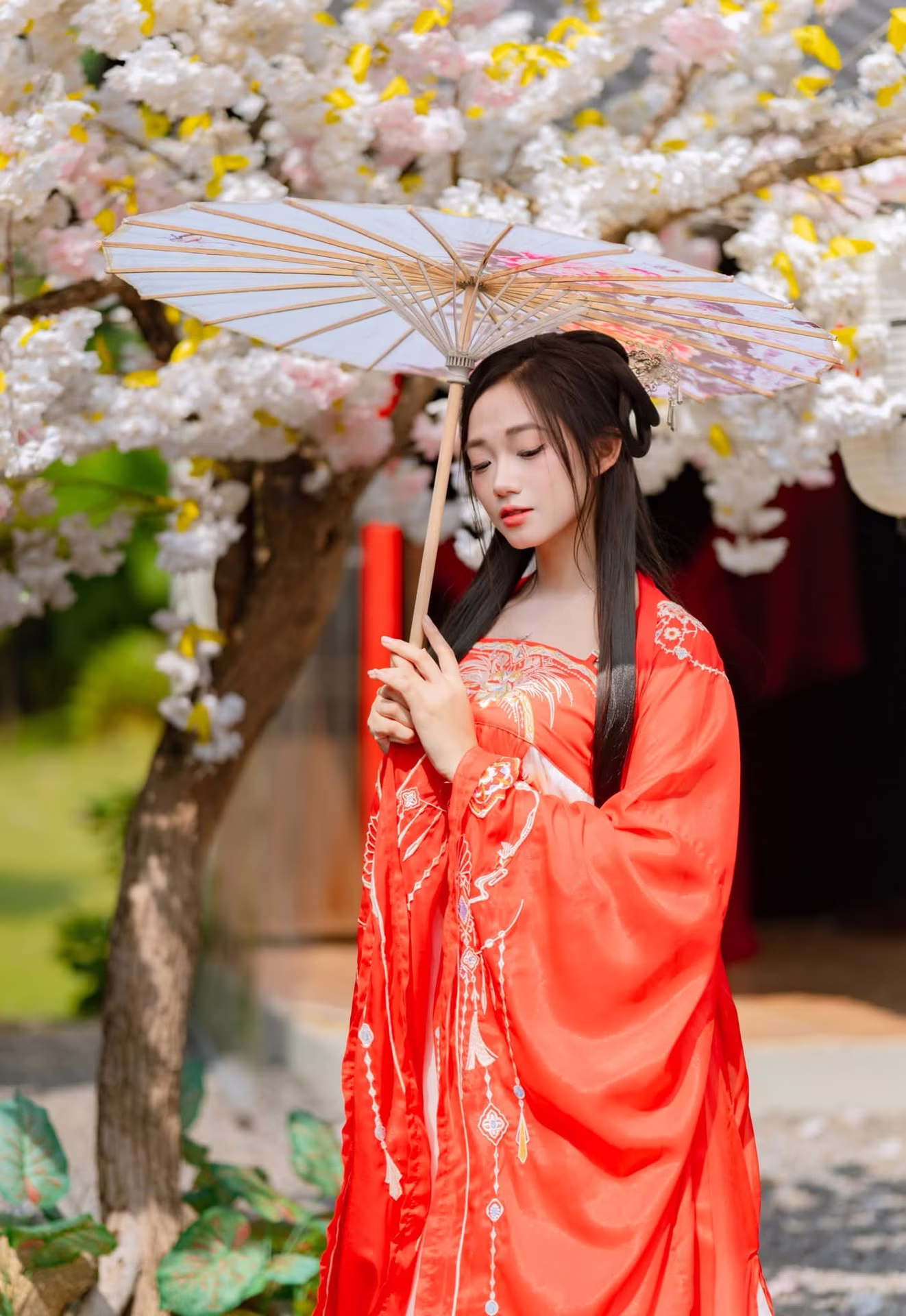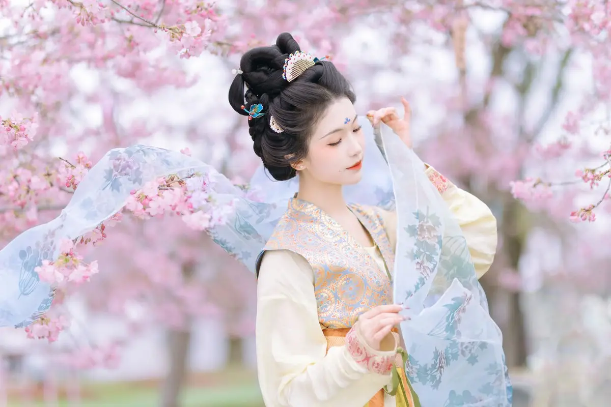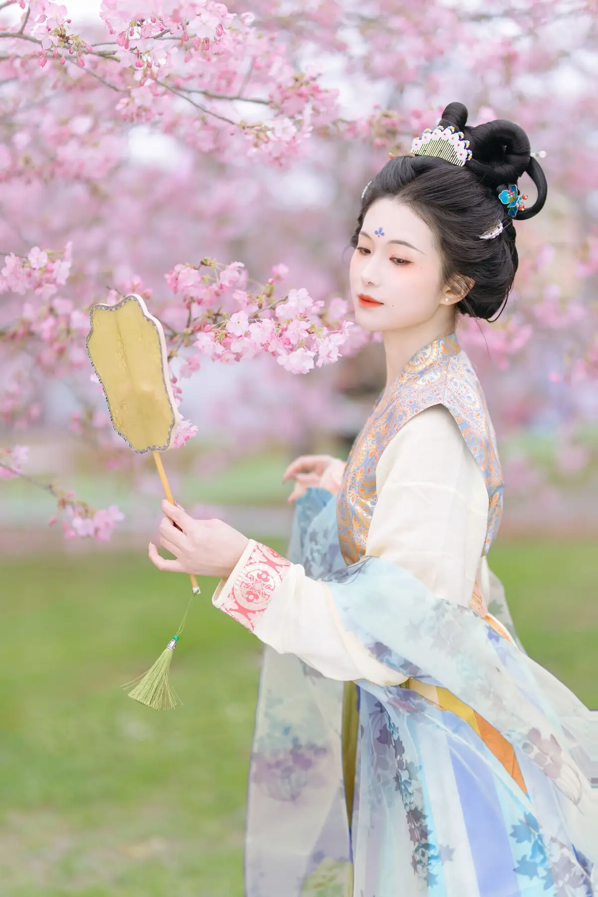 Immerse yourself in the ethereal charm of Ke Ke K, embodying a classical muse in exquisite Hanfu attire. Against a breathtaking backdrop of vibrant spring cherry blossoms, Ke Ke K gracefully holds an umbrella, radiating captivating elegance and serene beauty. Every detail of her traditional costume, from the intricate updo to the delicate embroidered patterns, perfectly captures the essence of timeless grace. This image is not merely a photograph; it is an invitation to explore the harmonious blend of human artistry and the splendor of nature.#Hanfu #TraditionalBeauty #CherryBlossom #KeKeK #AsianBeauty