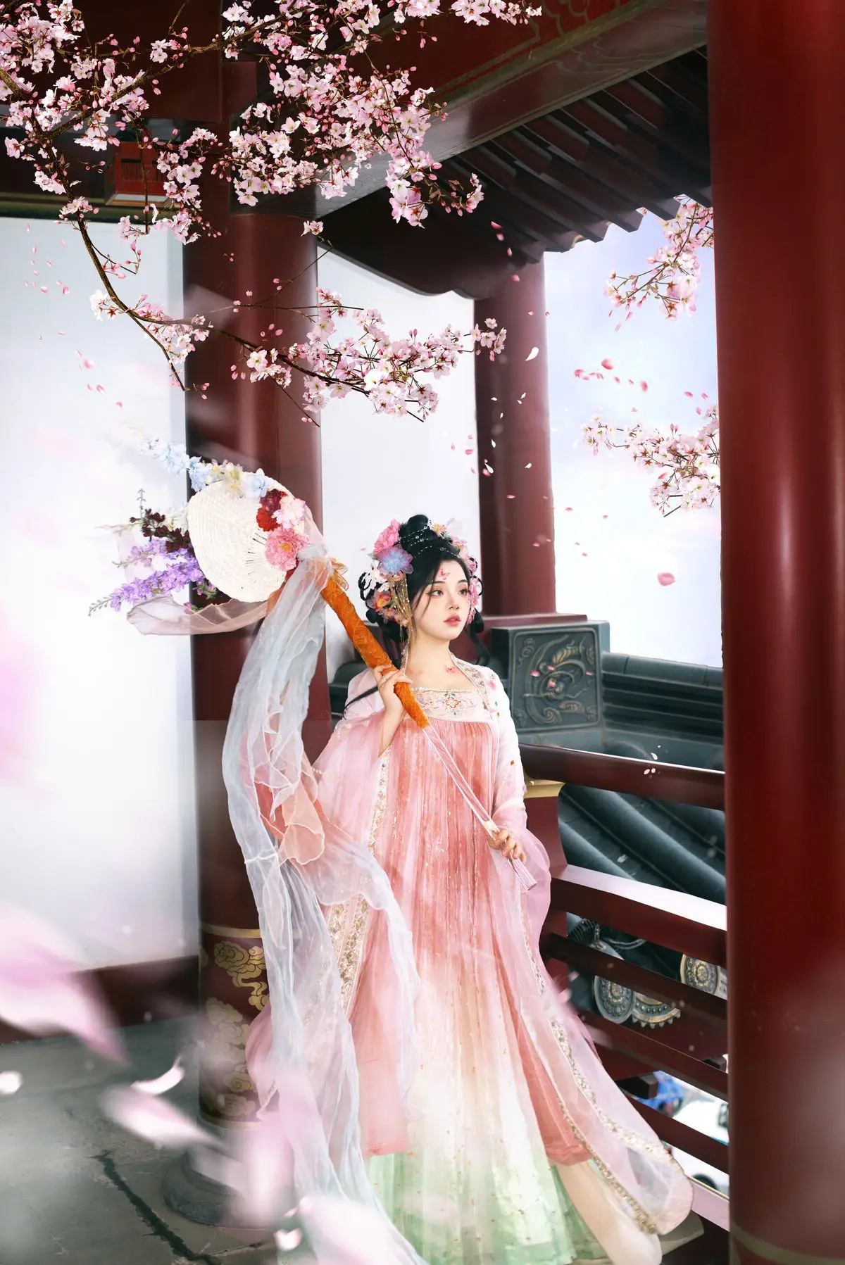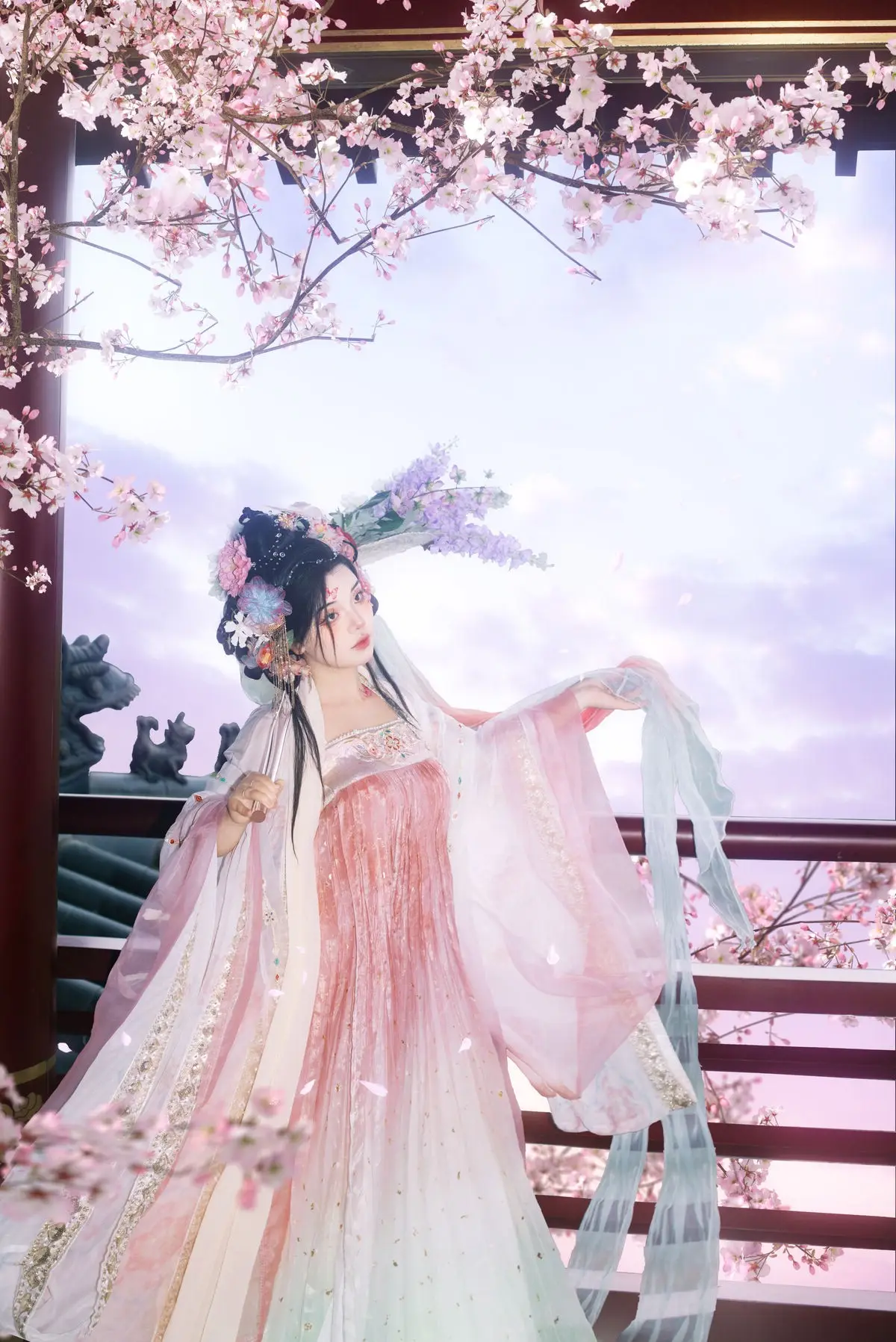 In this captivating YiTuYu Art Language Vol.8650 collection model Qi Qi embodies a muse straight from an ancient painting. Adorned in a magnificent traditional gown with delicate gradient hues of soft pink white and jade she poses gracefully beneath a canopy of blooming cherry blossoms. Each fragile petal seems to whisper tales of spring enhancing Qi Qi's otherworldly charm. Her gentle demeanor dreamy eyes and hair intricately adorned with fresh flowers create a harmonious tableau of humanity and nature. This photo series is not merely a blend of photography and traditional fashion but a heartfelt ode to the pristine beauty of spring.#QiQi #HanfuFashion #CherryBlossoms #EtherealBeauty #AsianArt #YiTuYu