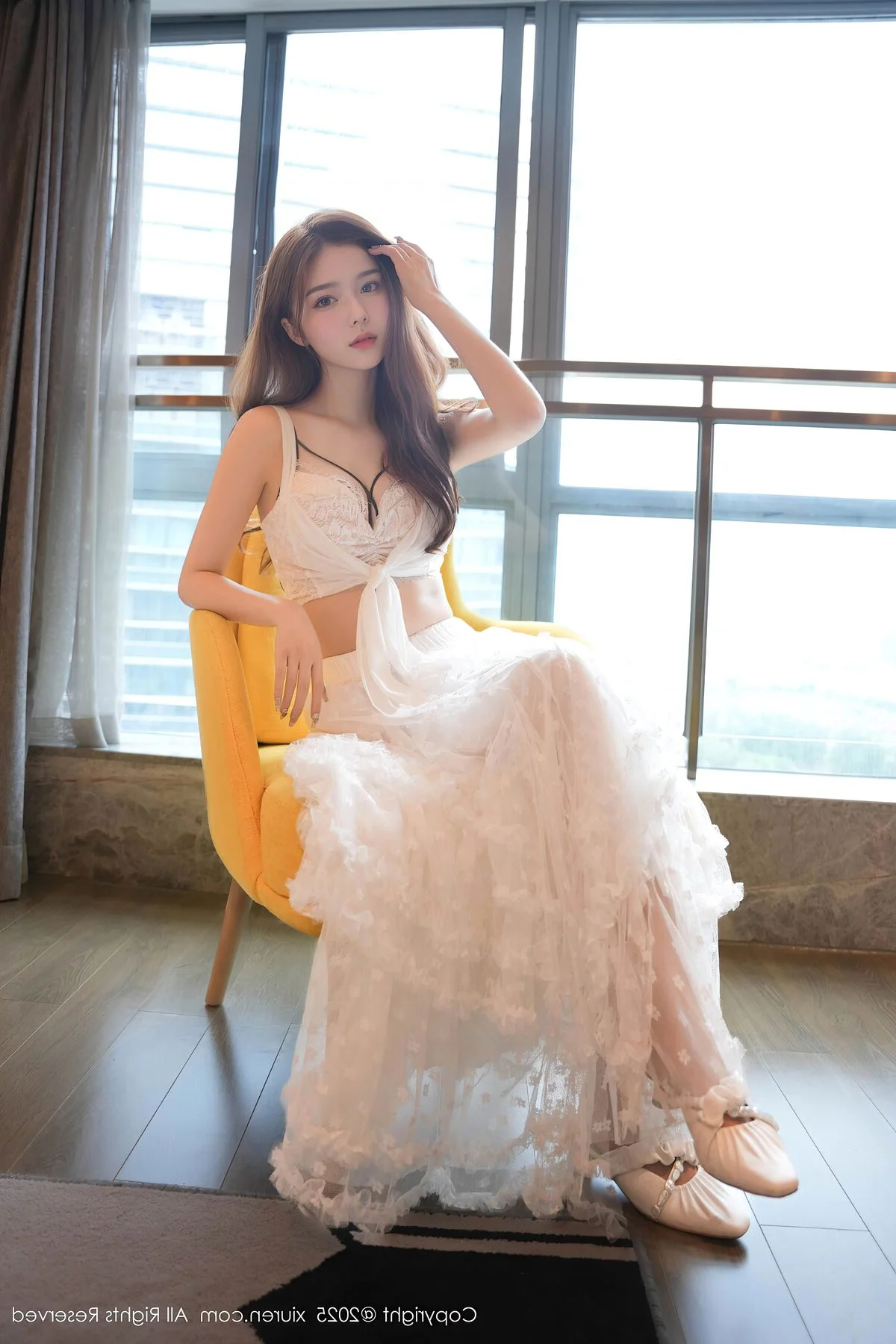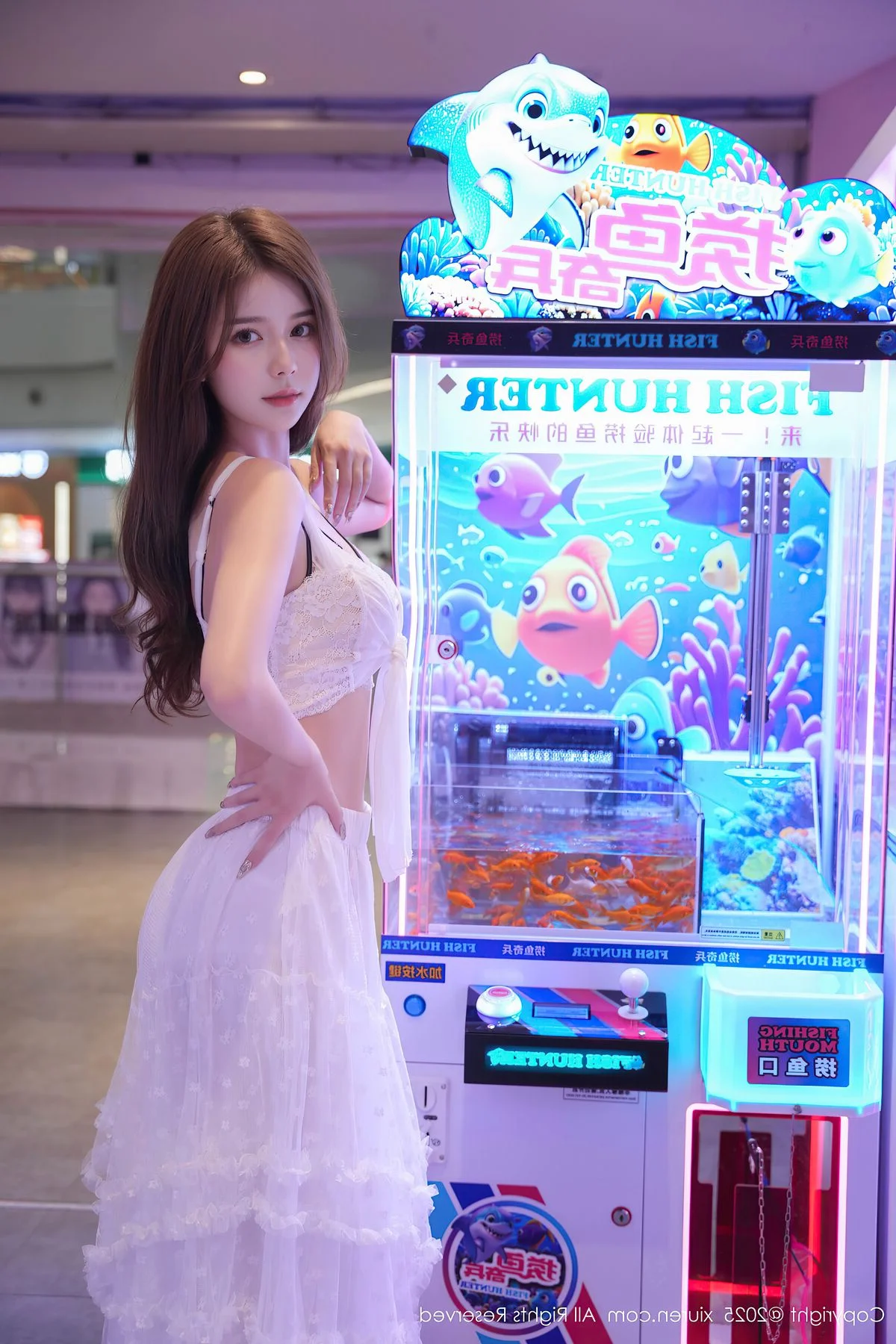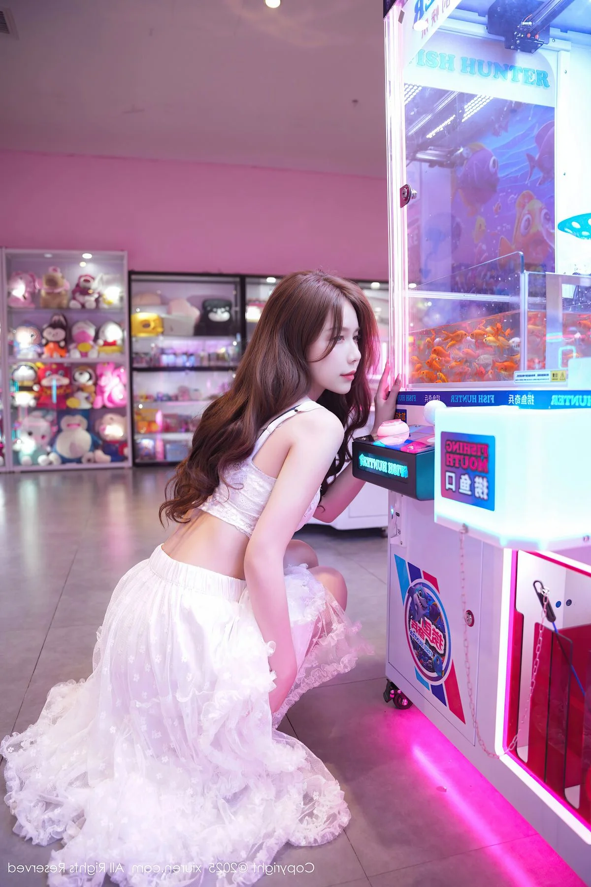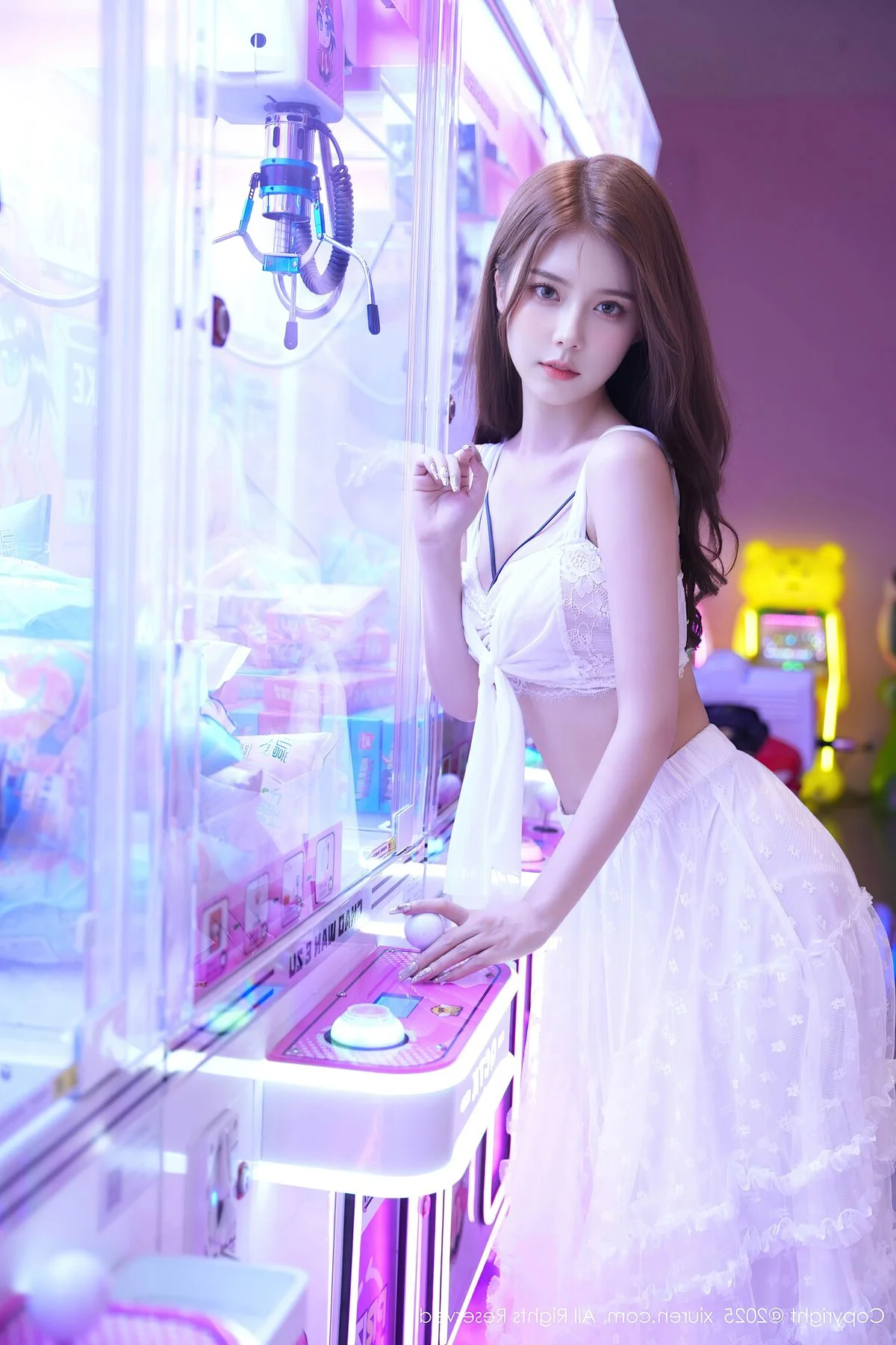 Stepping into the vibrant purple and pink neon glow of an arcade, Pai Huang Gua Girl emerges as a pure and captivating muse in this artistic sequence No.10791. Dressed in an ethereal all-white ensemble, her flowing tiered skirt adds a sense of movement and grace to the energetic urban setting. The delicate tie-front top perfectly balances femininity with a modern fashion edge, highlighting her effortless elegance and sophisticated aura. There is something deeply poetic about the way the soft white fabric contrasts with the colorful, high-energy background, creating a visual narrative that feels both nostalgic and contemporary. Her gentle expression and poised body language invite us into a world where fashion meets playfulness, capturing a fleeting moment of beauty amidst the flashing lights. This aesthetic blend of minimalist styling and maximalist surroundings offers a truly inspiring look at modern visual storytelling and personal style.