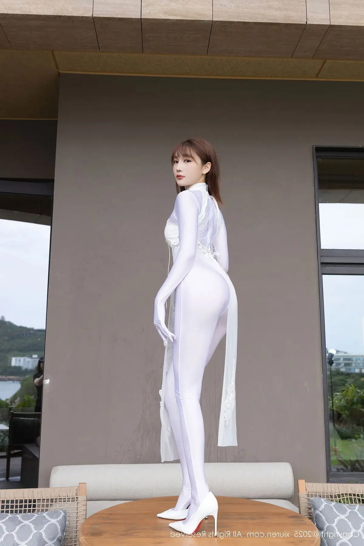 Lu Xuan Xuan, featured in the exclusive XiuRen No.10704 collection, exudes an irresistible blend of elegance and allure. Posing gracefully on a wooden chair, she showcases her long, slender legs in a pristine white dress, its form-fitting design accentuating her perfect curves. Lu Xuan Xuan's confident demeanor and captivating gaze harmoniously blend with the luxurious balcony setting, which opens to a lush green landscape. Every detail, from her attire to her posture, reflects sophistication, transforming the photograph into an enchanting work of art that highlights her professionalism as a model. This collection is sure to captivate admirers of beauty and refined elegance.#LuXuanXuan #XiuRen #Model #WhiteDressFashion #AsianBeauty #ElegantAllure