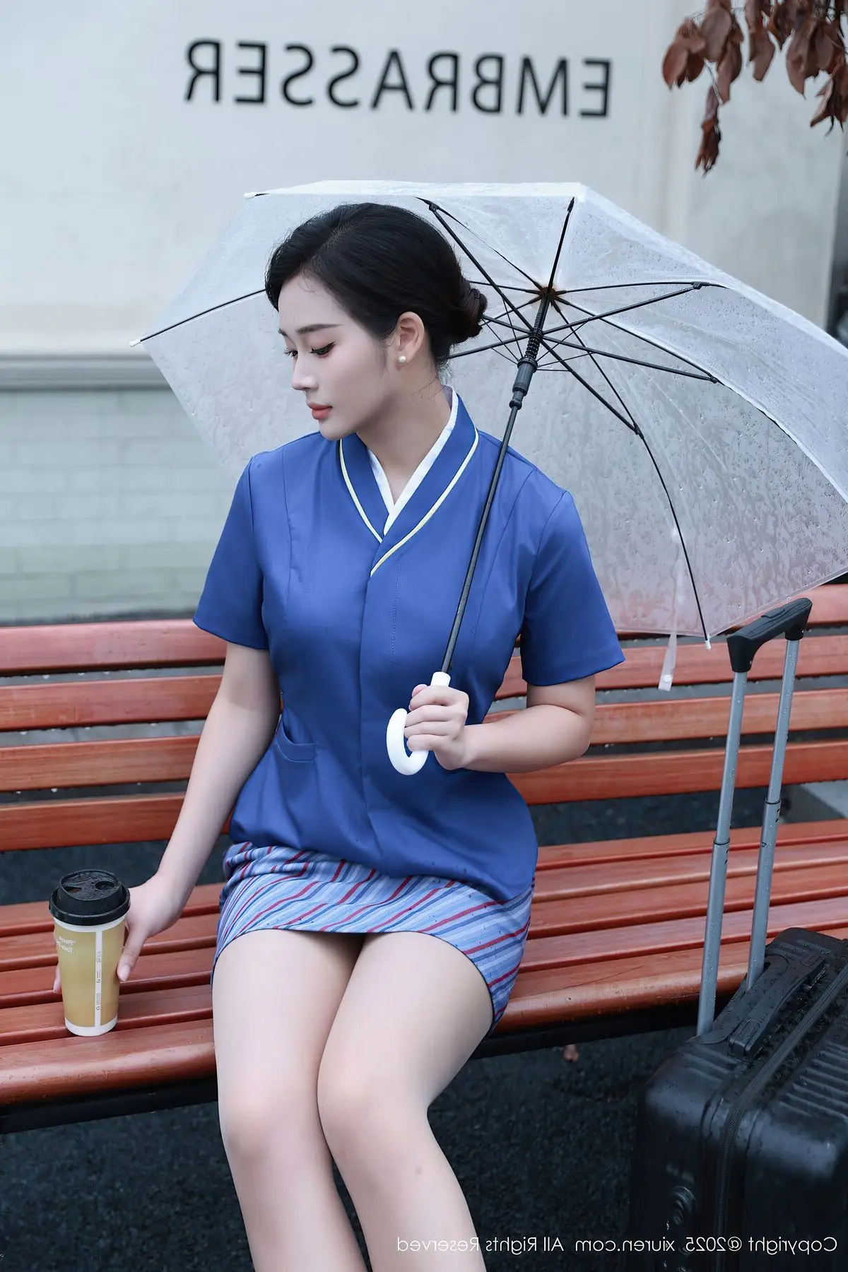 In this captivating XiuRen No.10708 series model Nan Qiao presents an irresistible allure with her stunning beauty. Posing gracefully on a waiting bench perhaps at an airport Nan Qiao expertly showcases her charming figure in a dynamic yet daring ensemble. Her partially unbuttoned blue shirt a short plaid skirt and slender legs adorned with sheer stockings create an image that is both elegant and deeply captivating. Whether it is a moment of waiting or relaxation Nan Qiao effortlessly illuminates the space with her presence. This collection not only captures her physical beauty but also reveals Nan Qiao's confident and seductive aura offering a memorable visual experience for viewers.#NanQiao #XiuRen #AlluringBeauty #SeductiveStyle #TravelFashion