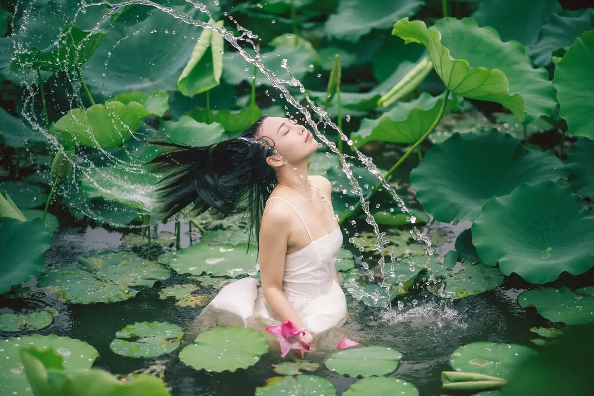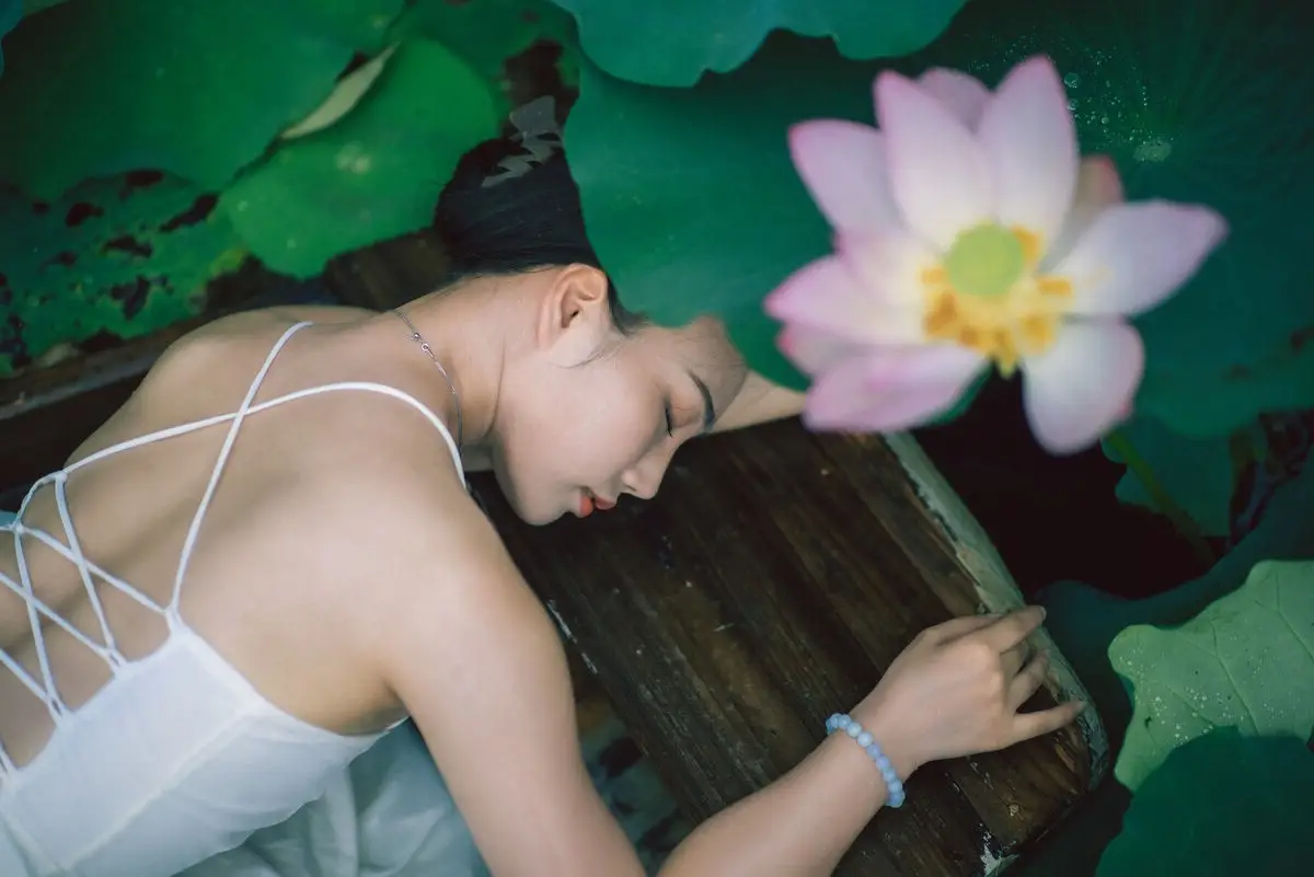 In the YiTuYu Vol.8733 Ju Zi photo collection, model Ju Zi emerges like a muse amidst a lush lotus pond. Dressed in a pristine white gown, she gently bends down to cherish a budding pink lotus flower. Every detail, from her tender gaze to the vibrant green lotus leaves, blends harmoniously to create a poetic and tranquil scene. Ju Zi's pure beauty, coupled with the pristine elegance of the lotus, evokes a sense of a clear and peaceful summer. This collection is not just a series of photos but a celebration of natural beauty and a captivating moment of serenity.#JuZi #LotusFlower #WhiteDress #EtherealBeauty #YiTuYu