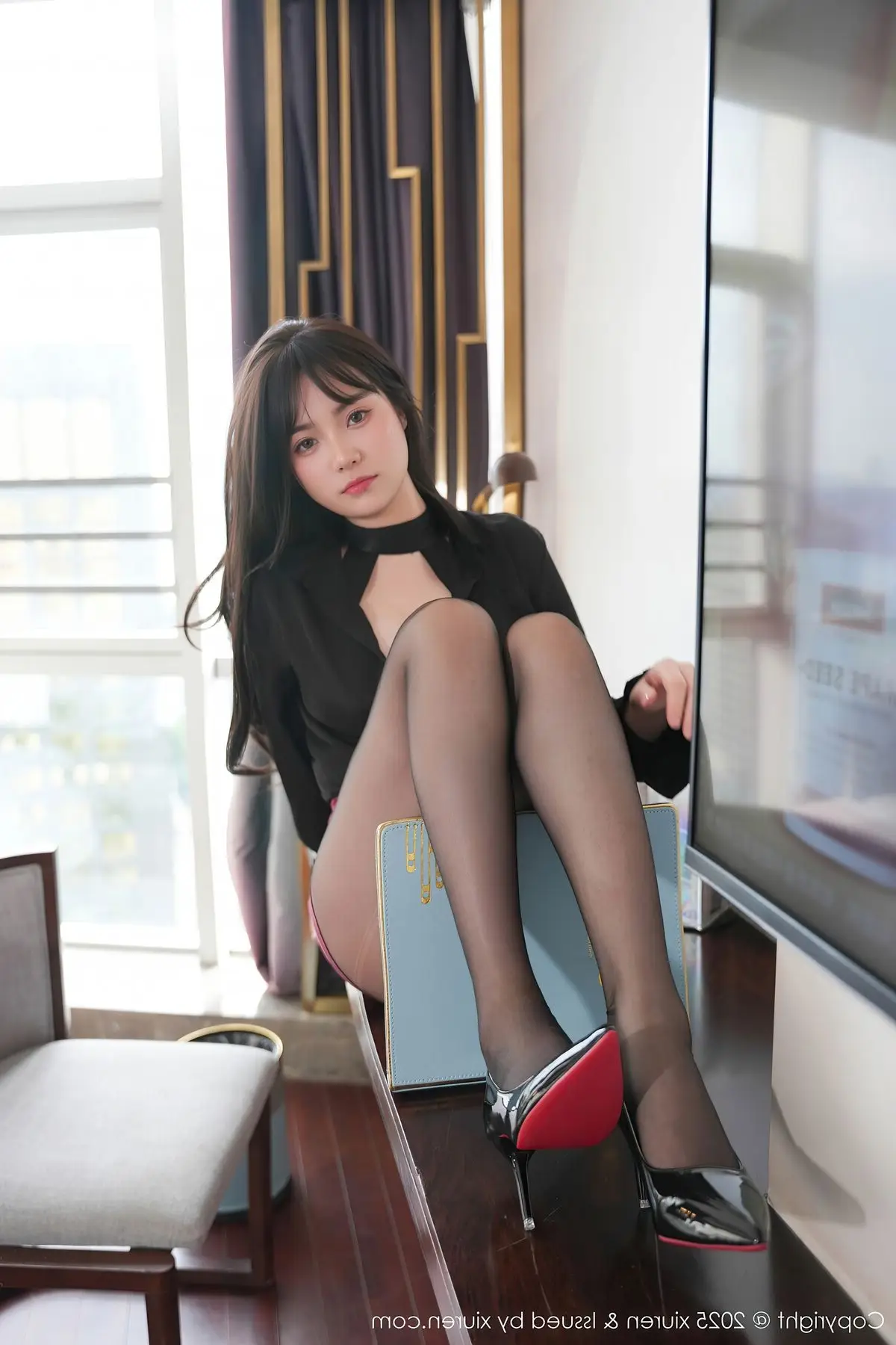 An Ran captivates with her enchanting beauty, posing confidently on a sofa in a sophisticated all-black ensemble. Every detail, from the form-fitting bodysuit and long gloves to the sheer stockings and striking red-soled high heels, accentuates her alluring silhouette. Her deep gaze and captivating demeanor transform each moment into a statement of modern style and undeniable charm. This XiuRen No.10668 photo collection is more than just images; it's a narrative of the model's self-assurance and irresistible beauty.#AnRan #XiuRen #SensualFashion #AlluringBeauty #BlackStyle