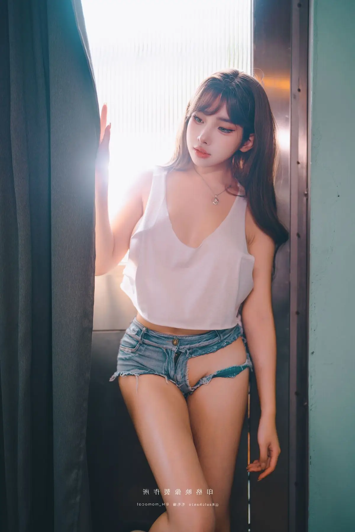 In this captivating image, Coser 慕慕Momo embodies the essence of an alluring newlywed wife, exuding a blend of gentle charm and irresistible seduction. She is comfortably seated on a soft bed, her eyes sparkling behind intellectual glasses yet holding a subtle, inviting gaze. Her simple white tank top elegantly highlights her alluring figure, complemented by her flowing long hair, creating a truly enchanting visual. The cozy room setting further emphasizes an intimate and personal atmosphere, as if she is playfully seducing her beholder within her private space. This collection authentically portrays the theme of constantly seducing my wife after marriage, promising moments filled with emotion and romance.#Coser #Momo #NewlywedWife #PostMarriageSeduction #AlluringBeauty #MomoCosplay