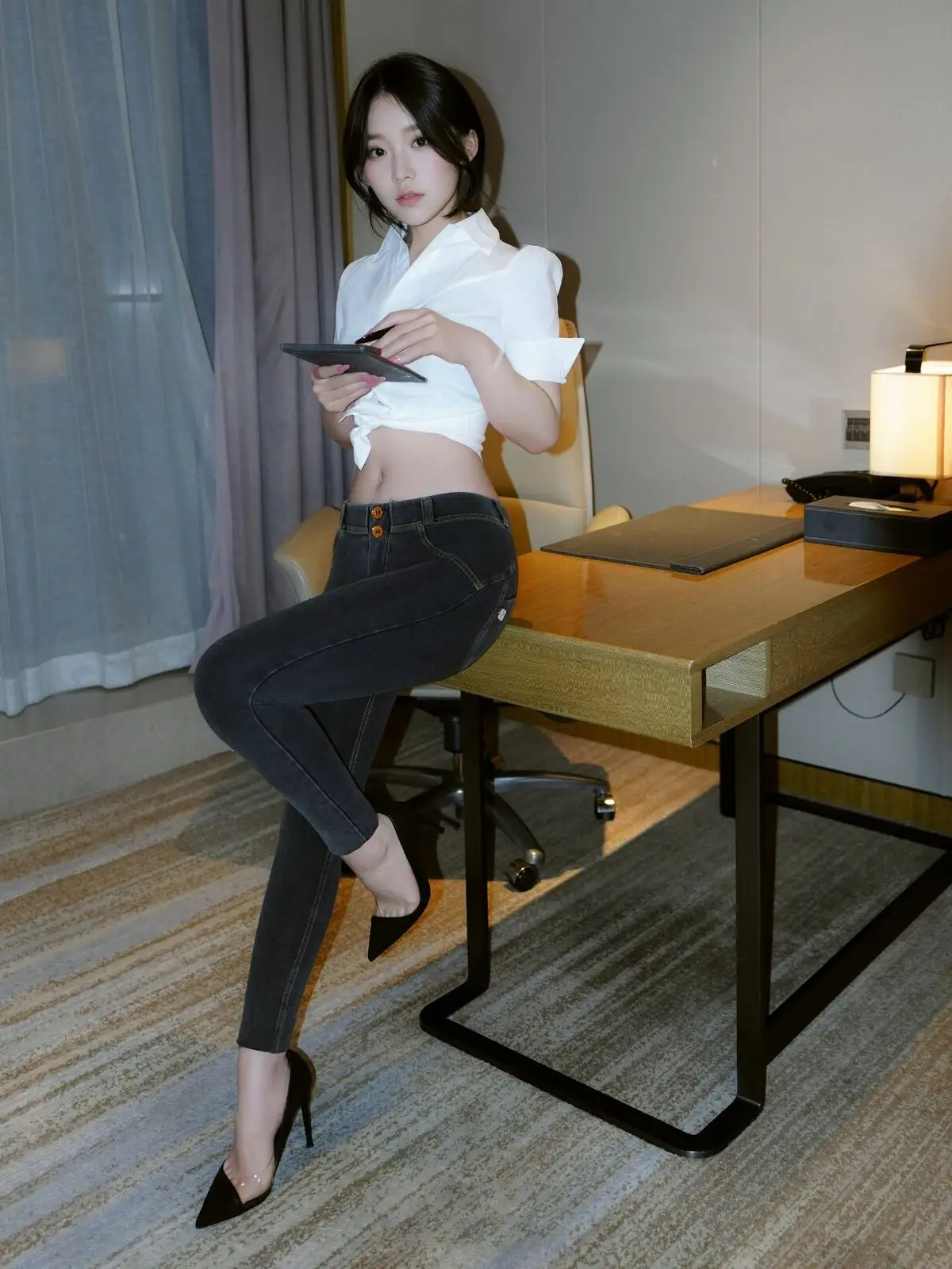 #ZhiZhi #InternSecretary #XiuRen #OfficeFashion #AlluringModel #OfficeLady #OL #jean