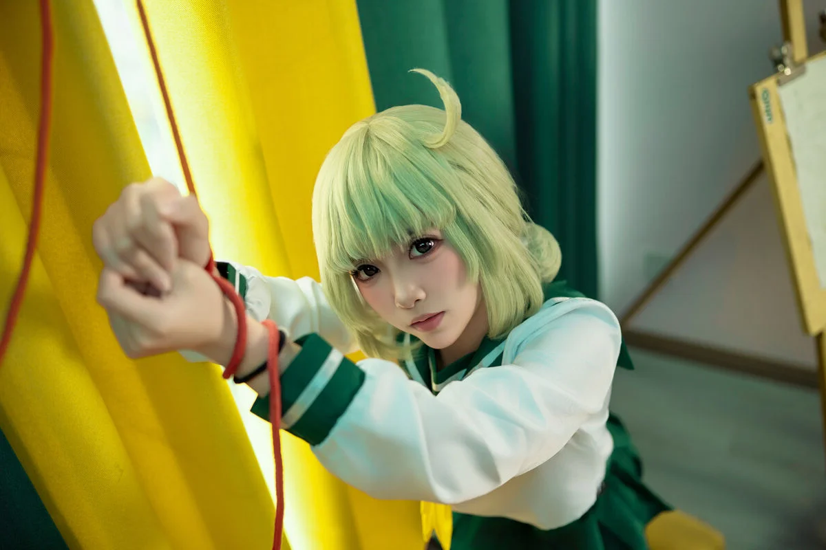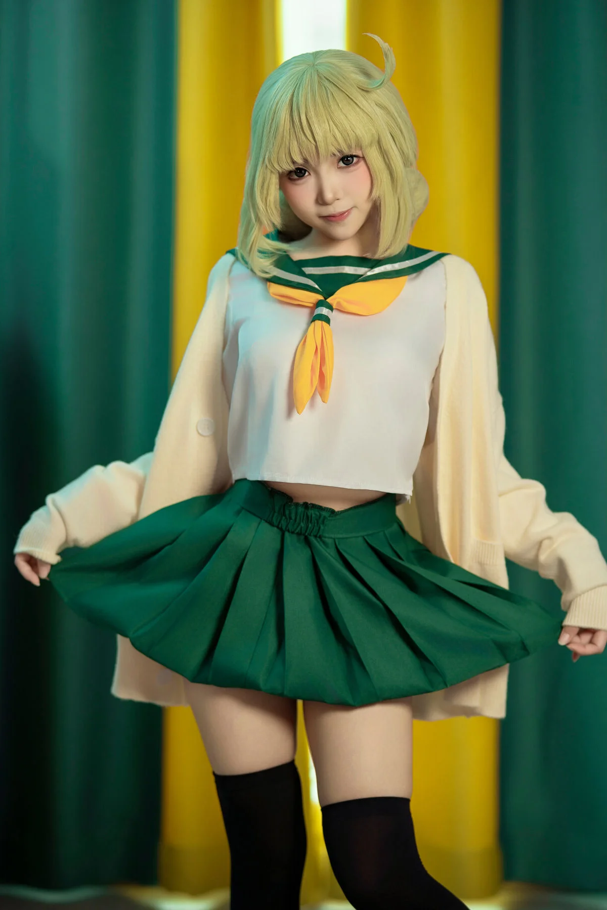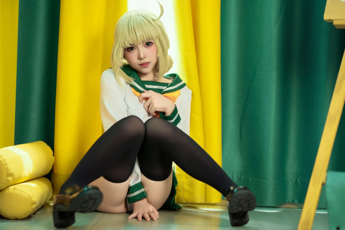 This stunning portrayal of Araga Kiwi by the talented Bangni captures a perfect blend of youthful energy and cinematic mood. The visual storytelling is evident in her expressive gaze and poised body language, reflecting a character that is both sweet and spirited. The fashion choices here are impeccable, featuring a classic sailor style uniform with a vibrant yellow scarf that contrasts beautifully against the deep green accents. Every detail, from the soft texture of the fabric to the iconic blonde hairstyle with its playful flick, is executed with artistic precision and a deep understanding of visual aesthetics. The warm lighting and minimalist background create a nostalgic atmosphere, reminiscent of a quiet afternoon in a classic anime setting. It is a masterful display of how cosplay can transcend into the world of high end visual art, making it a truly inspiring piece for fashion enthusiasts and photography lovers who appreciate the beauty of character transformation.#AragaKiwi #BangniCosplay #MahouShoujoNiAkogarete #AnimeFashion #VisualArt