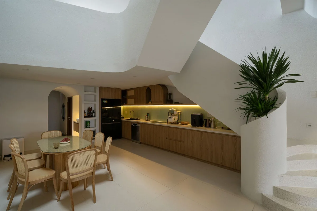 Discover the breathtaking fusion of modern minimalism and soft organic shapes in this stunning tube house located in the vibrant coastal city of Da Nang, Vietnam. This architectural masterpiece has captured international attention for its innovative use of curves, which elegantly replace sharp edges across the facade, railings, and interior ceilings. Designed specifically to combat the tropical heat and humidity of Central Vietnam, the home prioritizes natural ventilation and an abundance of sunlight through its open-plan layout.The interior features a seamless flow between living spaces, where arched doorways and rounded wall surfaces create a sense of tranquility and movement. By integrating natural materials and a neutral color palette, the designers have crafted a sanctuary that feels both spacious and private within a dense urban environment. Every corner of this residence serves as a masterclass in optimizing small urban lots without sacrificing style or comfort.