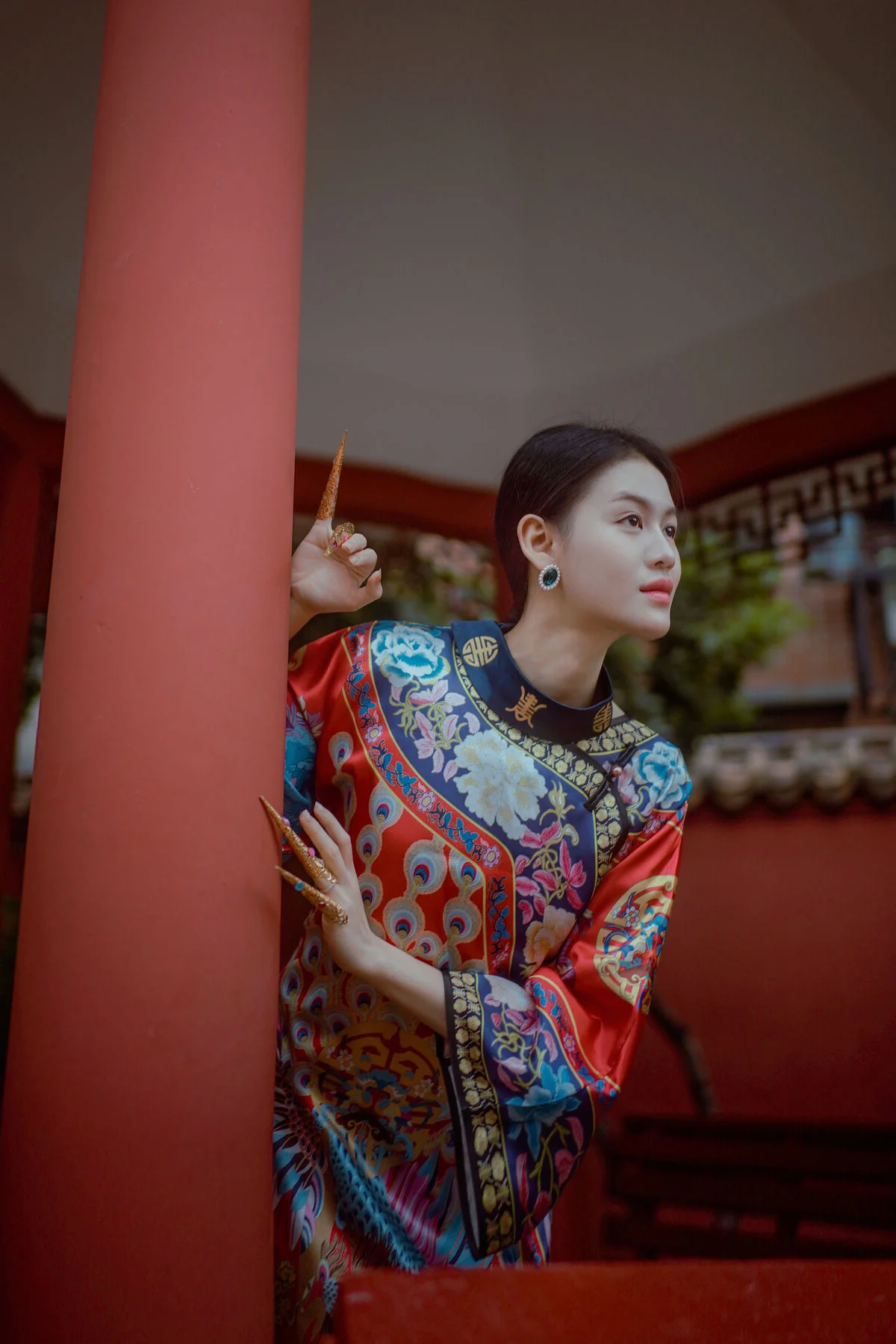 Stepping into the world of YiTuYu Vol.8871 feels like entering a classic cinematic scene where Man Li embodies grace and sophistication. The deep red wall a signature element of traditional palace architecture serves as a powerful backdrop that bridges the gap between heritage and modern aesthetics. Man Li wears an exquisitely patterned Qipao featuring vibrant floral embroidery that catches the soft natural light beautifully. Her poised silhouette complemented by a delicate round fan evokes a sense of nostalgia and high class charm. The composition is masterfully balanced with the minimalist red expanse contrasted against the intricate details of her attire and the gentle shadows cast by the trees above. It is a visual journey that celebrates the profound beauty of Eastern culture capturing a moment of stillness and artistic depth that resonates long after the first look. This collection is a perfect blend of fashion and visual storytelling.#AsianAesthetics #QipaoStyle #YiTuYu #FineArtPhotography #ManLi #CulturalHeritage