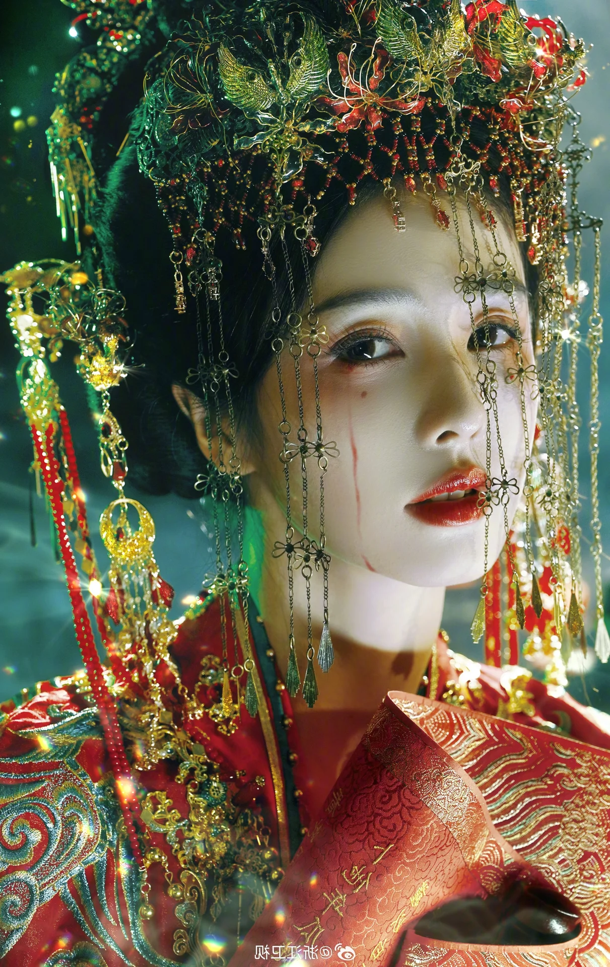 Experience the mesmerizing transformation of renowned actress Bai Lu in her latest role for the highly anticipated Chinese drama, "The Strange Case of Tang Palace." Known for her incredible versatility and stunning screen presence, Bai Lu has once again captured the internet's attention with a look that fans are calling hauntingly beautiful. This particular bridal ensemble, deeply inspired by the rich and intricate aesthetics of the Tang Dynasty, stands out as a unique departure from the traditional wedding attire typically seen in period dramas over the last decade.The fine details of the costume, combined with the ethereal makeup and atmospheric lighting, create a visual masterpiece that fans of C-drama and historical fashion will absolutely adore. "The Strange Case of Tang Palace" promises a compelling blend of mystery and elegance, and these preview images perfectly encapsulate the show's dark yet sophisticated tone. Many viewers have noted that this is one of the most distinctive and special bridal portrayals in recent history, highlighting the exceptional creative direction and high production value of the series.