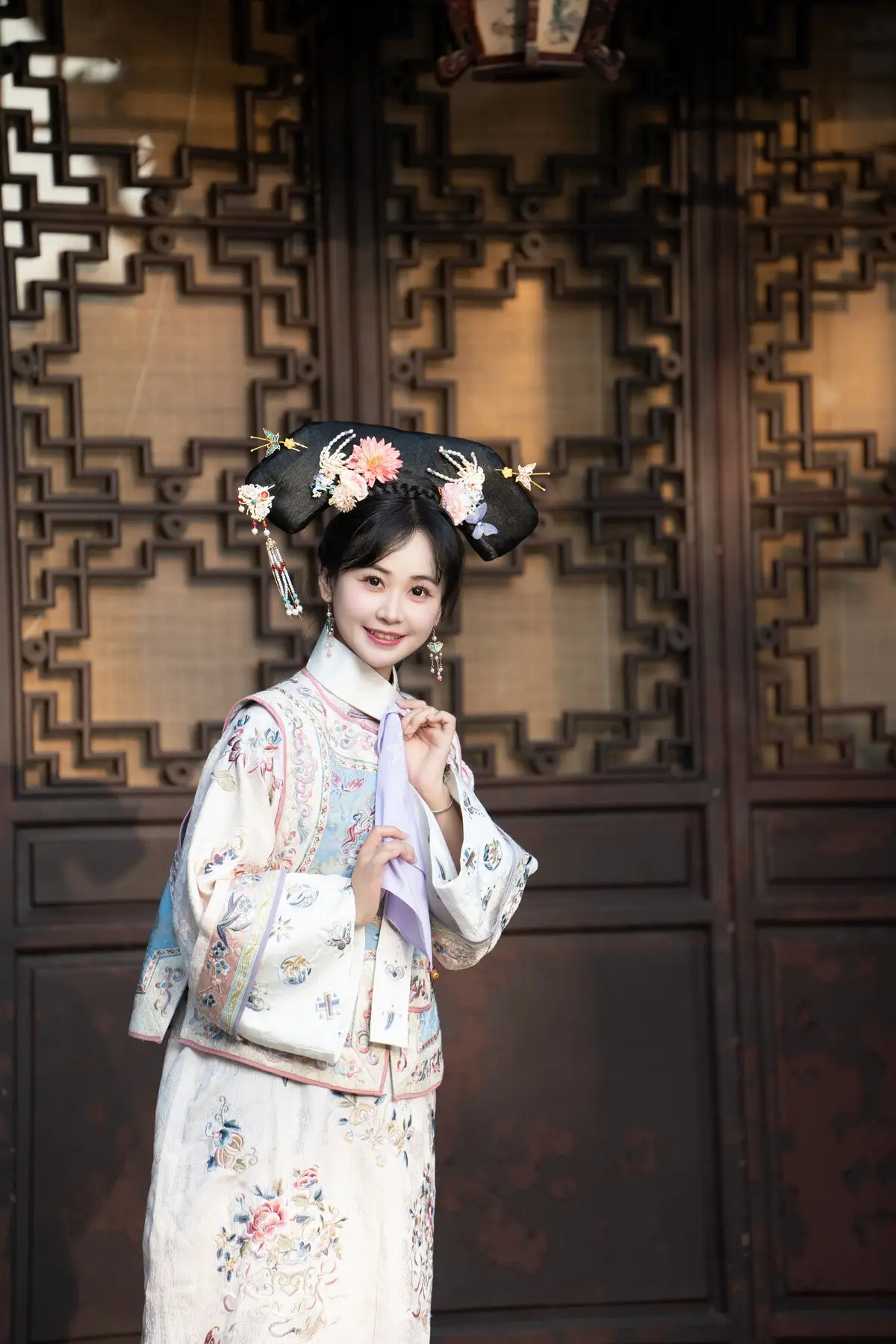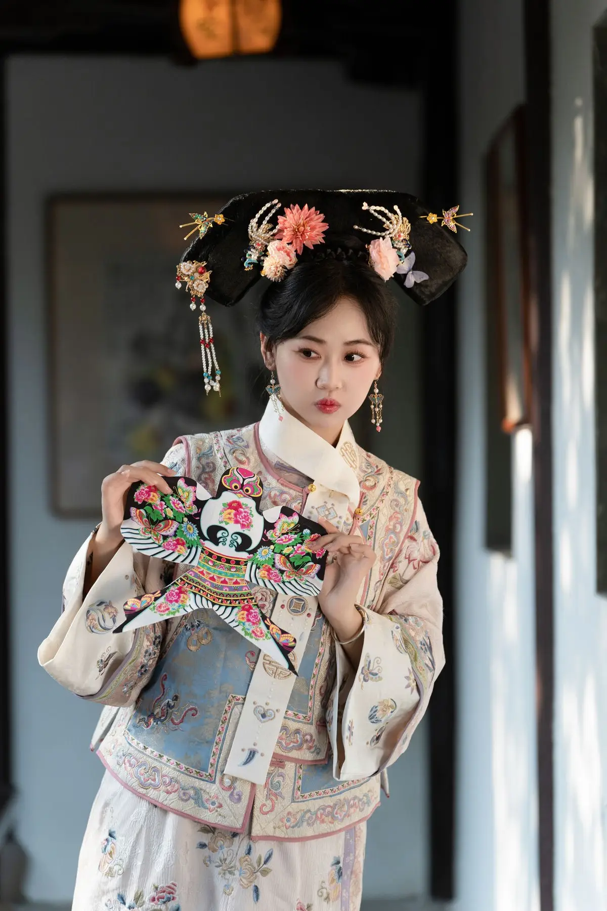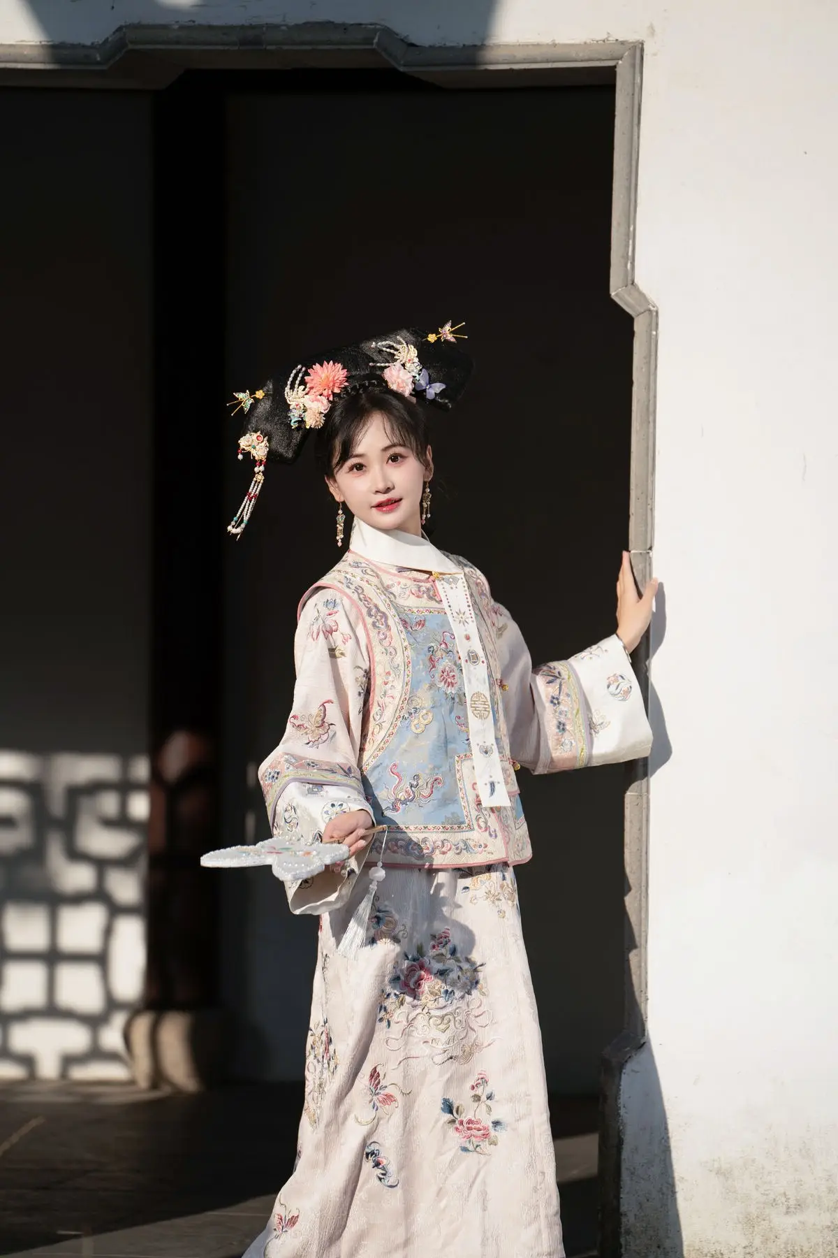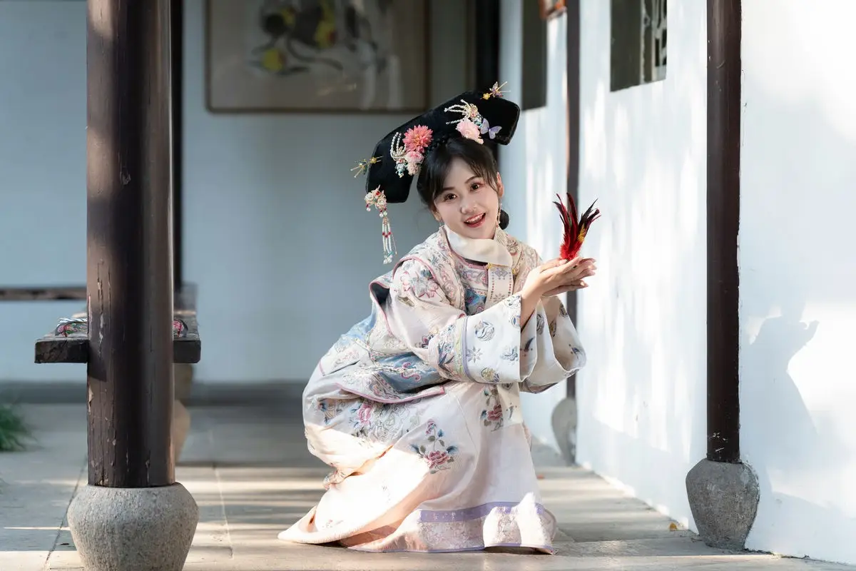 This exquisite image features Jiao Yi Zhi Sui Sui adorned in a breathtaking traditional ancient costume She radiates an elegant and graceful beauty as if stepping directly from a classic tale Her intricately embroidered robe with its delicate floral patterns and soft color palette creates a harmonious and luxurious appeal The elaborate headpiece and the finely hand-embroidered fan she holds further accentuate her regal demeanor Jiao Yi Zhi Sui Sui's gentle gaze and subtle smile convey a sense of timeless serenity and classic charm The entire scene evokes a rich East Asian cultural ambiance captivating viewers with its perfect blend of artistic fashion and natural allure