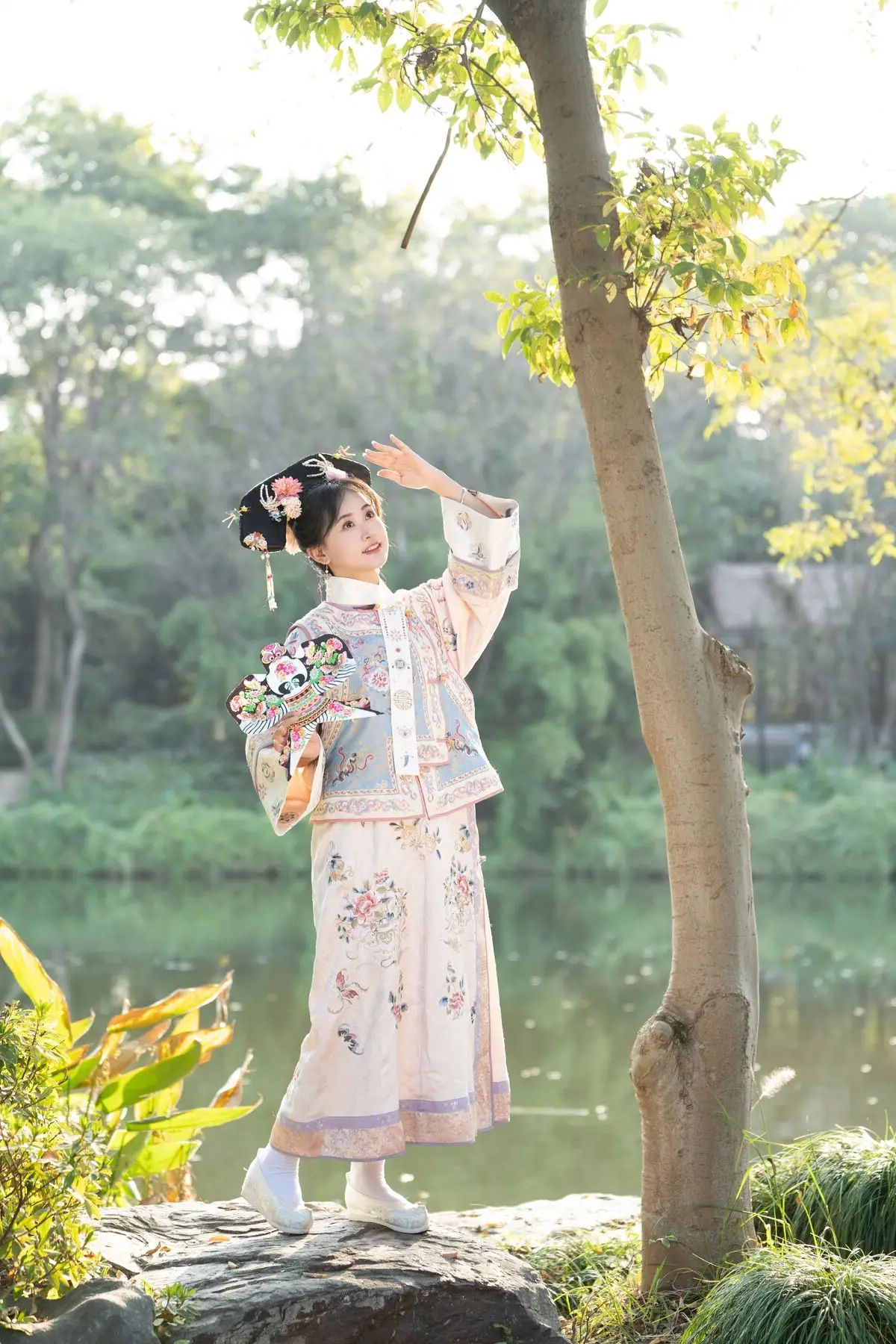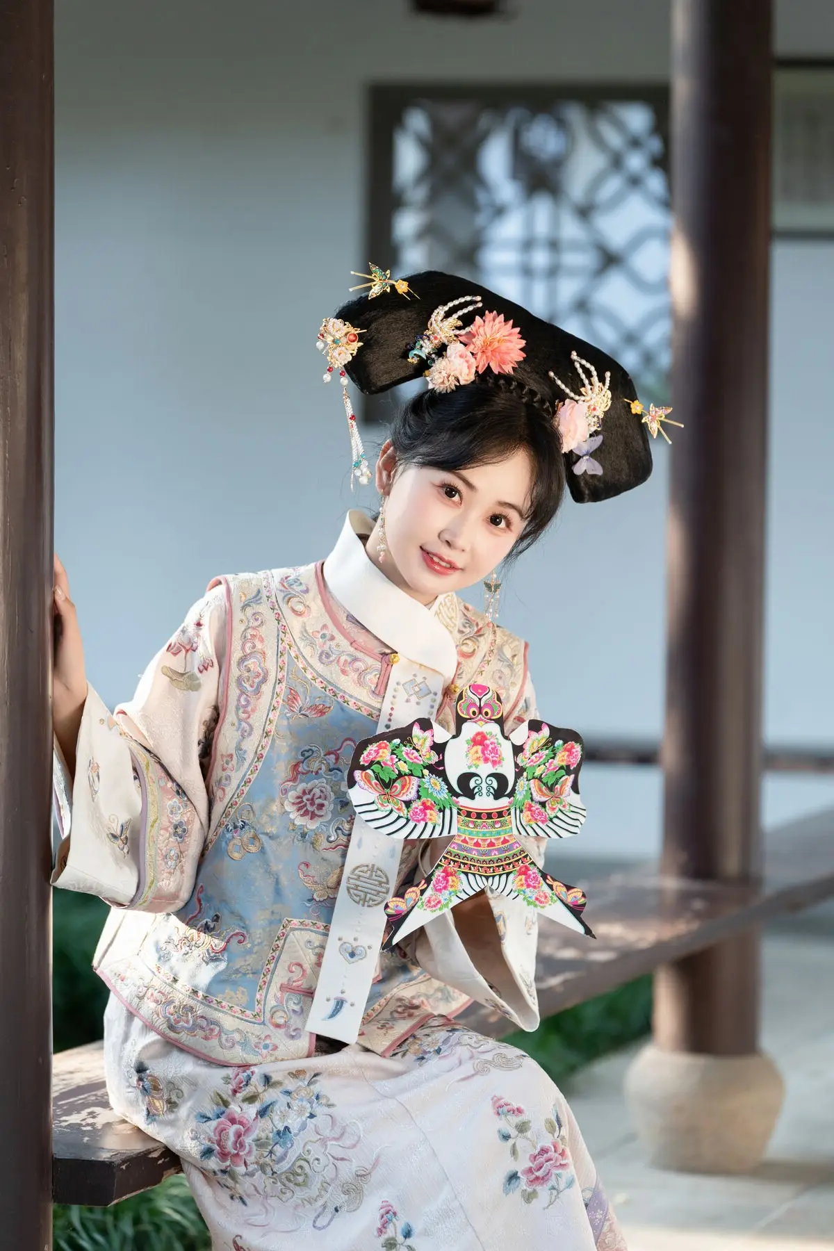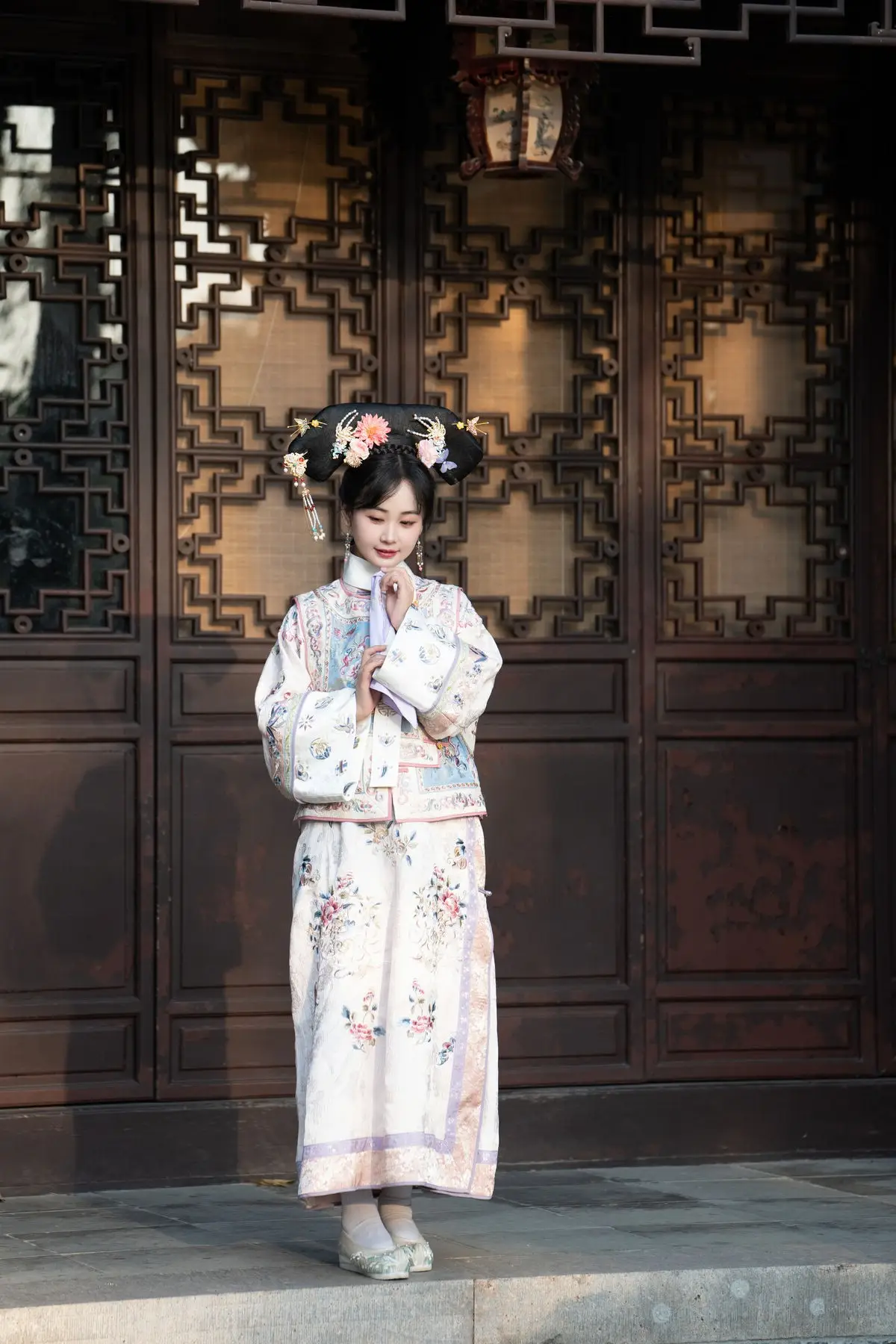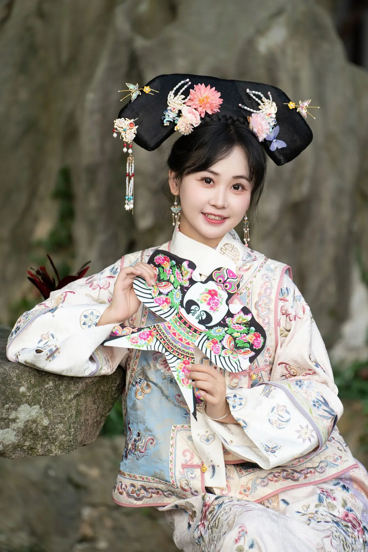 This exquisite image features Jiao Yi Zhi Sui Sui adorned in a breathtaking traditional ancient costume She radiates an elegant and graceful beauty as if stepping directly from a classic tale Her intricately embroidered robe with its delicate floral patterns and soft color palette creates a harmonious and luxurious appeal The elaborate headpiece and the finely hand-embroidered fan she holds further accentuate her regal demeanor Jiao Yi Zhi Sui Sui's gentle gaze and subtle smile convey a sense of timeless serenity and classic charm The entire scene evokes a rich East Asian cultural ambiance captivating viewers with its perfect blend of artistic fashion and natural allure