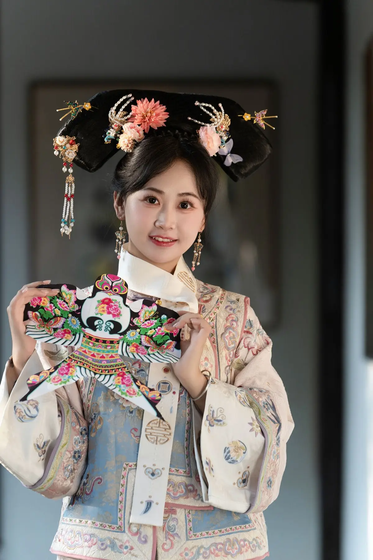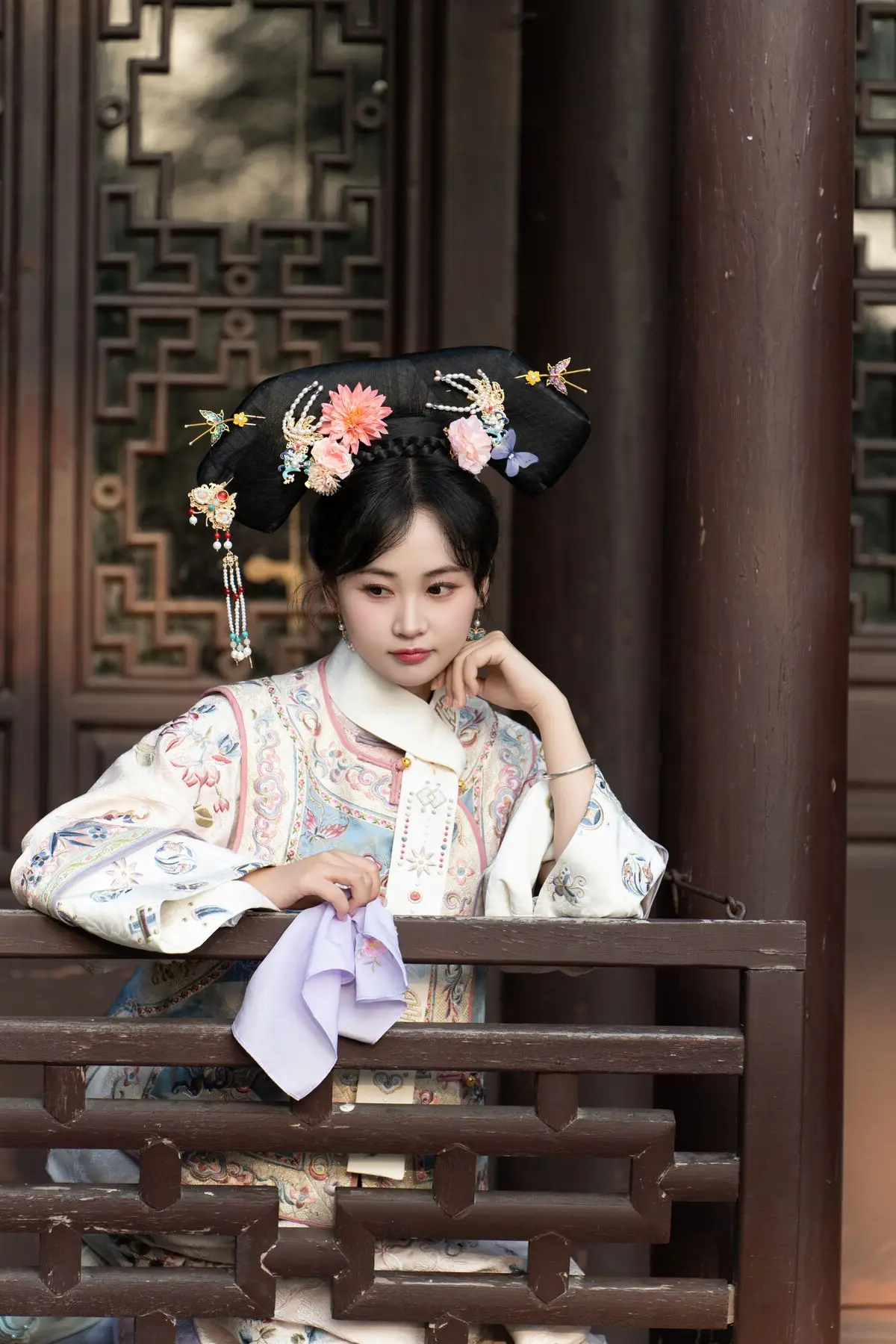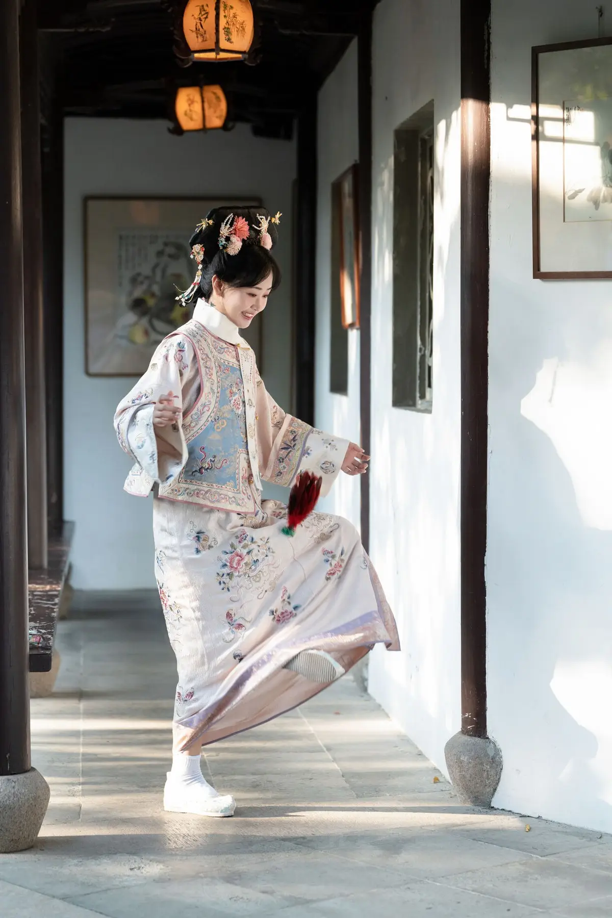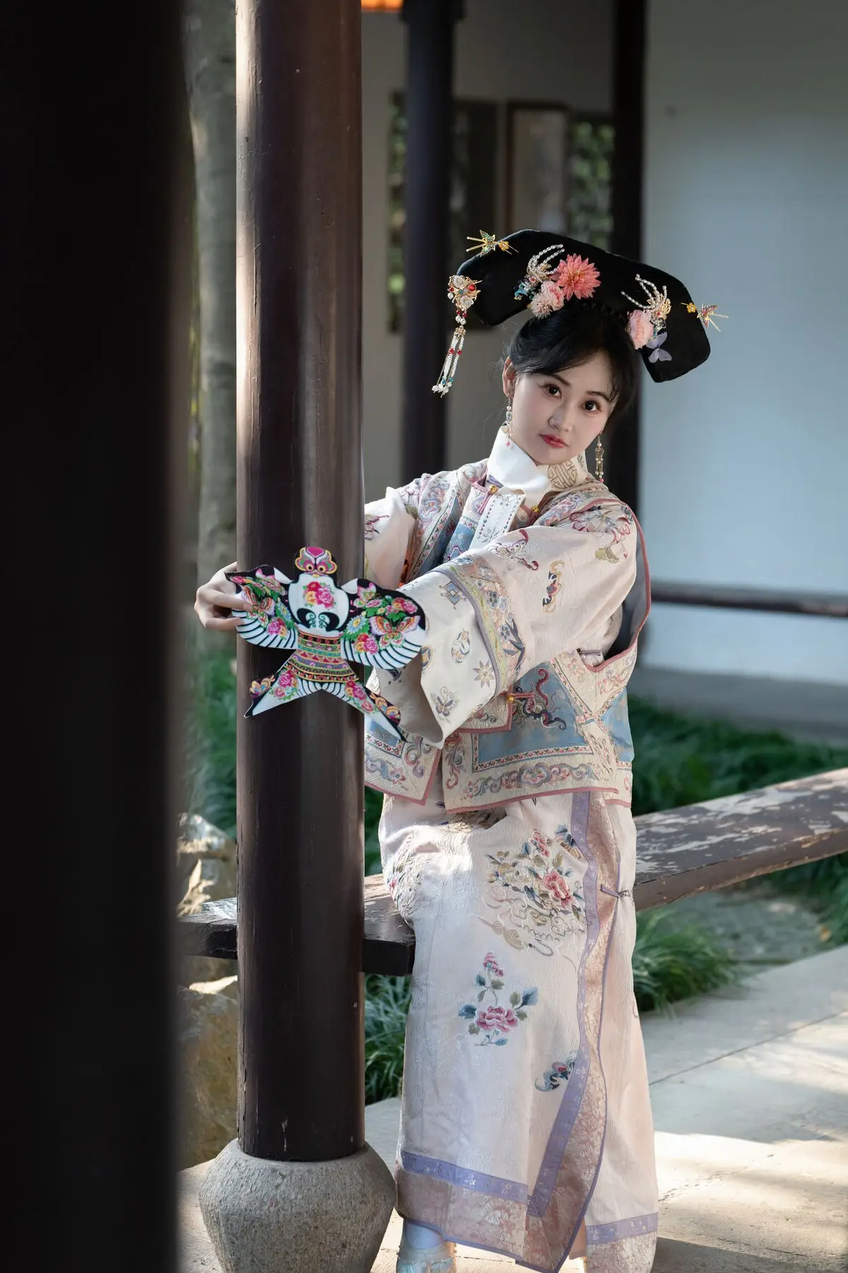 This exquisite image features Jiao Yi Zhi Sui Sui adorned in a breathtaking traditional ancient costume She radiates an elegant and graceful beauty as if stepping directly from a classic tale Her intricately embroidered robe with its delicate floral patterns and soft color palette creates a harmonious and luxurious appeal The elaborate headpiece and the finely hand-embroidered fan she holds further accentuate her regal demeanor Jiao Yi Zhi Sui Sui's gentle gaze and subtle smile convey a sense of timeless serenity and classic charm The entire scene evokes a rich East Asian cultural ambiance captivating viewers with its perfect blend of artistic fashion and natural allure