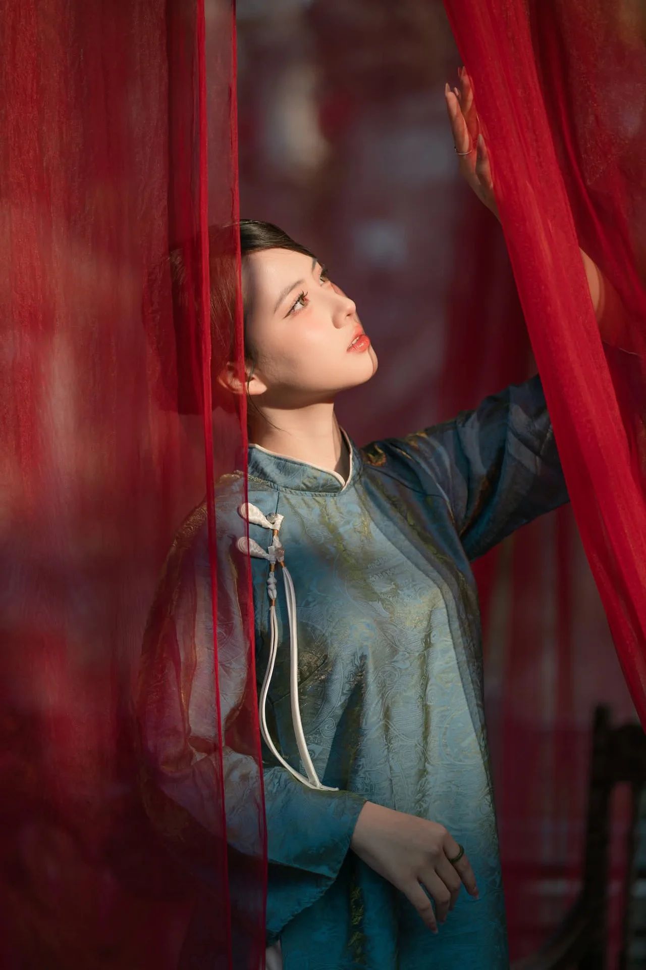 Immerse yourself in a poetic atmosphere with Er Yi Zhi in the YiTuYu Art Language Vol.8877 collection. This visual piece captures a nostalgic yet sophisticated essence, where the language of art is spoken through every glance and gentle gesture of the muse. She wears a traditional inspired outfit featuring an exquisite color palette of teal and lavender, creating an ensemble that is both ethereal and mysterious. The delicate round fan, adorned with soft patterns, serves as more than just a prop, it frames her elegant features and enhances a serene aura reminiscent of a still autumn lake. The lighting is masterfully handled, softly filtering through the lush greenery in the background to create an enchanting sense of depth. This is a true inspiration for those who appreciate visual arts and minimalist aesthetics, where fashion and soul seamlessly intertwine to tell a timeless story of beauty and grace in every frame.#TimelessBeauty #ArtLanguage #FineArtPhotography #AsianElegance #VisualStorytelling