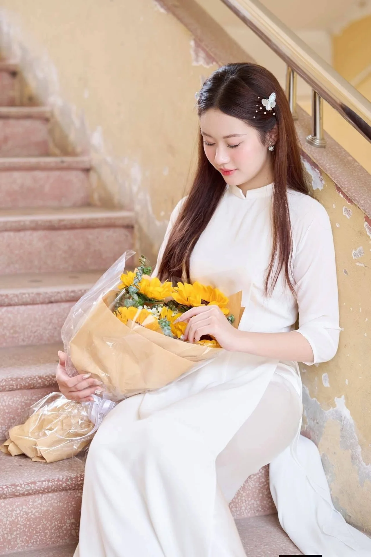 Step into the world of timeless elegance with the latest photoshoot featuring the renowned Vietnamese aviation personality, Bùi Quốc Quỳnh Anh, also known to her international followers as Gabriella Bùi. Often celebrated for her dynamic and energetic lifestyle as a professional flight attendant, Gabriella Bùi recently captivated audiences by embracing a more serene and traditional aesthetic. In this stunning collection, she showcases the exquisite beauty of the Vietnamese Ao Dai, a garment that symbolizes national pride and feminine grace.The Ao Dai is more than just a dress; it is a cultural masterpiece that highlights the delicate silhouette of the wearer while maintaining an air of sophistication. Gabriella’s choice to step away from her modern uniform to don this traditional attire offers a refreshing perspective on her versatile style. The intricate craftsmanship of the silk and the flowing lines of the tunic provide a perfect backdrop for her natural beauty, making this look a favorite for fashion enthusiasts and cultural travelers alike.