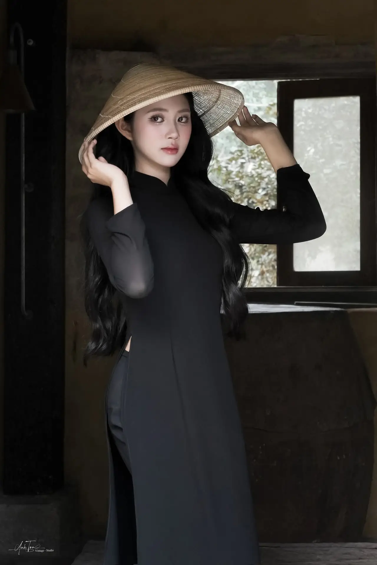 Timeless Beauty: Graceful Vietnamese Lady in Black Ao Dai Captivates with Asian Elegance.