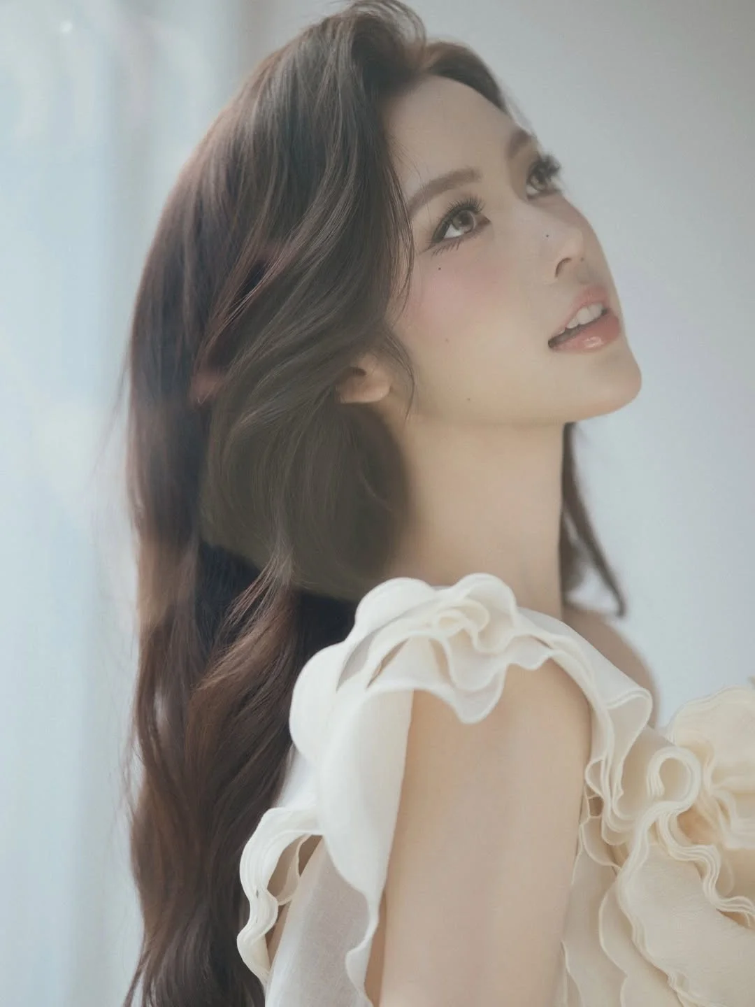 This portrait captures a breathtaking moment of pure elegance, where Ha An's gaze speaks volumes of emotion and depth. Dressed in a pristine white outfit adorned with delicate ruffles, she embodies a modern-day muse with an ethereal aura. The choice of soft fabrics and a minimalist color palette highlights her porcelain skin and refined features, creating a visual masterpiece that feels both timeless and contemporary. Her natural, flowing hair and soft makeup enhance the overall artistic vibe, perfectly illustrating the captivating beauty concept that has become her signature. This image serves as a profound inspiration for those who appreciate fine art photography and the subtle power of feminine grace. It is more than just a photo; it is a celebration of visual harmony and soulful expression, inviting viewers to get lost in its serene yet powerful atmosphere.#MuseAesthetic #ElegantStyle #PortraitPhotography #VisualArt #BeautyInspiration