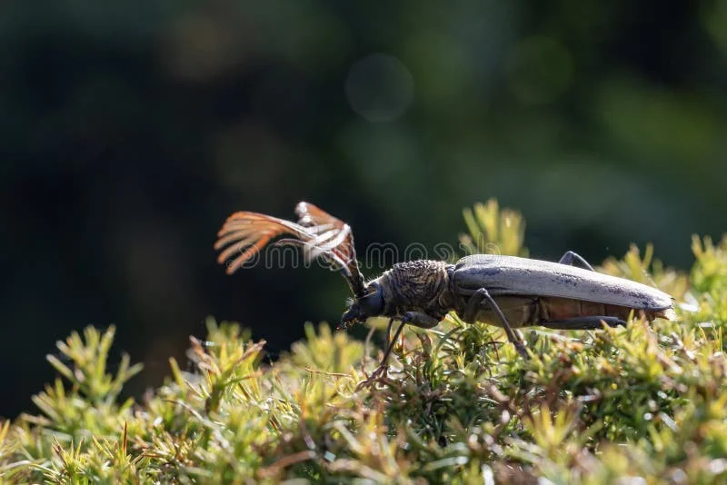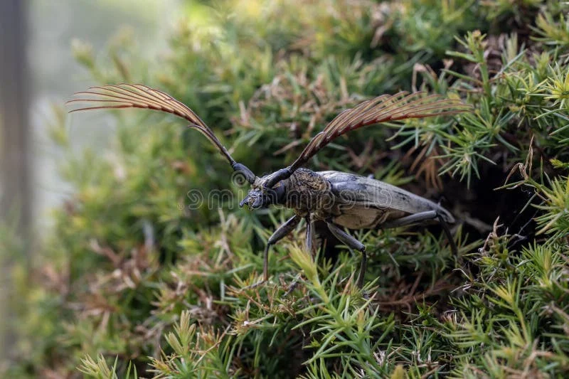 Deep in the lush rainforests of Southeast Asia dwells one of nature's most spectacular architectural wonders: the Wallace’s Longhorn Beetle, scientifically known as Cyriopalus wallacei. This rare and elusive insect is a crown jewel for entomologists and nature photographers alike. Named in honor of the legendary naturalist Alfred Russel Wallace, this beetle is instantly recognizable by its magnificent, elongated antennae that feature a unique, comb-like structure, setting it apart from almost every other species in the Cerambycidae family.The Cyriopalus wallacei showcases a stunning palette of deep umber and warm ochre tones, with intricate patterns that provide perfect camouflage against the bark of tropical trees. These beetles are not just visual marvels; they play a vital role in the ecosystem of the rainforest, contributing to the natural cycle of life and maintaining the delicate balance of their habitat. Because they are so rarely encountered in the wild, sightings of this extraordinary beetle are a testament to the rich, yet fragile, biodiversity of the tropics.