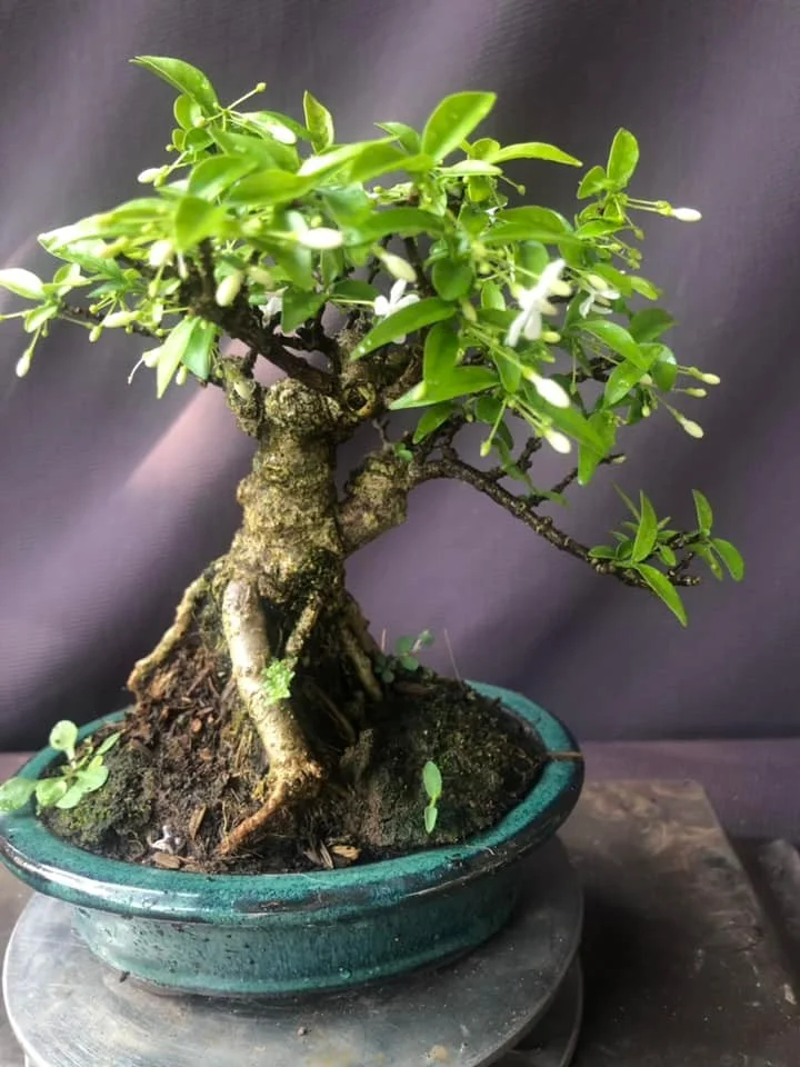 In the quietude of a modern home, this Mai Chieu Thuy mini bonsai stands as a living masterpiece, embodying the essence of patience and refined artistry. The delicate white blossoms, reminiscent of tiny morning dewdrops, contrast beautifully against the lush green foliage, filling the air with a subtle and enchanting fragrance. Its weathered, twisted trunk tells a story of meticulous bonsai pruning, blending ancient tradition with a minimalist aesthetic that fits perfectly on a contemporary desk or shelf. As we approach the Lunar New Year 2026, these miniature trees have become a symbol of resilience and prosperity, making them a meaningful addition to any interior space. The harmonious blend of natural greens and the deep turquoise ceramic pot creates a soothing visual rhythm, offering a moment of Zen like peace in a busy world. Whether you are a plant enthusiast or a lover of fine aesthetics, this tiny tree is a testament to the beauty that can be found in small well tended things, bringing a touch of nature's elegance into your daily life.#MiniBonsai #WaterJasmine #Tet2026 #BonsaiArt #LunarNewYear #InteriorDesign #ZenVibes #PlantAesthetics