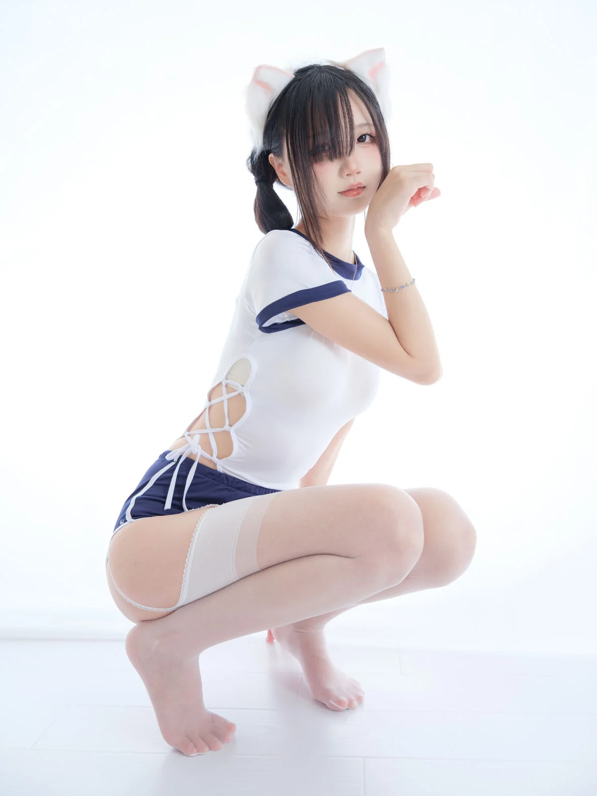 Step into the vibrant world of professional cosplay with this stunning collection featuring the acclaimed artist Wu Geng Bai Gui. This specific series highlights a unique blend of athletic aesthetics and whimsical charm, showcasing the model in a classic Japanese-inspired gym uniform paired with adorable cat ear accessories. Known for her ability to embody diverse characters, Wu Geng Bai Gui delivers a performance that is both playful and visually striking, making this set a standout for fans of high-quality anime-style photography.The 'Captain' theme of this gallery brings a fresh perspective to the sporty gym style, emphasizing a clean and energetic look that is highly popular in contemporary cosplay circles. Every shot in this 26-piece collection is meticulously framed to capture the fine details of the costume, from the texture of the athletic fabric to the expressive positioning of the cat ears. The soft lighting and professional composition highlight the model’s natural grace, creating an inviting atmosphere that resonates with audiences across the US and Europe who appreciate the 'kawaii' subculture.