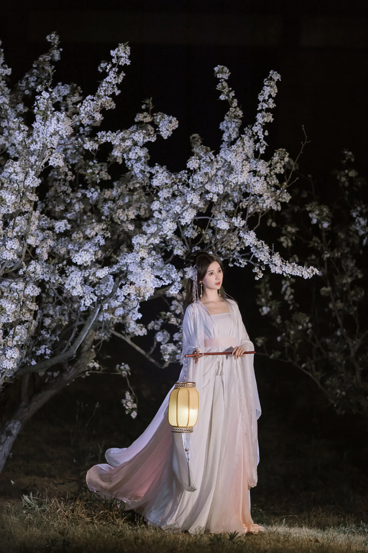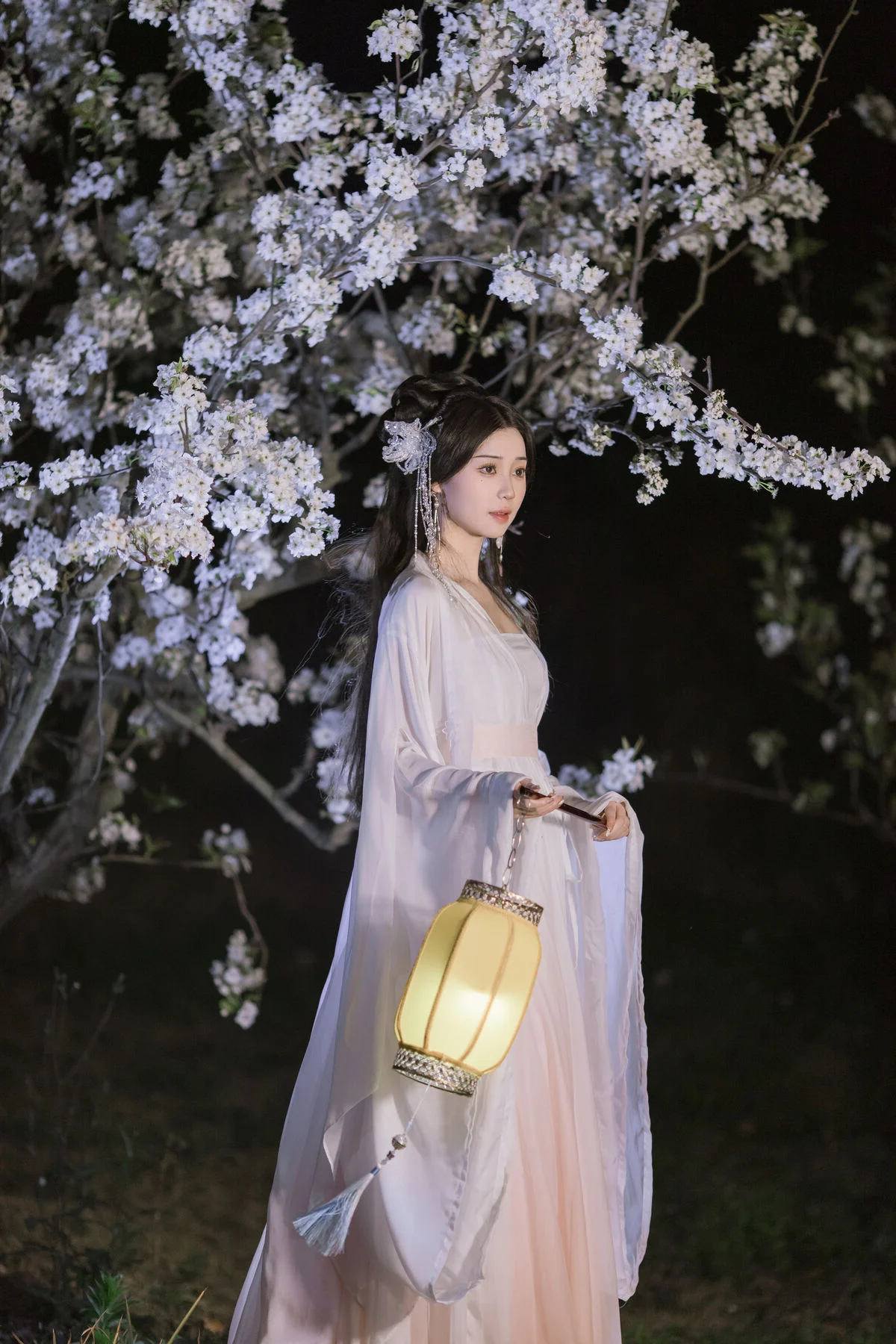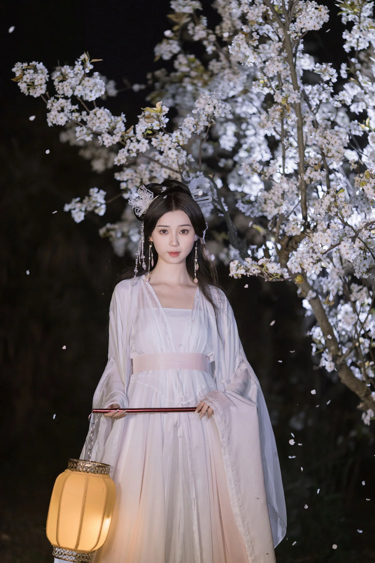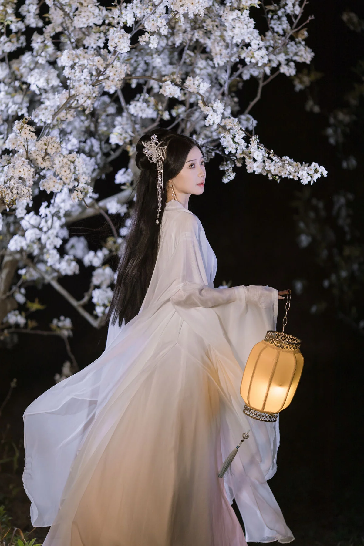 In this YiTuYu艺图语 Vol.8782 collection model Chu Yuan Yuan captivates as an ethereal muse amidst a mystical night scene. Dressed in a pristine white traditional Hanfu with flowing elegant lines she exudes a refined and graceful beauty. The soft glow from the ancient lantern and the abundant white cherry blossoms blooming in the dark create a romantic and poetic tableau. Holding a bamboo flute Chu Yuan Yuan appears lost in her own silent melody evoking a sense of peace and profound contemplation. This perfect harmony between human elegance and natural splendor forms an enchanting work of art inspiring nostalgia and admiration for traditional aesthetics.#ChuYuanYuan #Hanfu #CherryBlossomNight #ChineseArt #ClassicalBeauty #YiTuYu