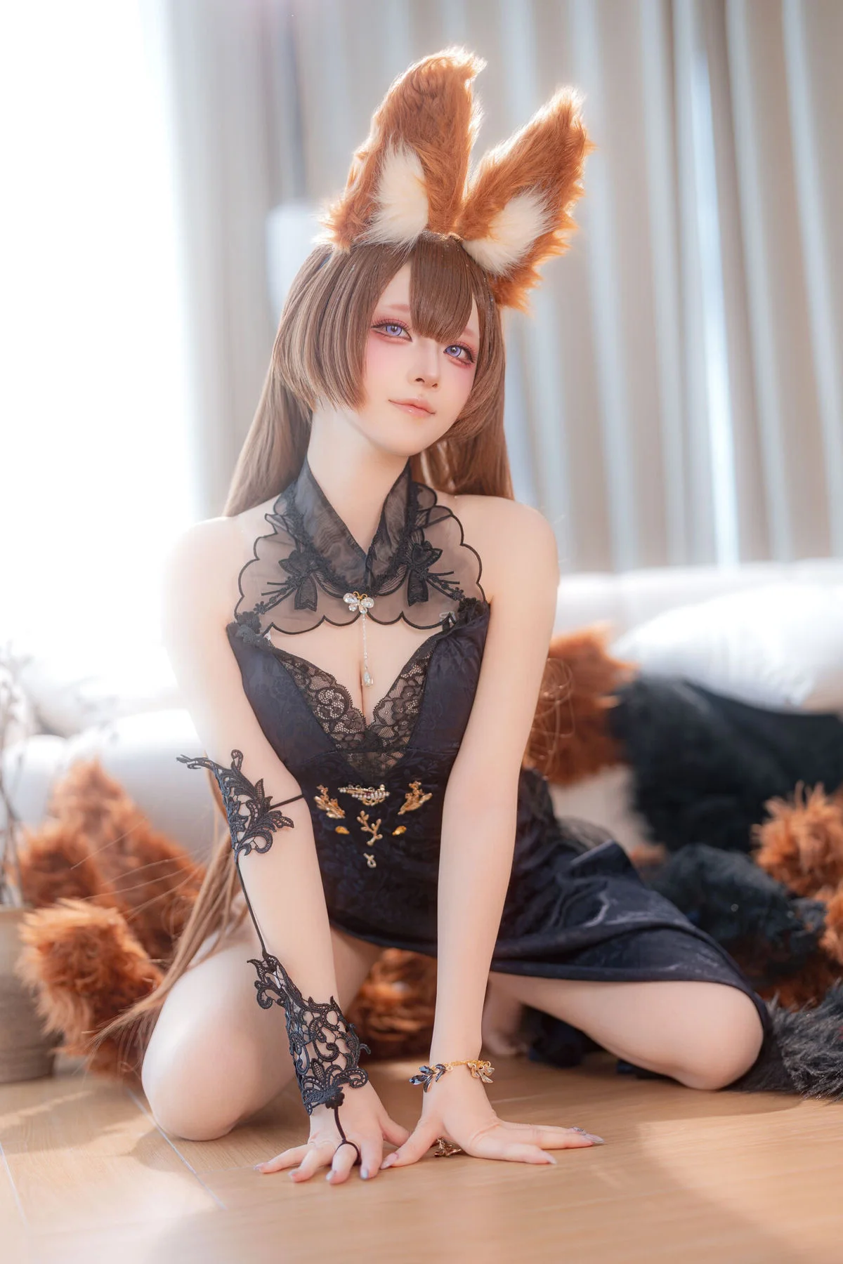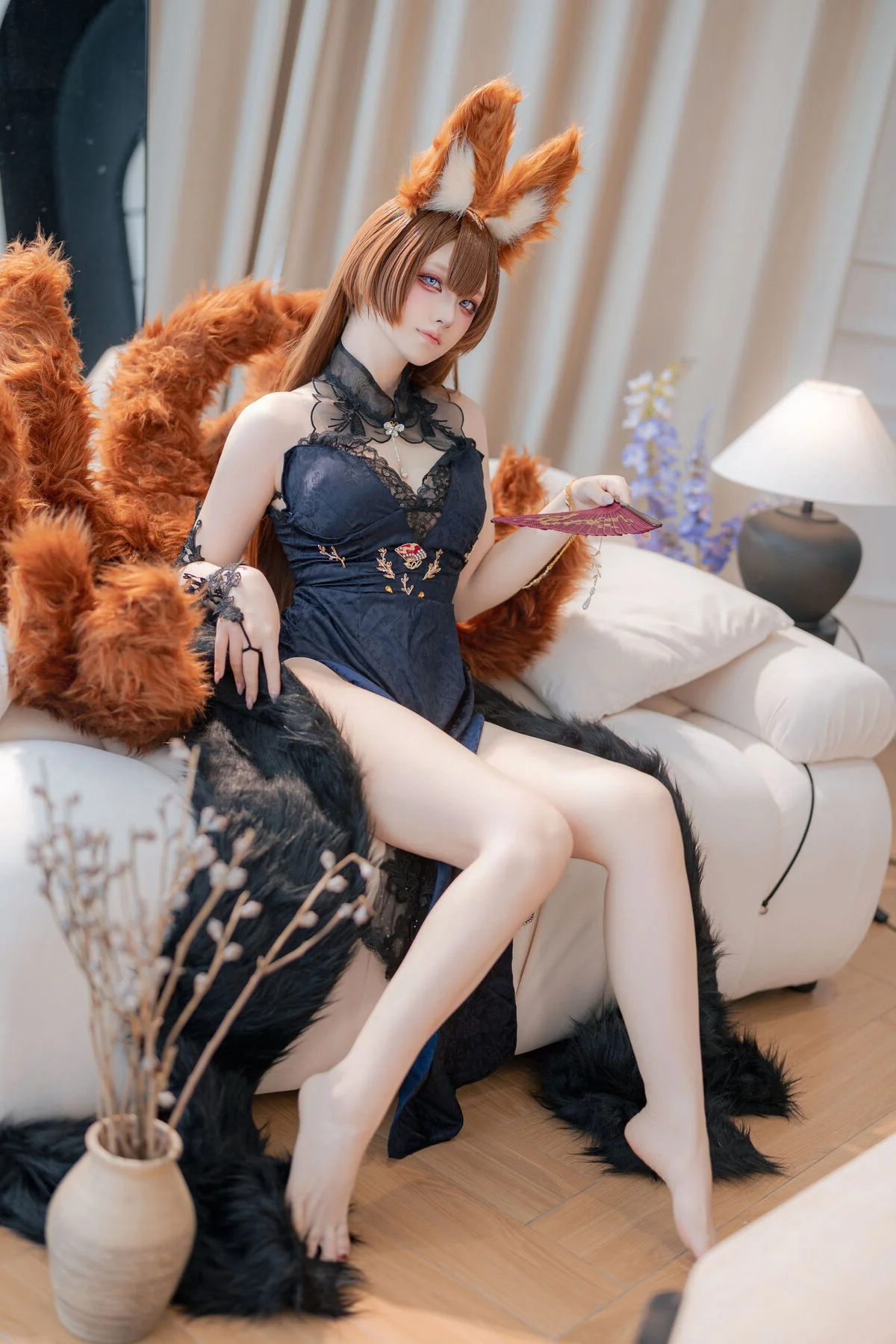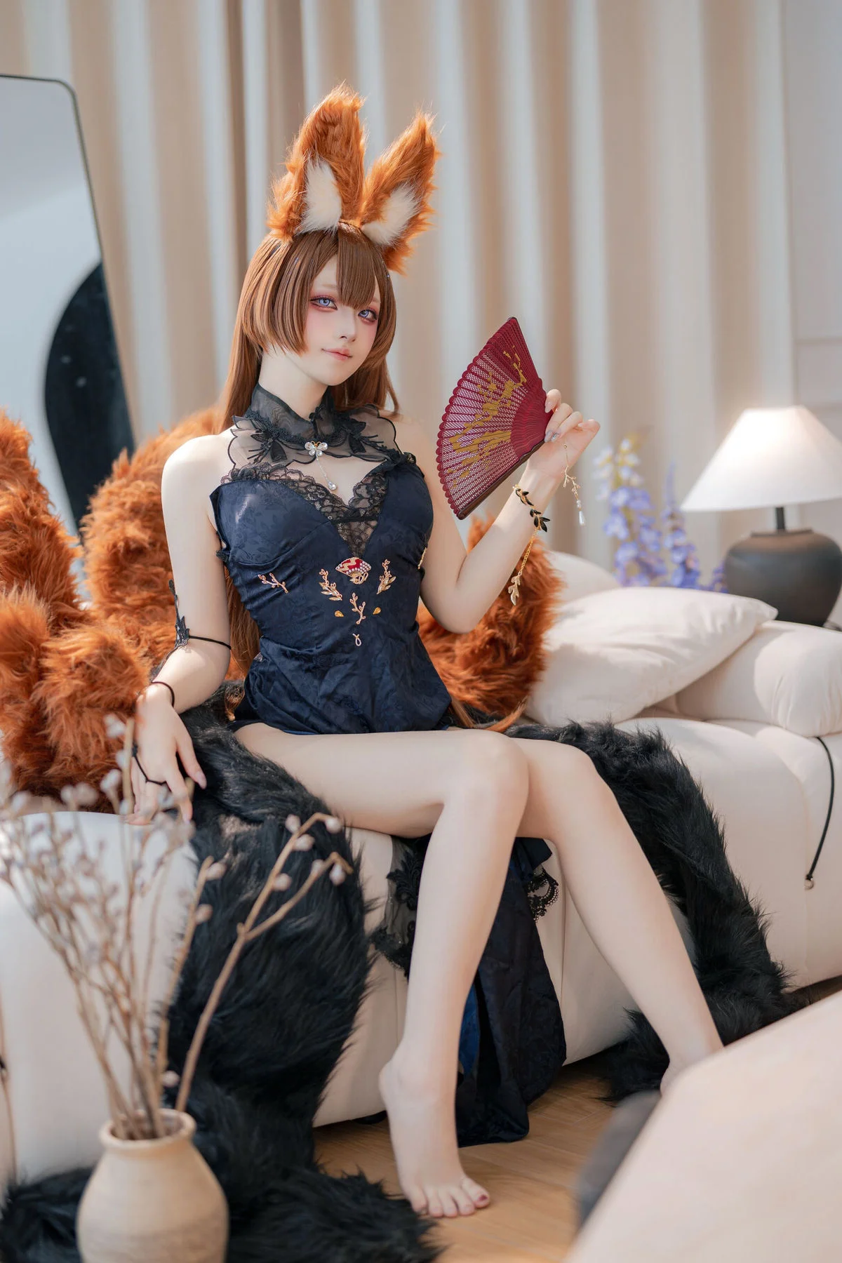 In the vibrant universe of Azur Lane, Amagi stands as a beacon of wisdom, tranquility, and timeless elegance. This exclusive cosplay collection by the talented artist Yu Yu (屿鱼) transcends traditional costume play, evolving into a sophisticated visual narrative that captures the heart of Amagi's 'Evening Dress' persona. Known for her strategic brilliance and fox-like charm, Amagi is reimagined here with a level of detail that resonates with high-fashion photography and artistic storytelling.Yu Yu meticulously brings this character to life, focusing on the intricate textures of the gown and the subtle emotional depth of the character. The lighting is masterfully orchestrated to highlight the shimmering fabrics and the soft, ethereal glow of the setting, creating an atmosphere that feels both intimate and grand. Every pose is a deliberate expression of grace, mirroring the poise of a noblewoman attending a high-society gala. The fusion of traditional Japanese fox-spirit elements with modern Western evening wear creates a stunning contrast that is both visually arresting and culturally rich.