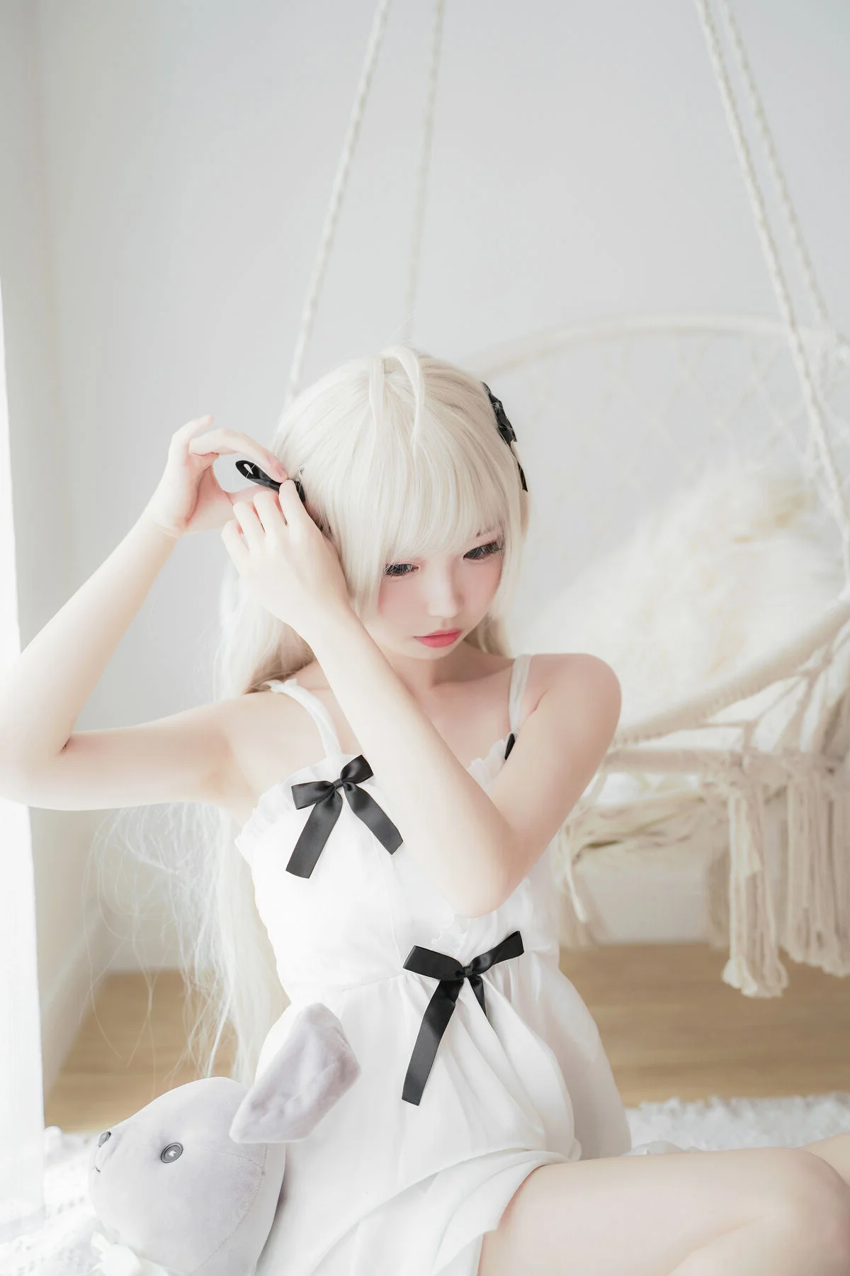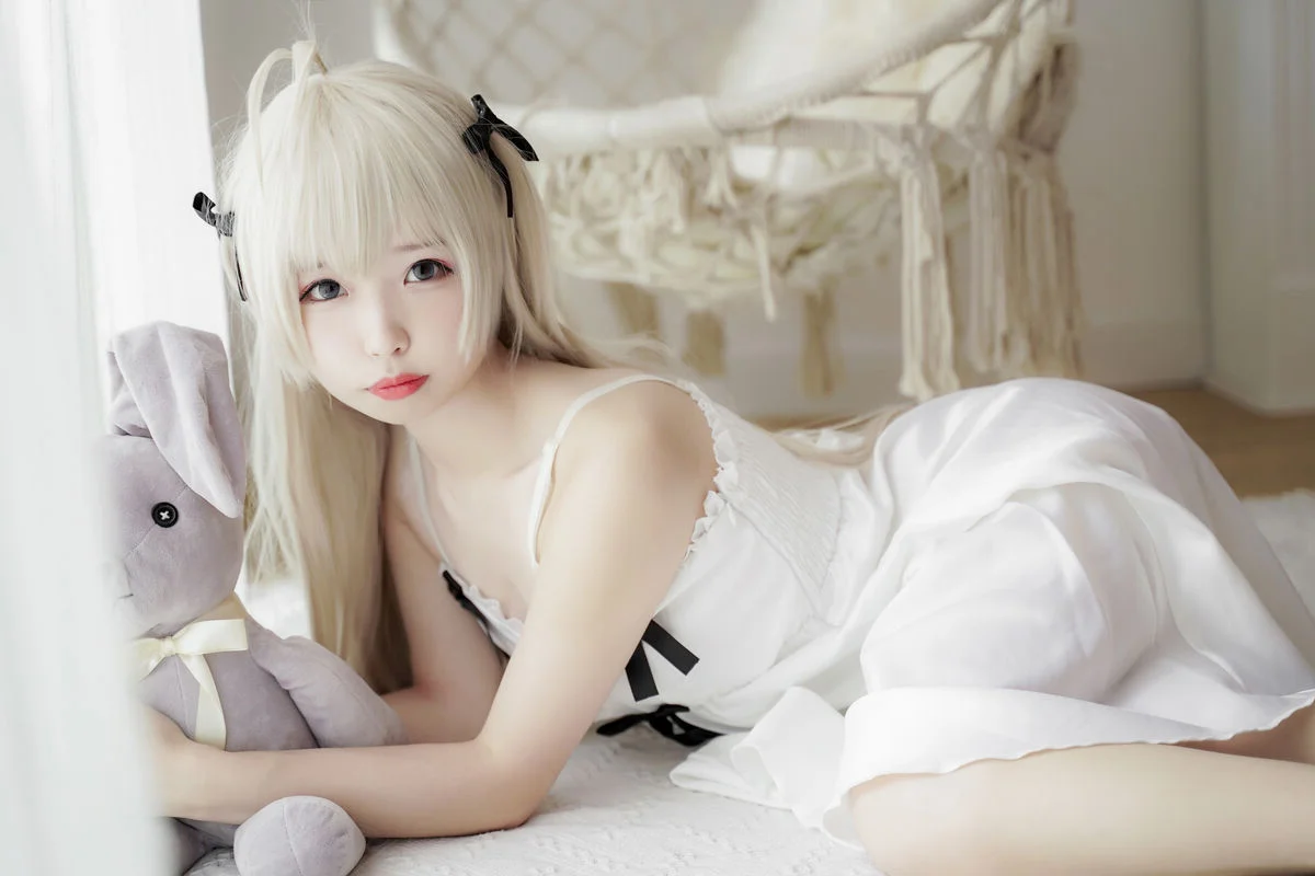 Experience the ethereal beauty of this stunning Sora Kasugano cosplay, captured in a breathtaking series of high-quality photographs. Featuring the talented model Shi Wan Zhen Zhi Fu Te, this collection brings the iconic character from the beloved anime Yosuga no Sora to life with remarkable precision and grace. Dressed in her signature flowing white dress, the aesthetic captures the delicate and fragile essence that fans of the series adore.Every image in this 24-piece set highlights the intricate details of the costume, from the soft lace textures to the perfectly styled long white twintails adorned with black ribbons. The lighting creates a dreamlike, airy atmosphere, emphasizing a clean and minimalist aesthetic that is perfect for fans of Japanese pop culture and anime-inspired fashion. Whether you are a dedicated cosplayer looking for inspiration or a fan of professional character photography, this gallery offers a masterclass in visual storytelling.