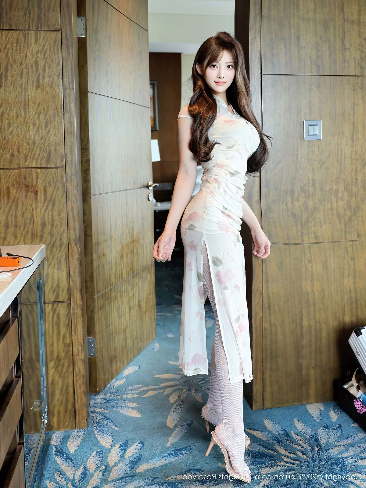 In the XiuRen No10364 collection, Li Shuang Er radiates with an elegant and captivating beauty. She dons a delicate, form-fitting floral dress that gracefully accentuates her slender figure and soft curves. Every gesture and gaze from Li Shuang Er exudes charm and sophistication, blending seamlessly with the subtle floral patterns on her attire to create a harmonious and vibrant aesthetic. This photoshoot not only introduces Li Shuang Er as a promising new face but also portrays a modern, confident, and alluring East Asian woman. The exquisite fusion of classic and contemporary elements in her style is sure to leave a profound impression on viewers.