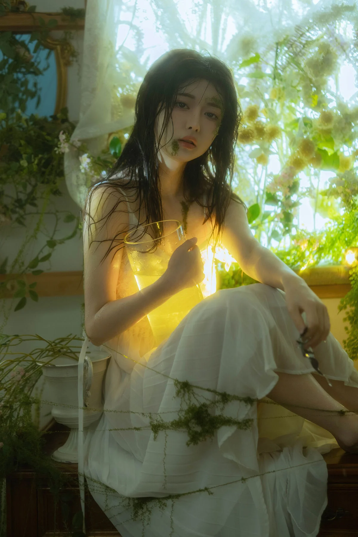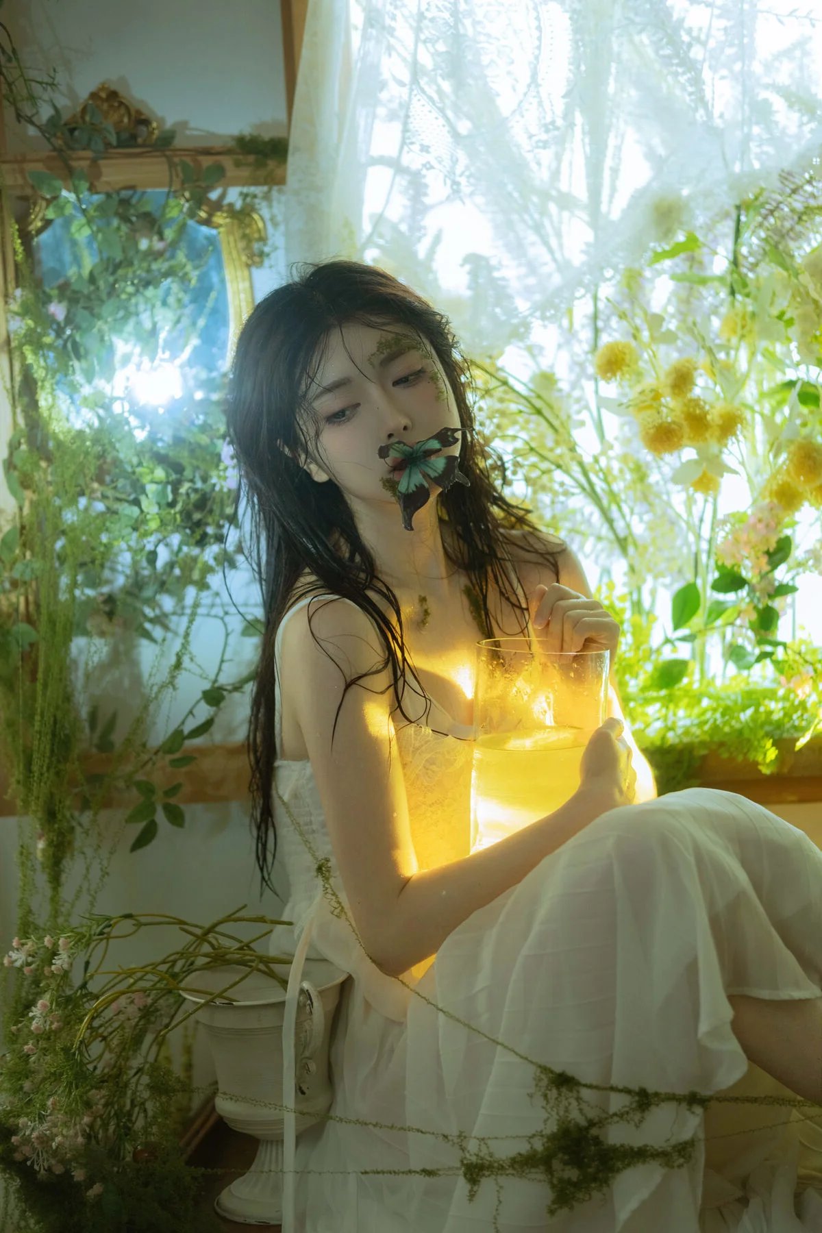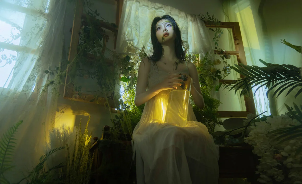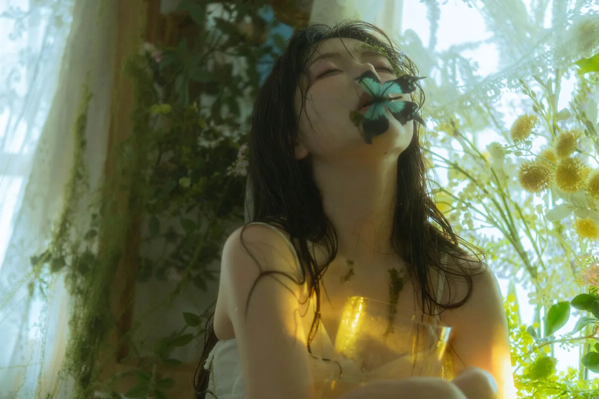 The image from the YiTuYu Art Language Vol8825 collection reveals a poetic moment of model Xing Zhi Ka Tao. With long dark hair and a gentle gaze she is immersed in a lush mystical green space. Soft yellow light envelops her creating a hazy romantic beauty that highlights her delicate and graceful features. The image evokes a sense of tranquility and purity like a muse lost in a fairy tale garden. This is not just a photograph but a work of art where emotion and natural beauty subtly blend drawing viewers into a world full of dreams.#XingZhi #KaTao #YiTuYu #ArtLanguage #DreamyBeauty #AsianModel