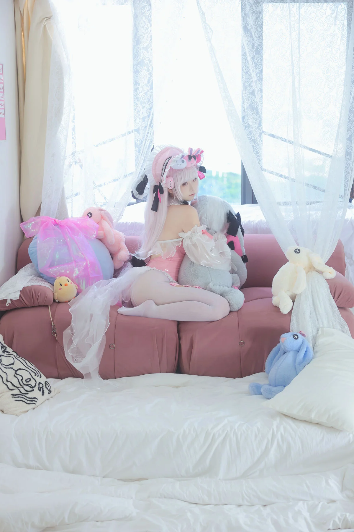 For fashion enthusiasts, this set showcases how loungewear can be both comfortable and visually captivating. The minimalist bedroom setting, coupled with carefully curated props, offers endless inspiration for interior design and indoor portraiture. Whether you are a fan of anime culture or simply an admirer of fine art photography, this gallery provides a refreshing take on character interpretation, blending Japanese pop culture with a sophisticated Western visual palette. Experience the harmony of pastel tones and gentle emotions in this meticulously crafted visual journey.