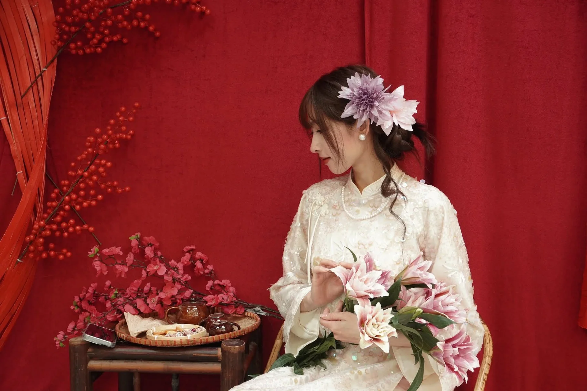 Experience the breathtaking elegance of Vietnamese culture through this stunning portrait of a woman wearing the traditional Ao Dai. The Ao Dai is more than just a garment; it is a symbol of grace, pride, and the rich heritage of Vietnam. This specific look captures the essence of modern femininity blended with centuries-old tradition, making it a perfect inspiration for travel enthusiasts and fashion lovers alike. Whether you are planning a trip to Hanoi or Ho Chi Minh City, or simply exploring the world of ethnic fashion, the intricate details of this silk tunic and flowing trousers showcase the craftsmanship behind Vietnamese attire. The soft, breathable fabric and the flattering silhouette are designed to celebrate natural beauty.This image, identified by reference code 45b7faa4-4b99-4b21-8abe-1b17164aaa89, highlights the serene atmosphere of a classic photoshoot, ideal for those seeking aesthetic wallpaper or cultural insights. The Ao Dai has evolved over time, yet it remains a staple for special occasions, weddings, and daily wear in many regions. Incorporating this style into your wardrobe or photography portfolio adds a touch of global sophistication. For travelers, seeing the Ao Dai in person is a highlight of any Southeast Asian journey. Let this visual story transport you to the peaceful landscapes of Vietnam, where tradition meets contemporary style in the most beautiful way. This high-quality capture is perfect for Pinterest boards focused on Asian fashion, travel photography, and cultural diversity.