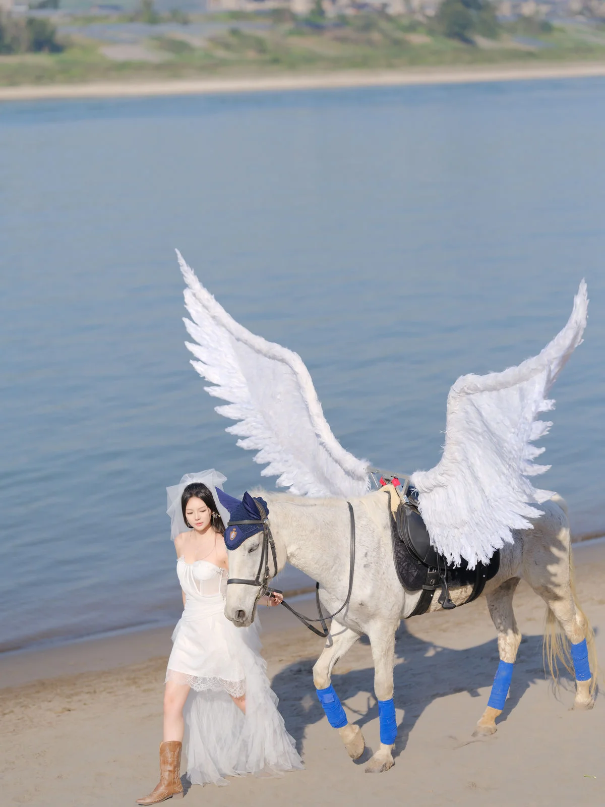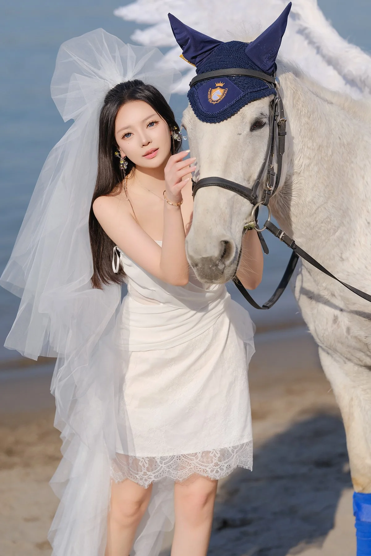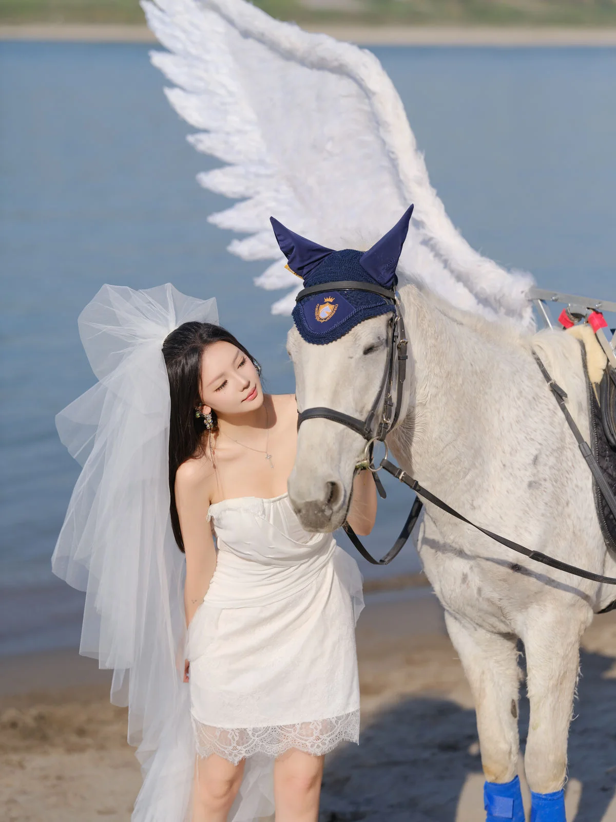 Step into a world where mythology meets modern art in this breathtaking scene from the YiTuYu艺图语 Art Language Vol.8882 z collection. The image captures a moment of pure transcendence as a muse, dressed in a flowing snow-white gauze skirt, rides a majestic Pegasus along the serene shoreline. The choice of fabric adds a layer of ethereal lightness, fluttering softly against the backdrop of the calm waters and golden sand. There is an undeniable sense of grace in her posture, reflecting a harmonious connection between human and nature. This visual narrative goes beyond mere fashion photography, it is an exploration of fantasy and elegance. The soft color palette and the grand scale of the wings create a cinematic atmosphere that feels both nostalgic and avant-garde. It invites the viewer to escape the mundane and embrace a dreamscape filled with wonder and poetic beauty, making it a perfect piece of inspiration for those who appreciate high-concept visual storytelling and sophisticated aesthetic vibes that resonate with the soul.#EtherealAesthetic #MythicalVibes #FashionPhotography #PegasusDream #VisualArt