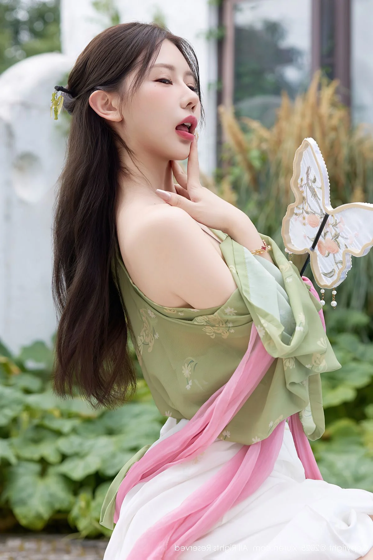 Step into a world where nature and elegance intertwine in the latest release from YiTuYu's 'Art Language' series. Vol. 9065 features the stunning muse Xian Luo (仙落) in a breathtaking visual narrative titled 'Wisteria Dream.' This collection is a masterclass in fine art photography, blending the delicate beauty of blooming wisteria vines with the sophisticated charm of modern fashion.Xian Luo embodies a timeless aesthetic, moving gracefully through curtains of purple blossoms that hang like cloud-kissed trees. The photography captures more than just a face; it captures a mood—serene, poetic, and profoundly beautiful. Each of the 14 frames is carefully composed to highlight the harmony between the model's soft features and the organic textures of the botanical setting.