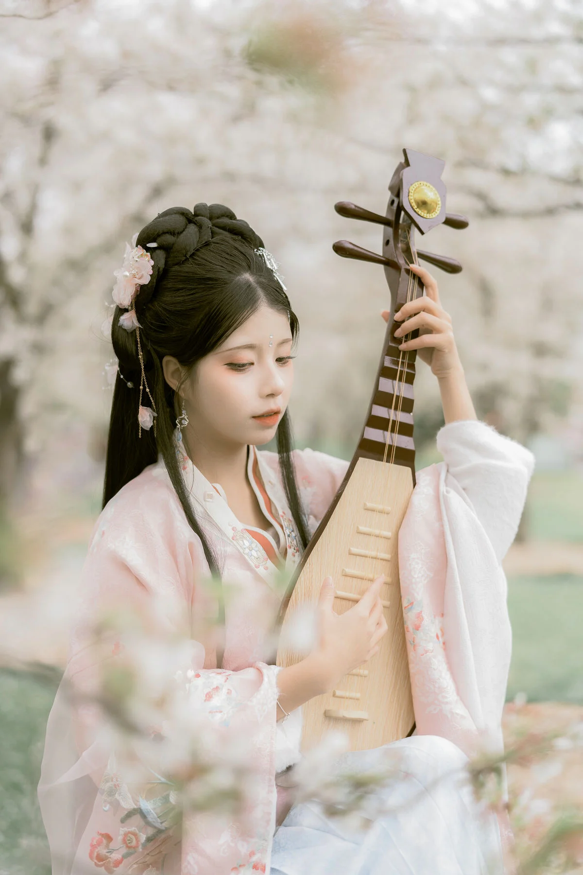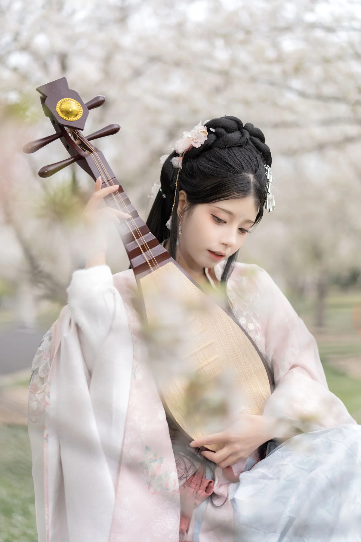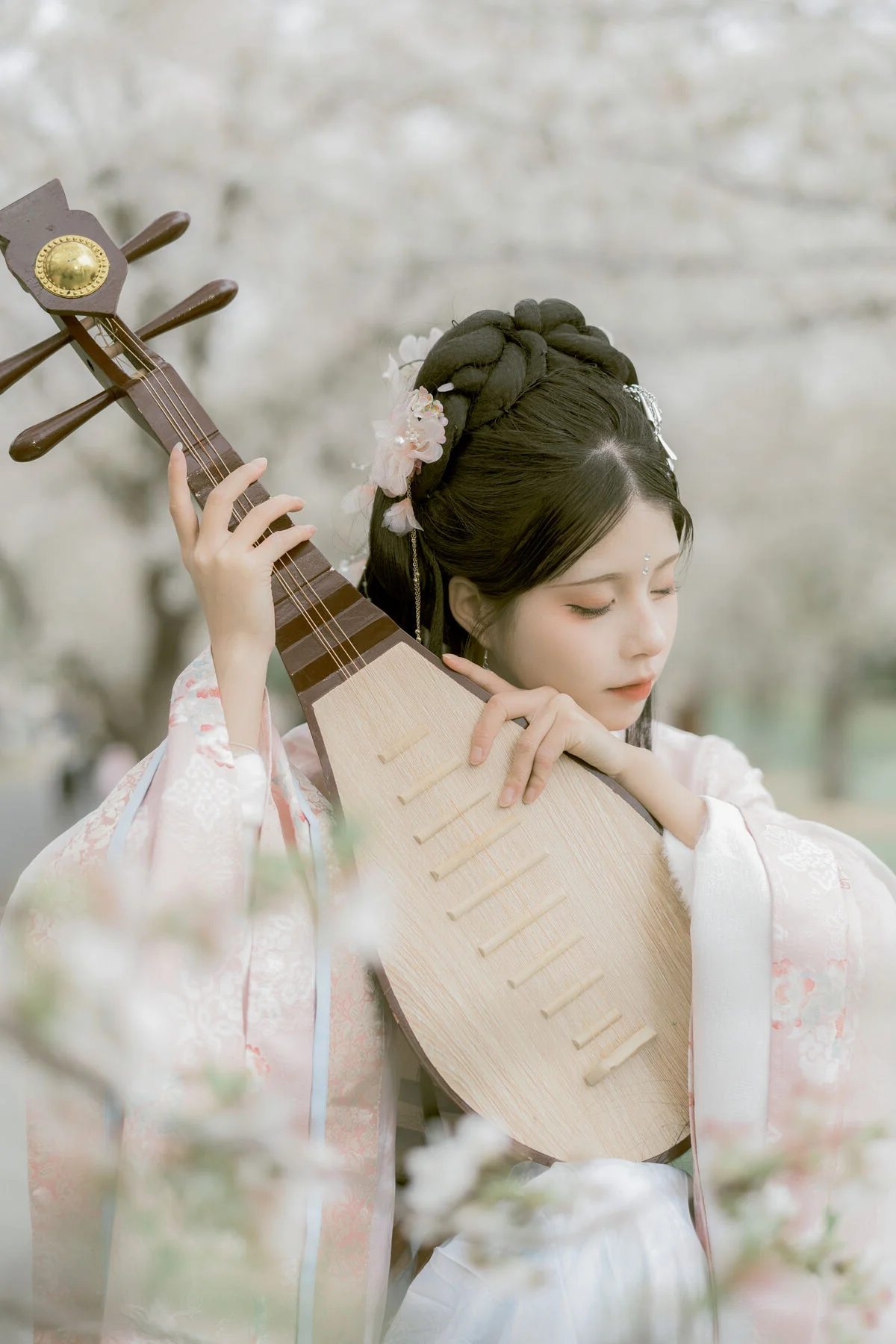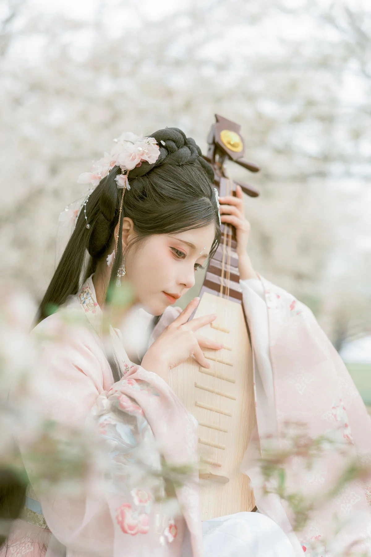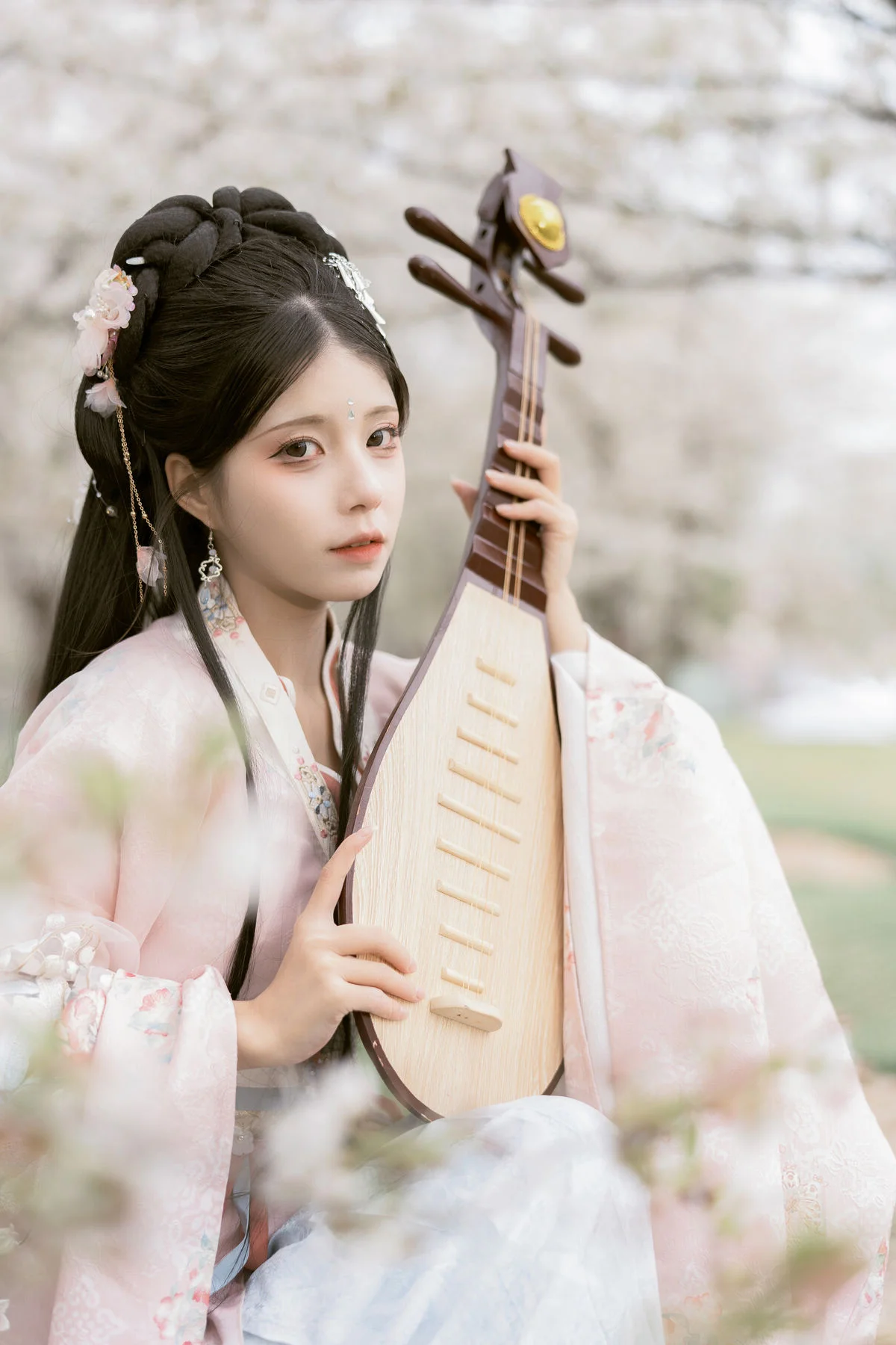 Stepping into a dreamlike spring morning with Gu Yan Yi in the latest YiTuYu Art Language Vol.8886 collection. Under the soft canopy of blooming cherry blossoms, she embodies the grace of a classical muse holding a traditional lute. The visual language here is one of pure serenity and poetic beauty. Her Hanfu, crafted from delicate fabrics in ethereal shades of pastel pink and white, flows naturally with the gentle breeze, mirroring the falling petals like snow. The artistic direction emphasizes a soft focus and airy mood, highlighting her expressive eyes and elegant posture. This aesthetic choice perfectly captures the essence of Hanfu fashion, where every fold of cloth and every floral accessory tells a story of heritage and refined taste. It is an invitation to slow down and appreciate the fleeting beauty of nature combined with the timeless allure of traditional artistry, creating a nostalgic yet refreshing vibe for the soul.