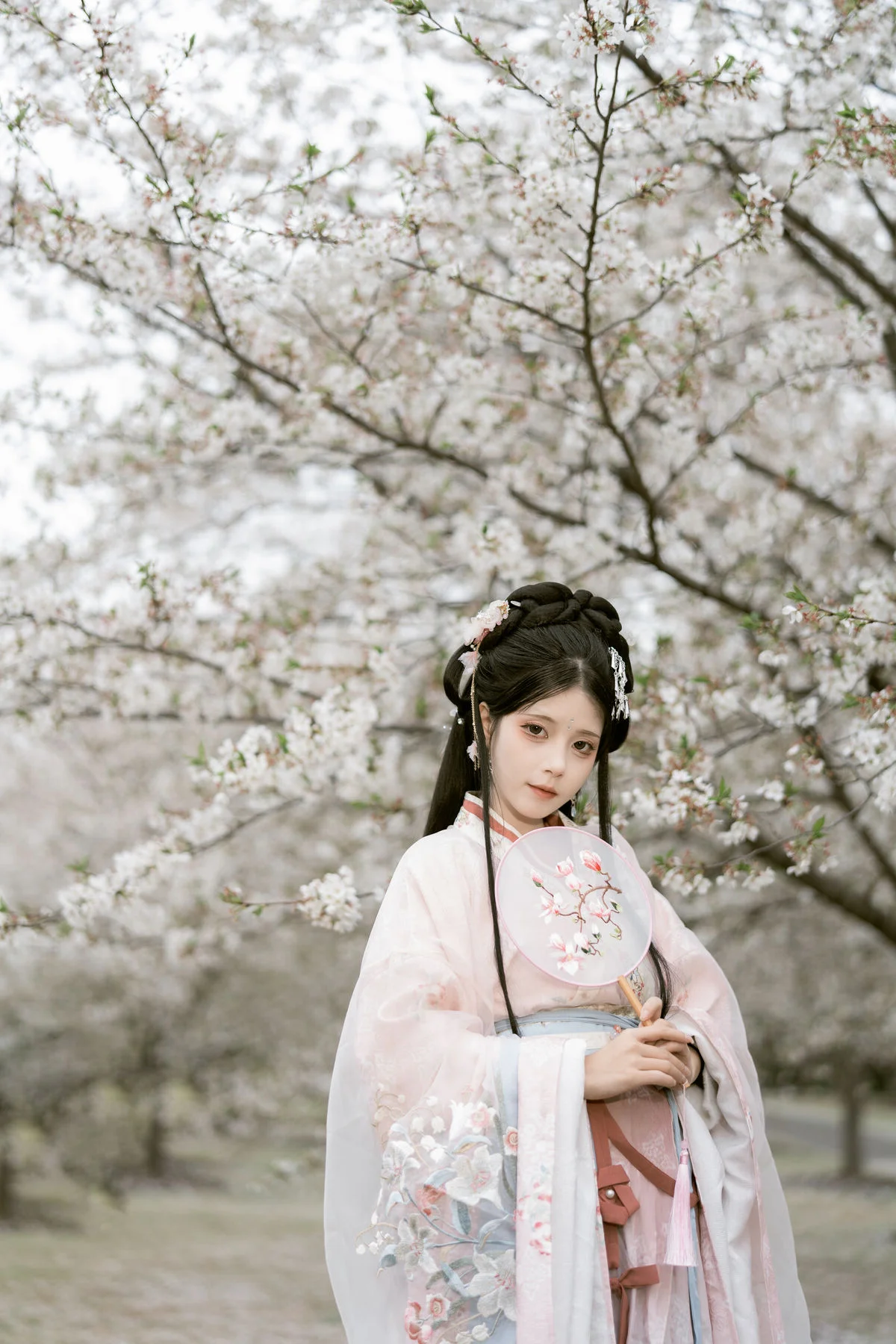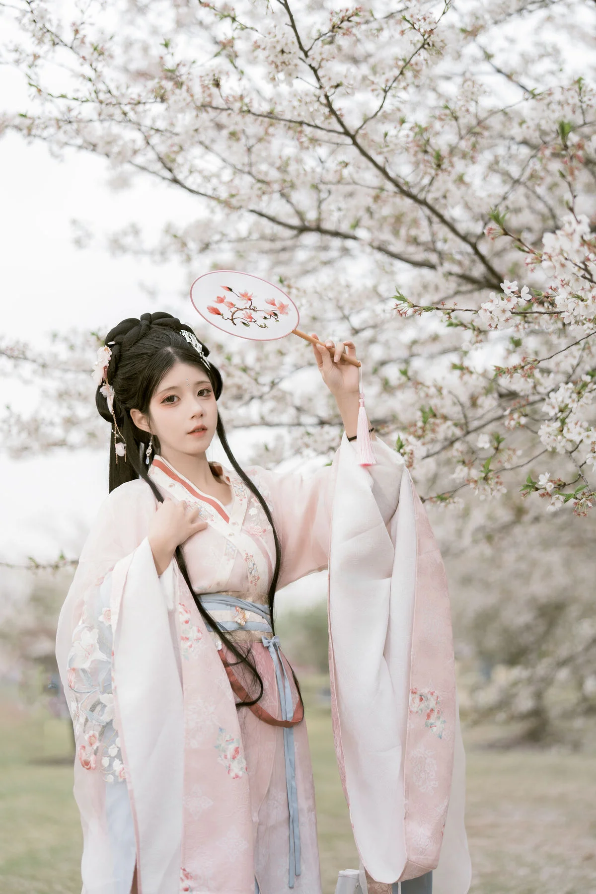 Stepping into a dreamlike spring morning, the muse Gui Yuan Ba Bao Zhou captures the essence of ethereal beauty in the YiTuYu Vol.8891 collection. Dressed in a flowing Hanfu featuring a delicate gradient of peach pink and vibrant sunset orange, she stands gracefully amidst a canopy of blooming blossoms. The lightweight chiffon fabric dances with the gentle breeze, reflecting a sophisticated sense of style that honors traditional aesthetics. Her gentle expression and the classic round fan in hand evoke a sense of nostalgia and poetic romance, as if she has just stepped out of an ancient painting. The soft natural lighting enhances the pastel tones of the scene, creating a visual symphony of color and emotion. This artistic portrayal is a celebration of spring renewal and the timeless elegance of cultural fashion, inviting the viewer to lose themselves in a world of tranquility and floral enchantment.