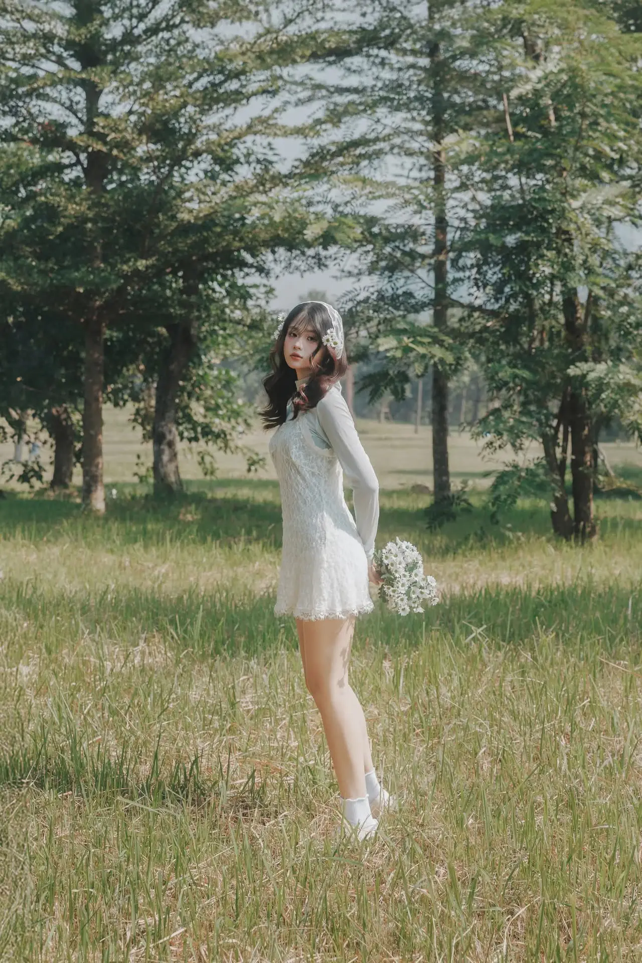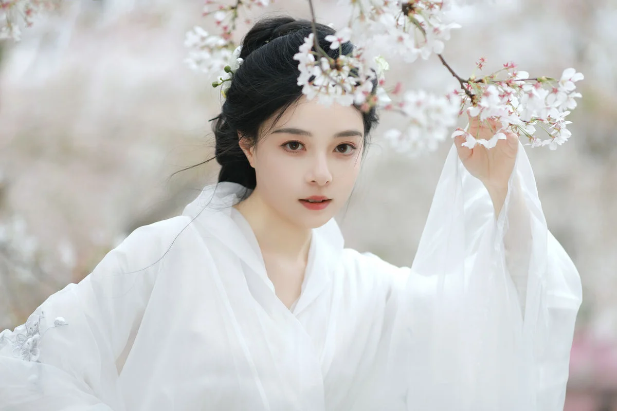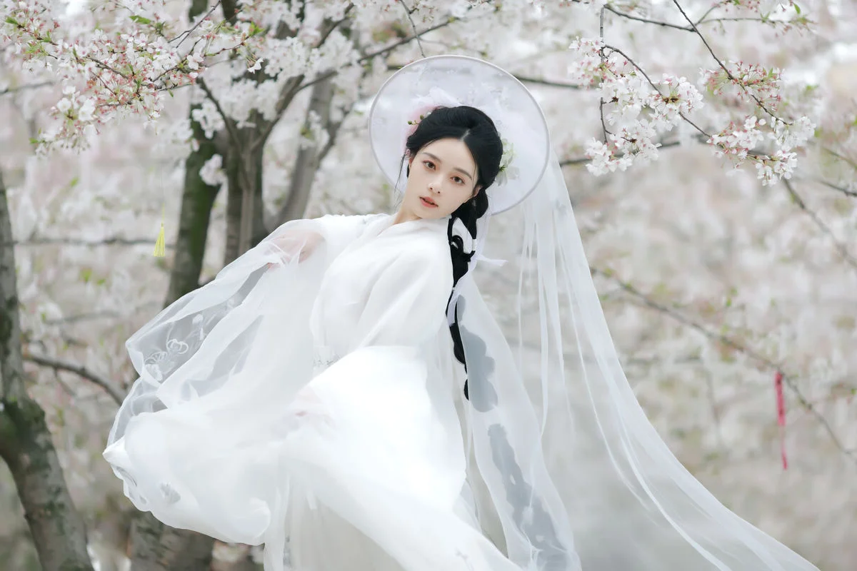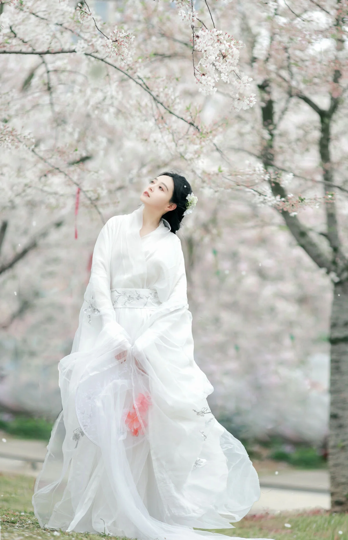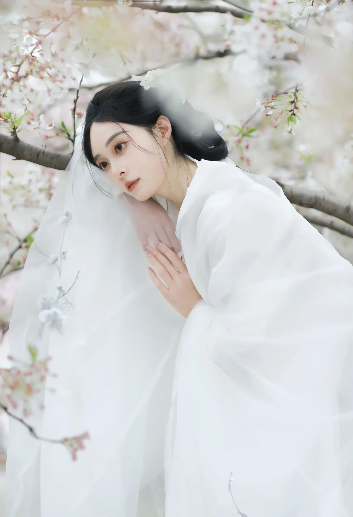 Step into a world where reality fades into a poetic dream. This captivating visual from YiTuYu Art Language Vol.8880 features the graceful Sui Sui Ru Yi, appearing like a celestial being under a canopy of blooming cherry blossoms. Dressed in a flowing white Hanfu made of delicate, airy fabric, she embodies a sense of timeless elegance and purity. The artistry lies in the contrast between the soft, pale petals and her striking dark hair, intricately braided and adorned with blossoms. Every detail, from the way the fabric catches the light to her serene posture, evokes a feeling of tranquility and nostalgia. It is a masterful display of visual storytelling, blending traditional fashion with a modern artistic vision. The overall mood is one of ethereal grace, inviting the viewer to pause and appreciate the fleeting beauty of spring and the delicate balance of nature and style.#EtherealStyle #SpringPhotography #HanfuFashion #SuiSuiRuYi #VisualArt
