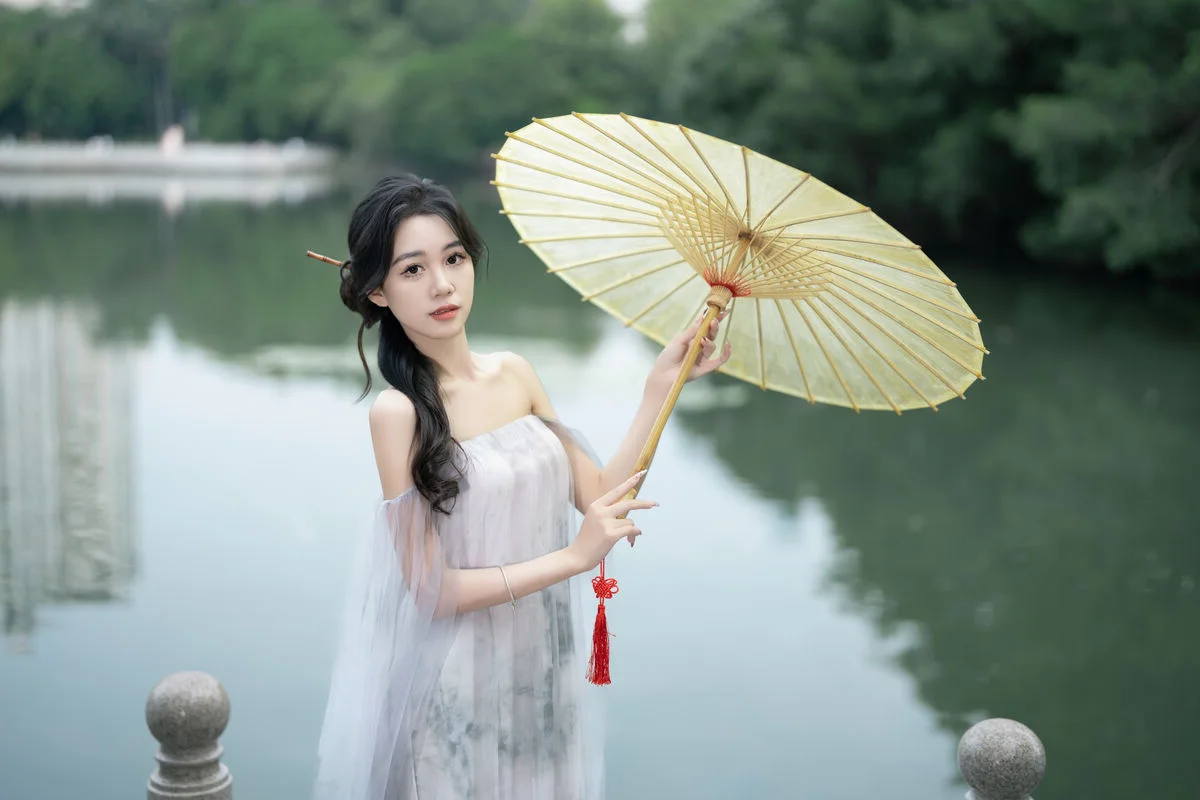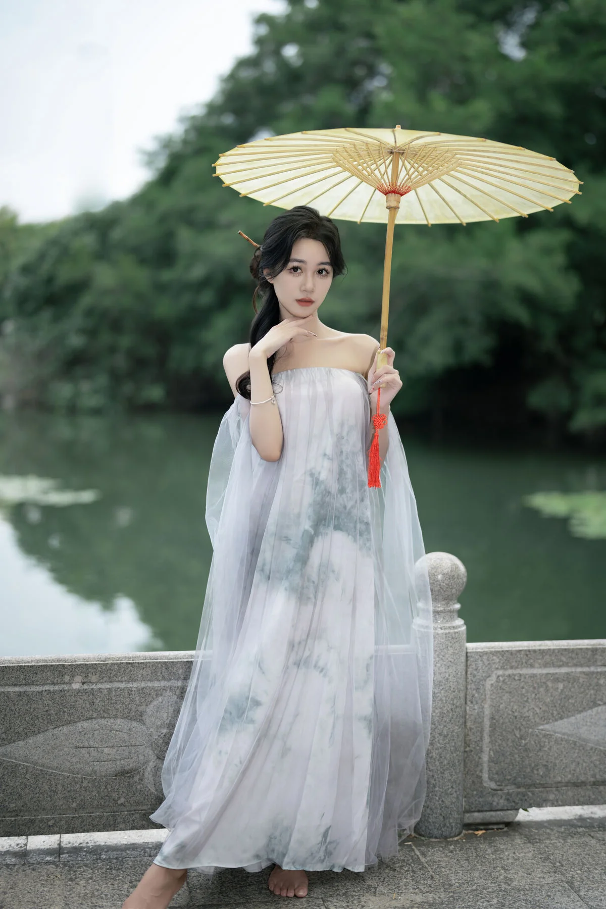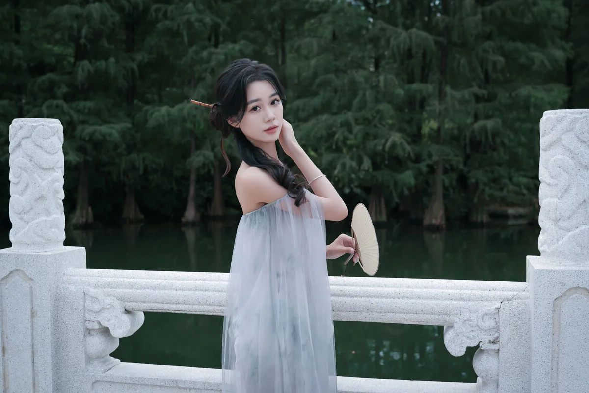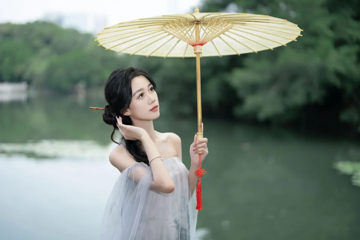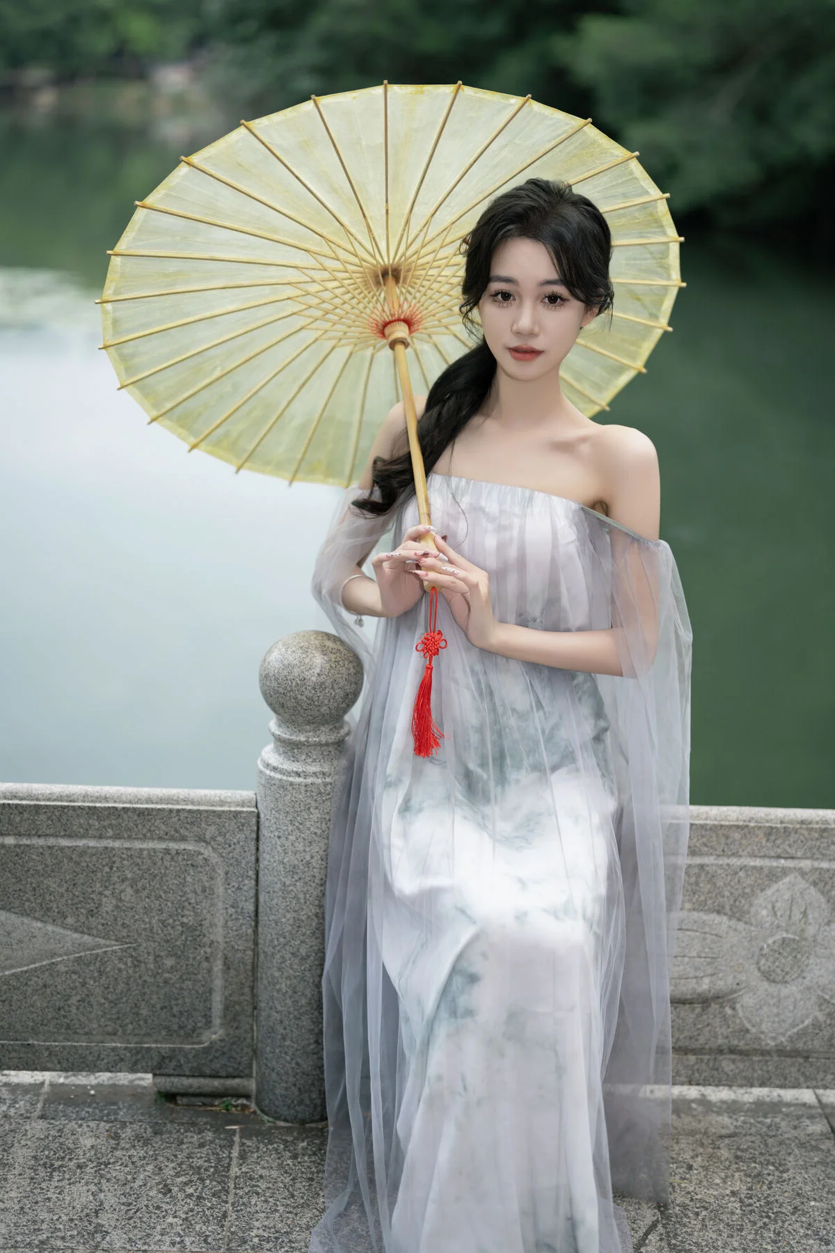 Immersed in a poetic atmosphere by the water, Da Xi Dacy transforms into a timeless muse within the Art Language Vol.8897 collection. Her fashion style is a captivating blend of traditional aesthetics and contemporary grace, featuring delicate, translucent fabrics that dance with the gentle breeze. The choice of a classic paper umbrella adds a layer of nostalgic charm, framing her soft expression and elegant posture against the lush green backdrop. The natural lighting and subtle reflections on the lake create a harmonious mood, evoking a sense of profound peace and artistic inspiration. Every detail in this visual journey reflects a sophisticated aesthetic sense, prioritizing minimalism while maintaining a powerful emotional pull. It is more than just a photoshoot; it is an invitation to slow down and appreciate the quiet beauty of a moment frozen in time, where high fashion meets the soul of nature in a seamless, romantic embrace.#ArtLanguage #DaXiDacy #EtherealStyle #FineArtPhotography #LakeVibes #YiTuYu