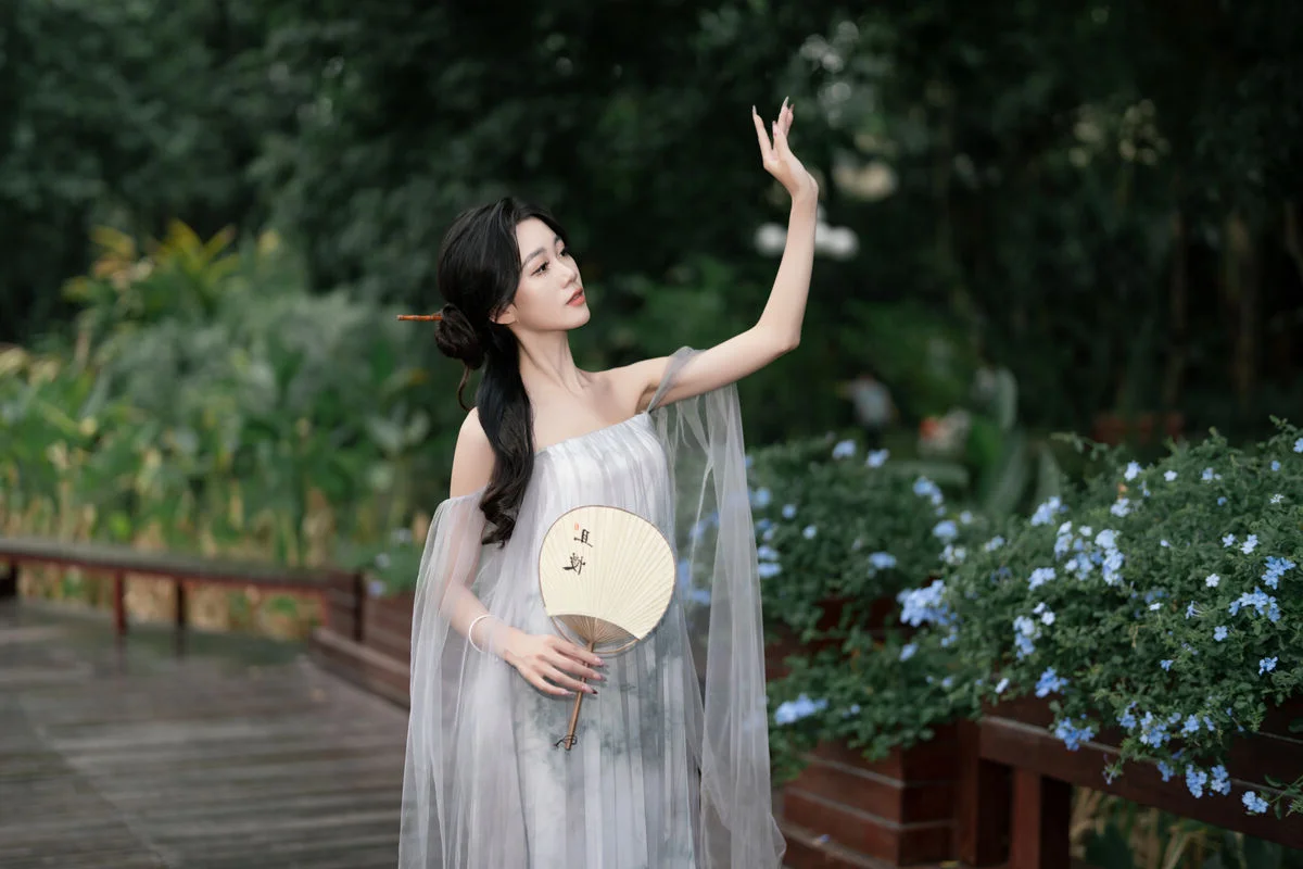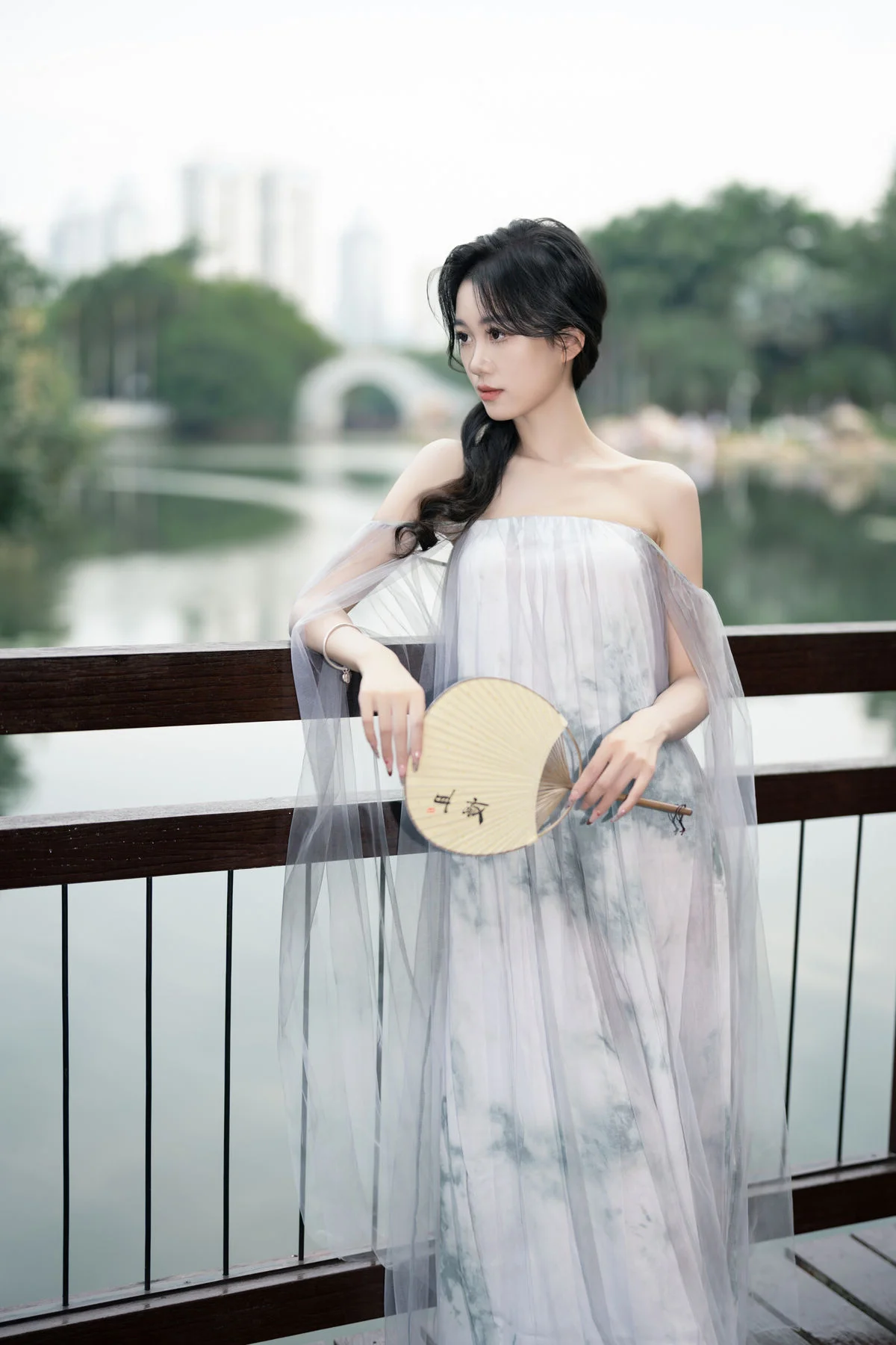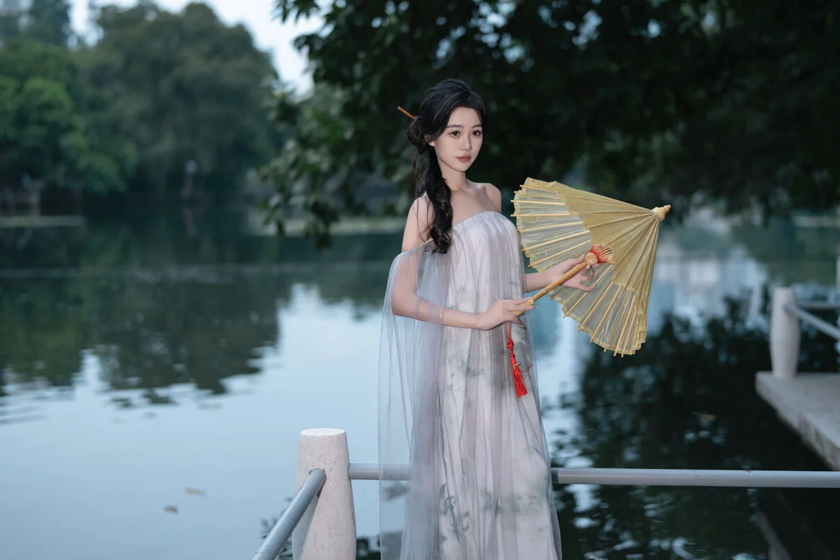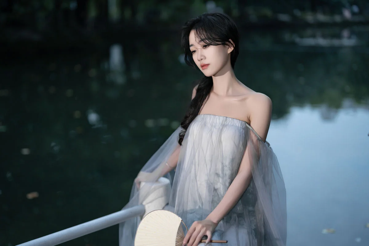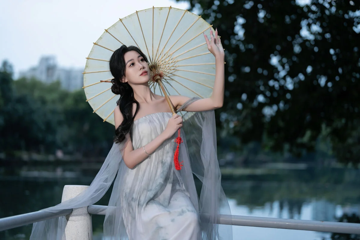 Immersed in a poetic atmosphere by the water, Da Xi Dacy transforms into a timeless muse within the Art Language Vol.8897 collection. Her fashion style is a captivating blend of traditional aesthetics and contemporary grace, featuring delicate, translucent fabrics that dance with the gentle breeze. The choice of a classic paper umbrella adds a layer of nostalgic charm, framing her soft expression and elegant posture against the lush green backdrop. The natural lighting and subtle reflections on the lake create a harmonious mood, evoking a sense of profound peace and artistic inspiration. Every detail in this visual journey reflects a sophisticated aesthetic sense, prioritizing minimalism while maintaining a powerful emotional pull. It is more than just a photoshoot; it is an invitation to slow down and appreciate the quiet beauty of a moment frozen in time, where high fashion meets the soul of nature in a seamless, romantic embrace.#ArtLanguage #DaXiDacy #EtherealStyle #FineArtPhotography #LakeVibes #YiTuYu